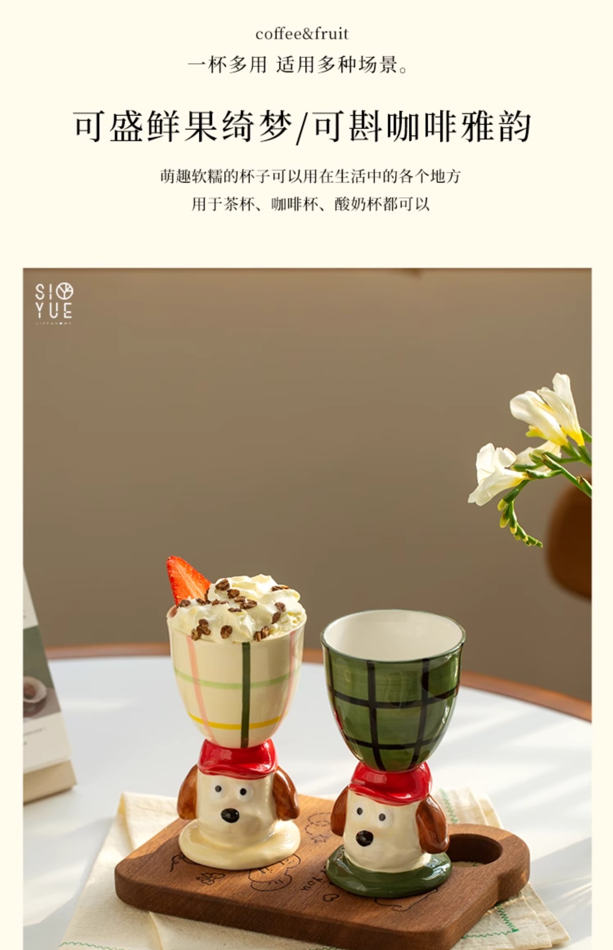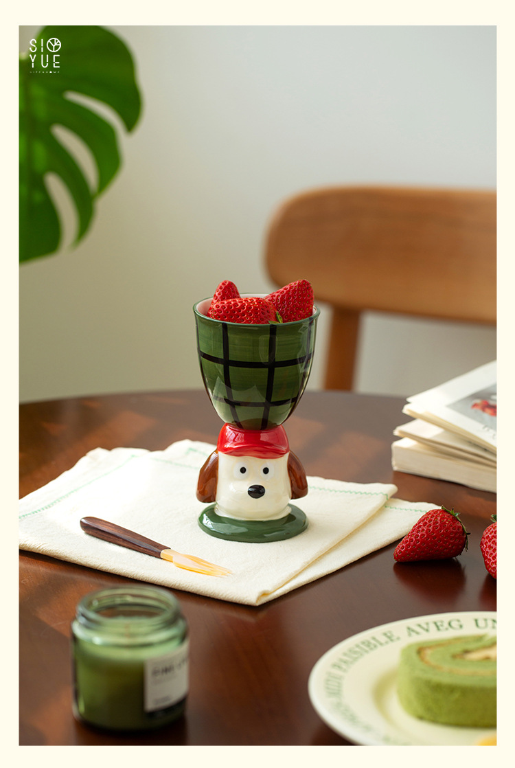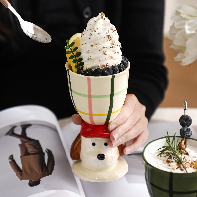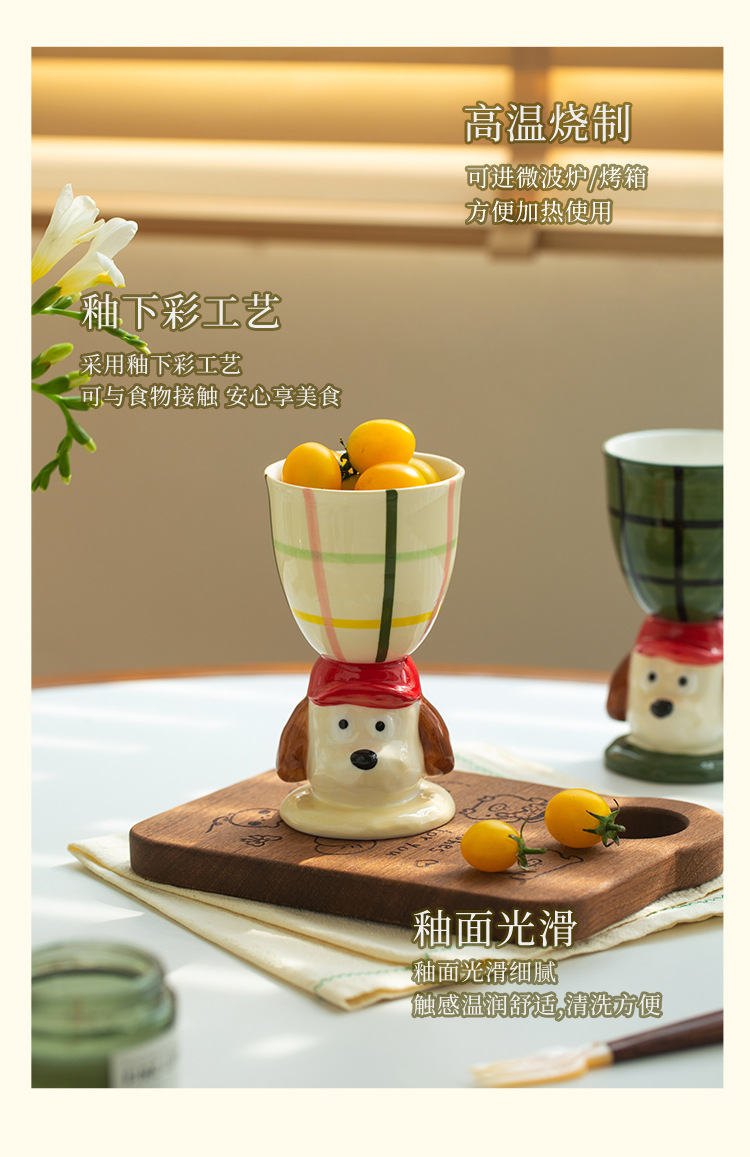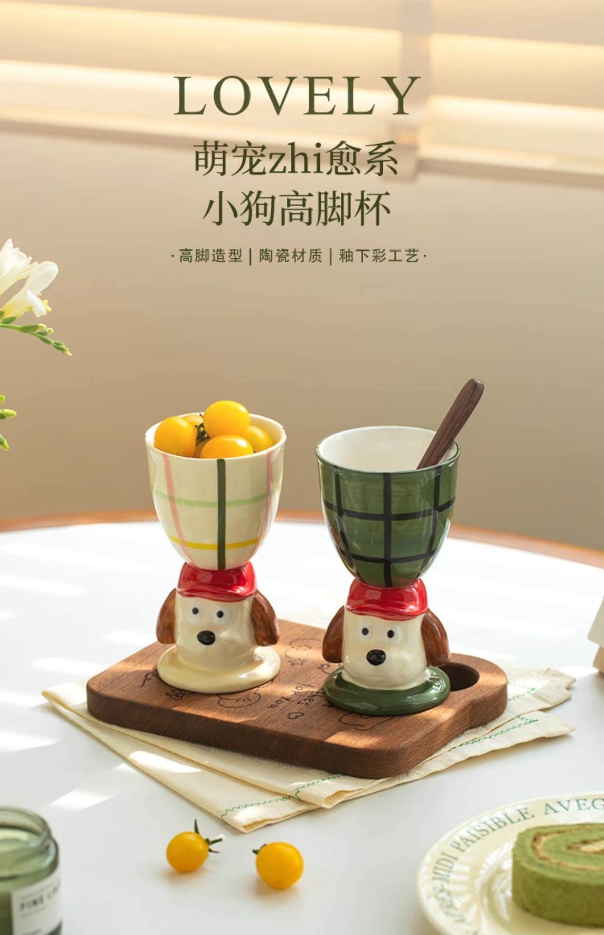 复古陶瓷高脚杯 法式冰淇淋杯ins布丁甜品碗家用高脚蜡烛杯蜡烛台
