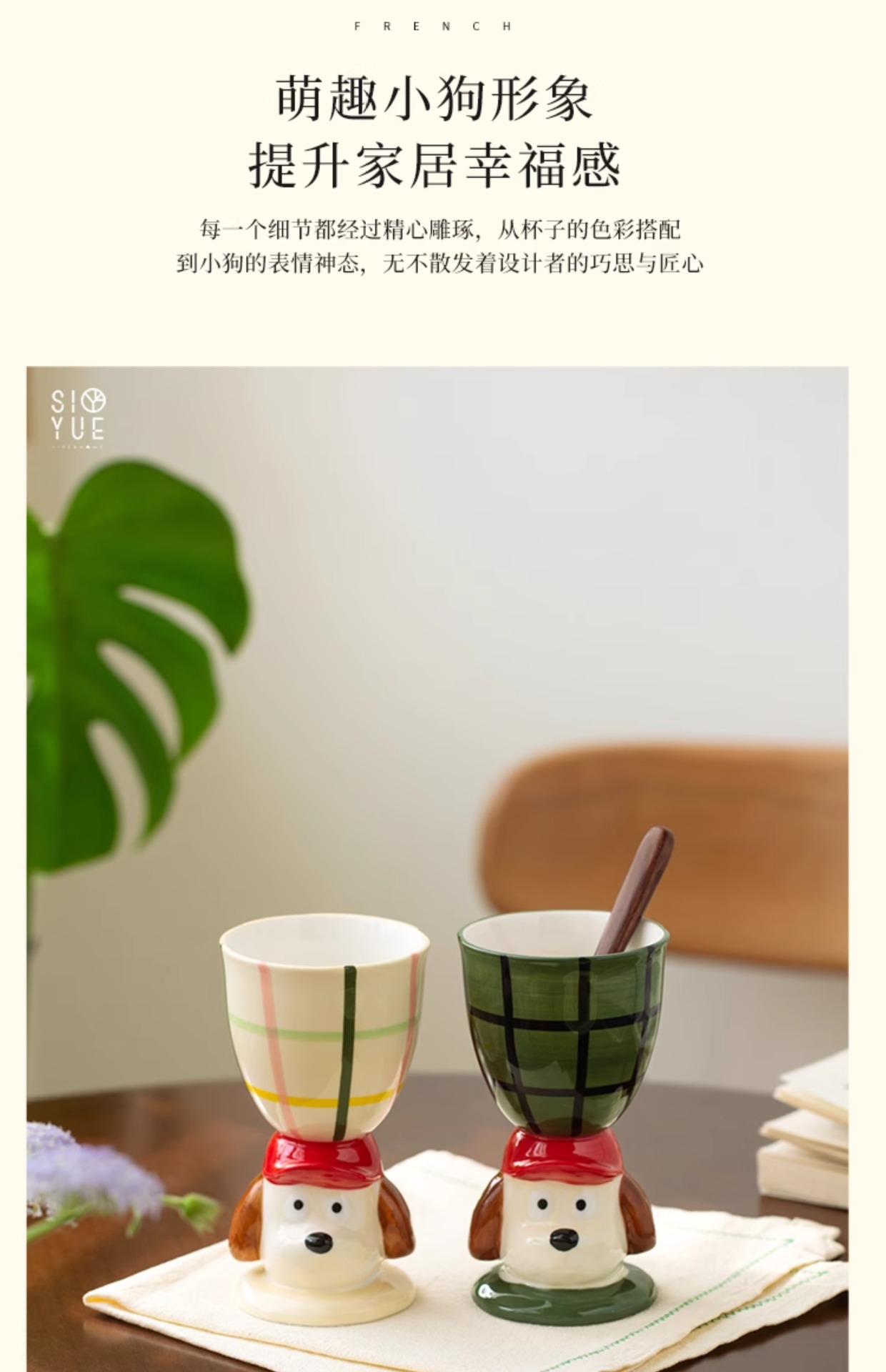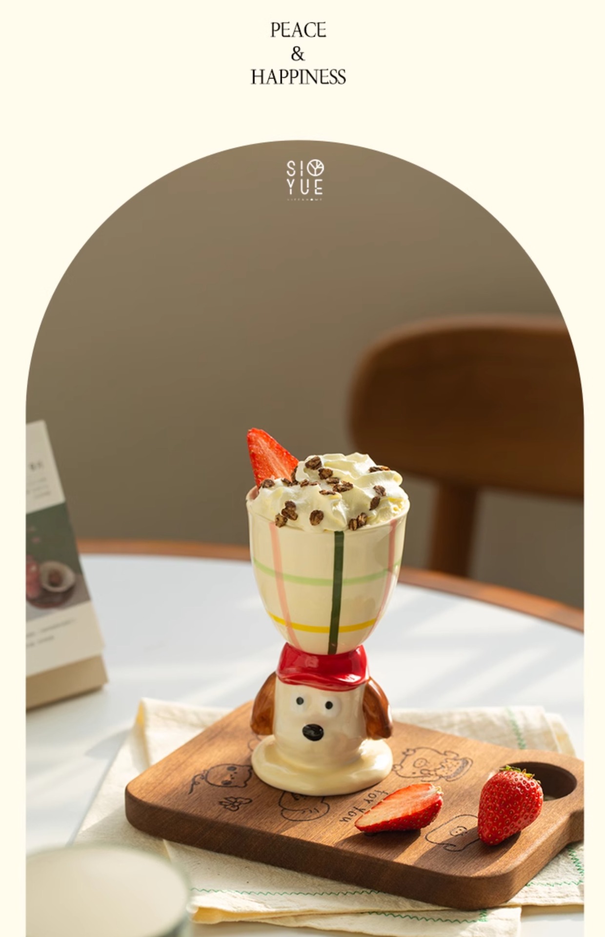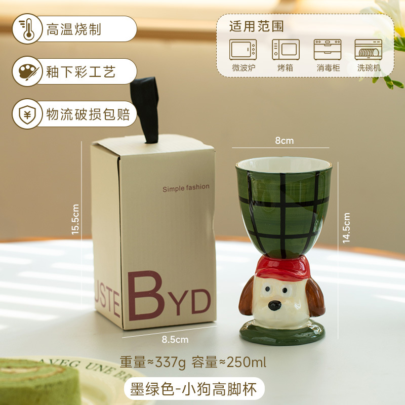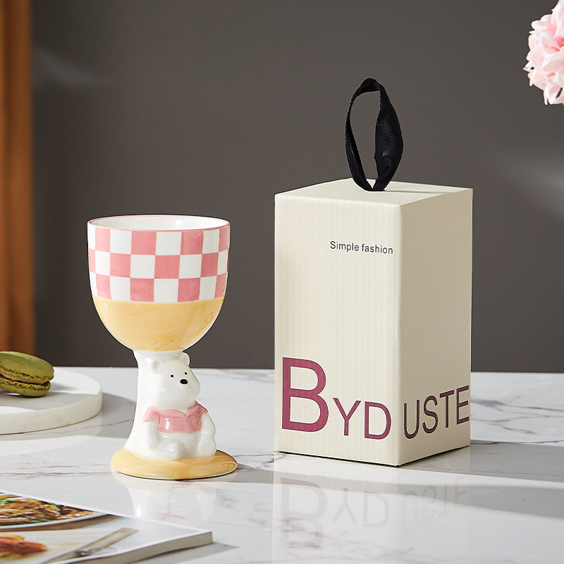 复古陶瓷高脚杯 法式冰淇淋杯ins布丁甜品碗家用高脚蜡烛杯蜡烛台