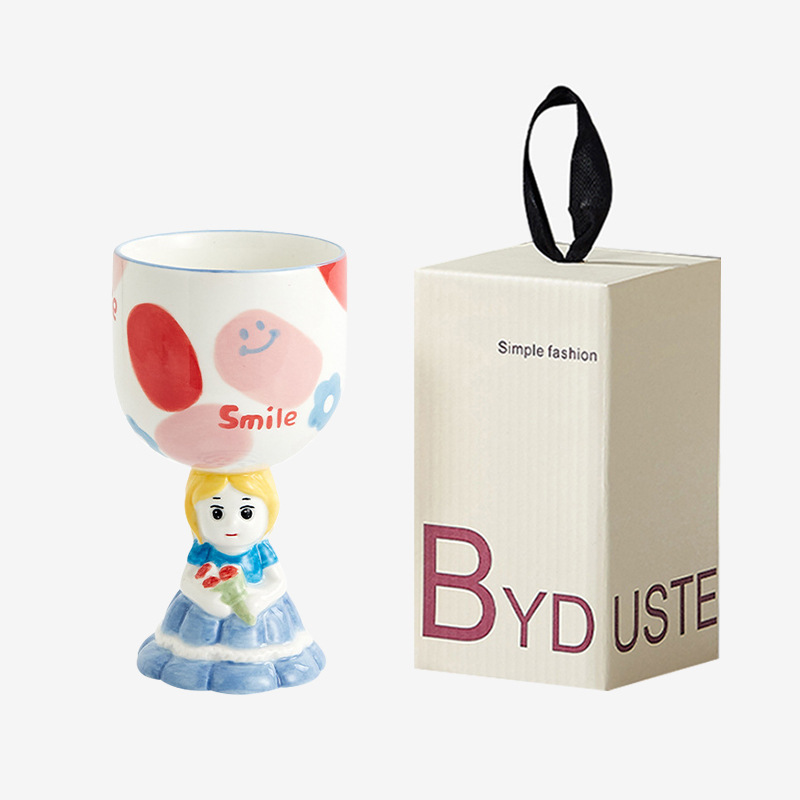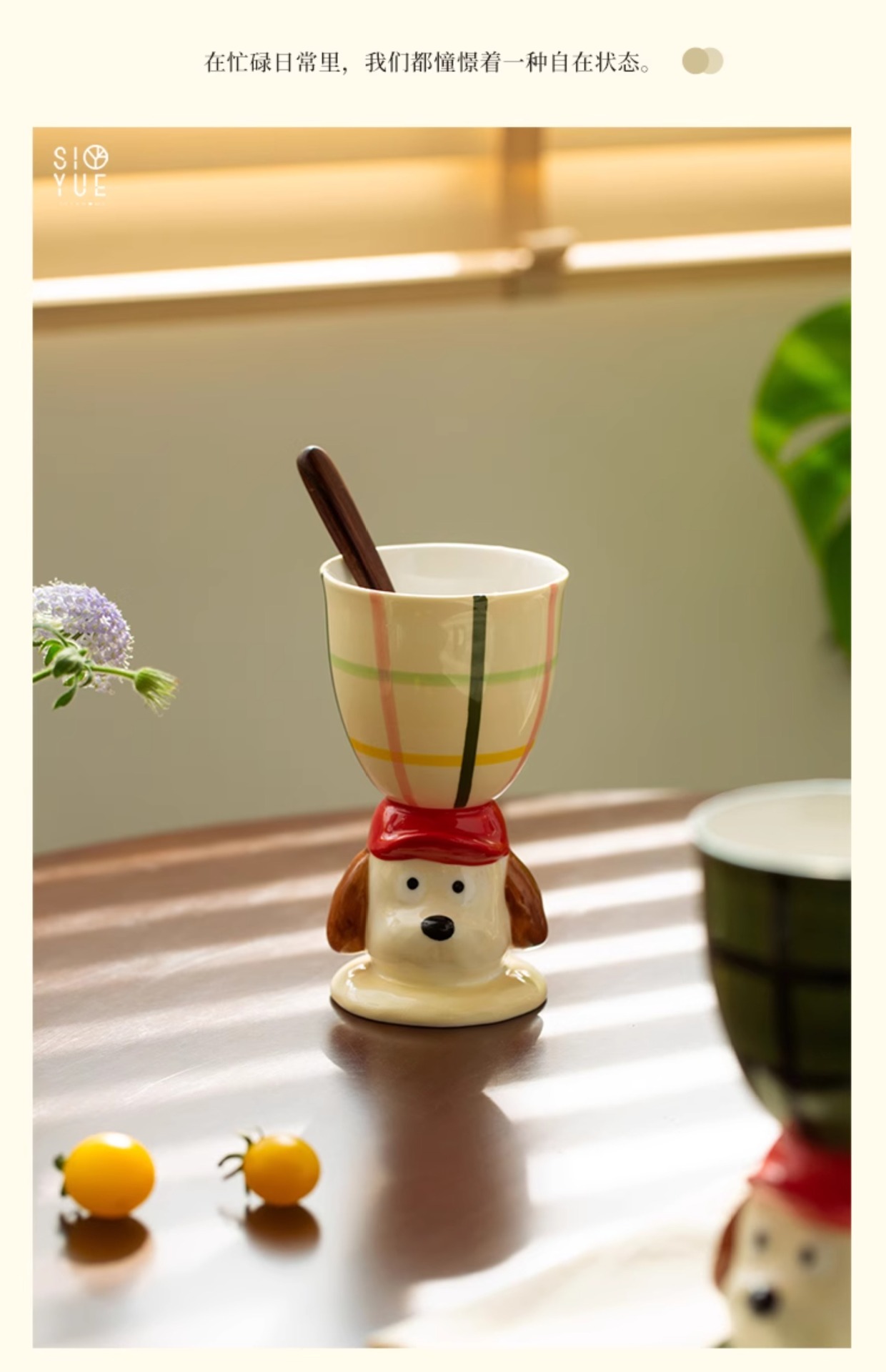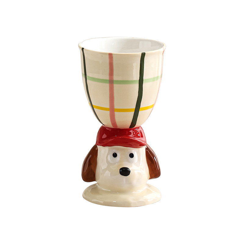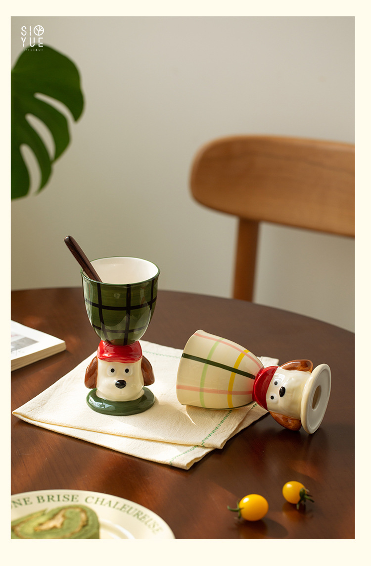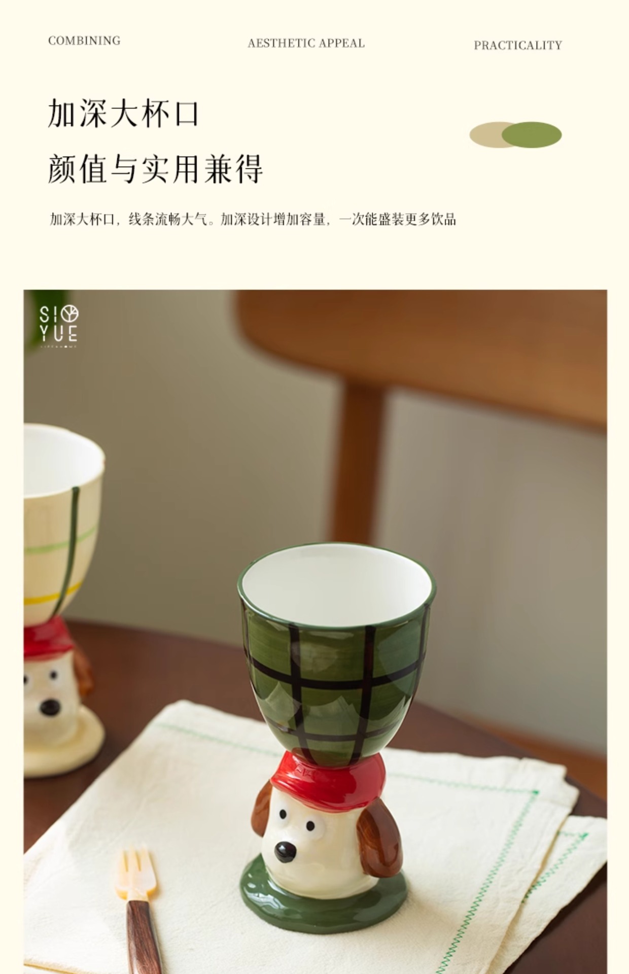 复古陶瓷高脚杯 法式冰淇淋杯ins布丁甜品碗家用高脚蜡烛杯蜡烛台