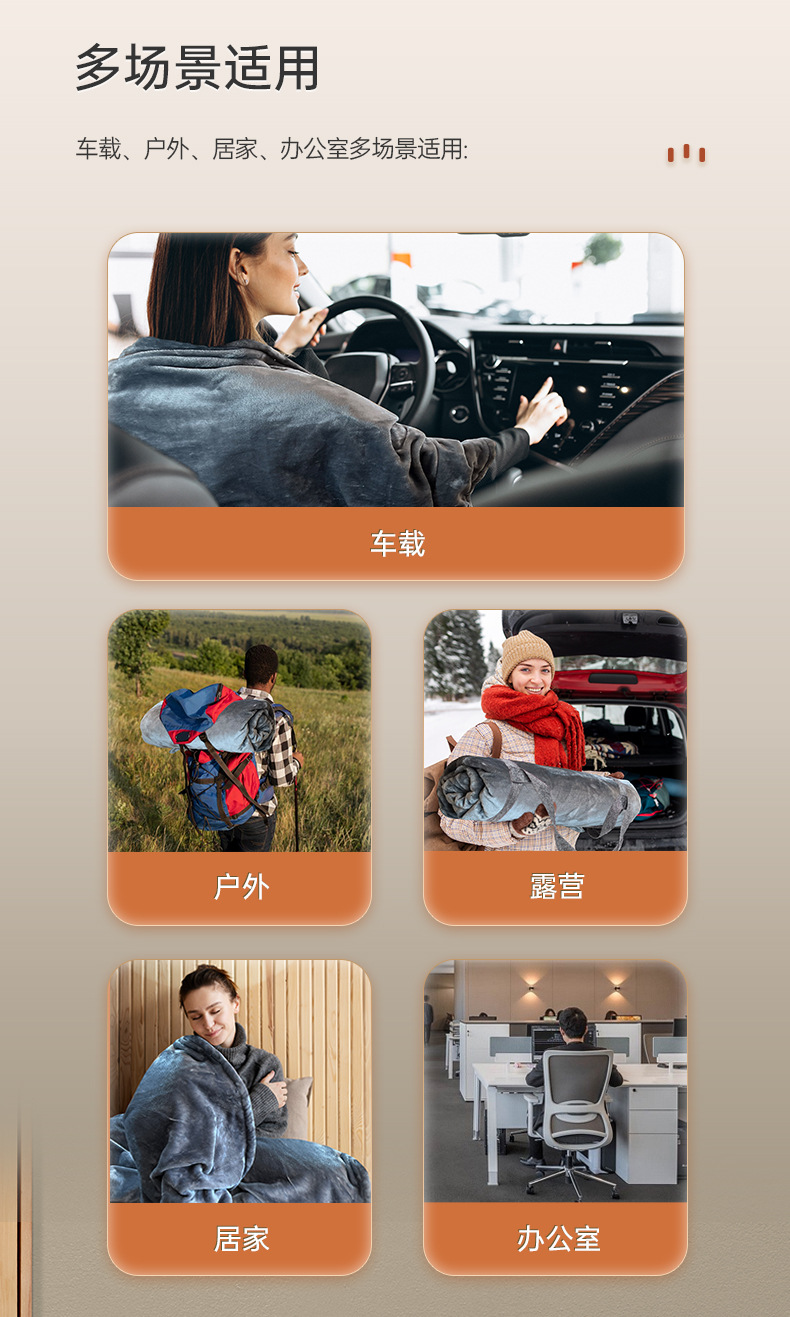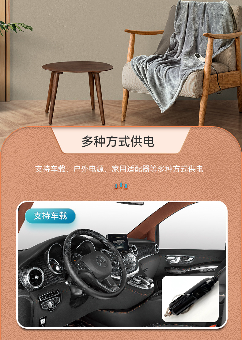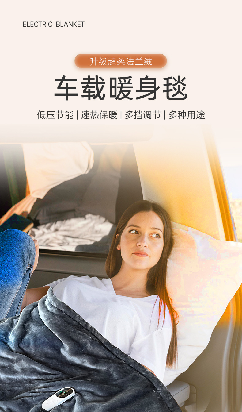 跨境批发车载电热毯12V暖身毯加热毯办公室午睡毛毯多功能披肩