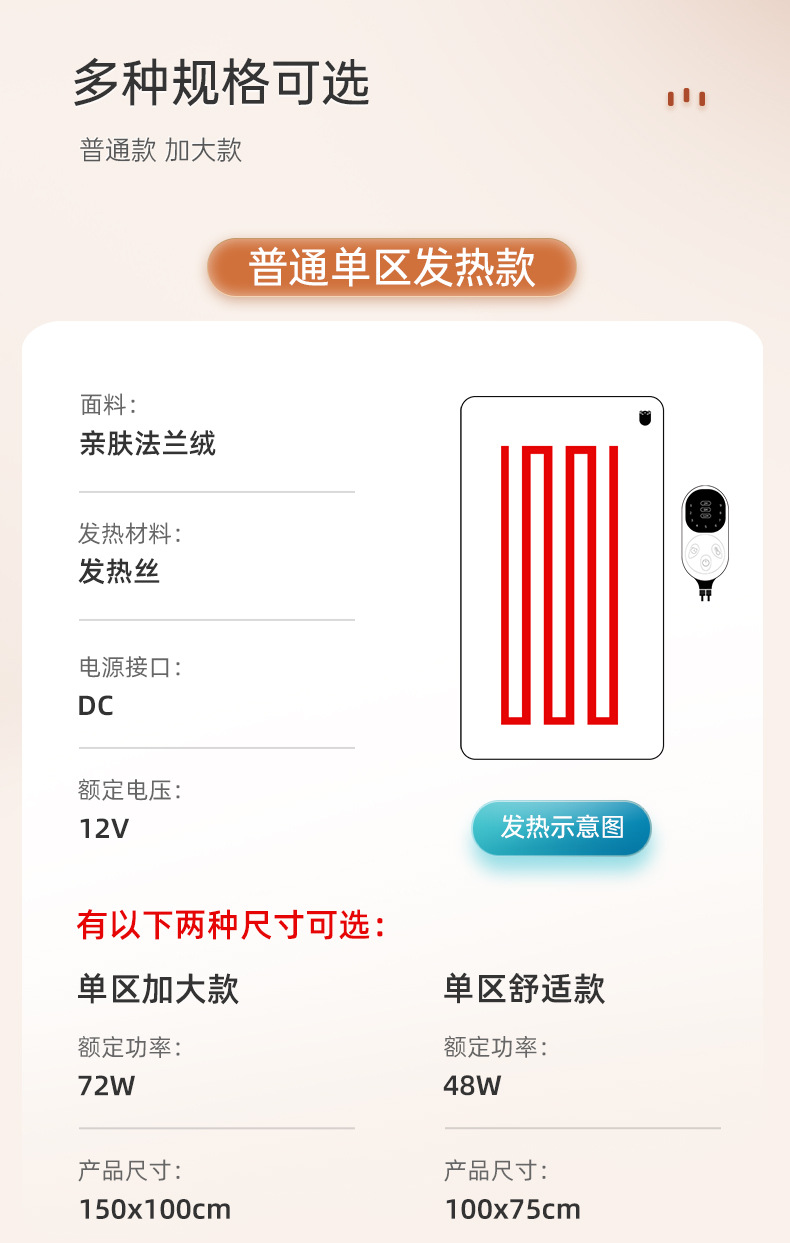 | 145 x100cm [9-gear temperature control + car cigarette lighter]](145x100cm【9挡控温+车载点烟器】) | USD $23.18 | 3135 piece available |