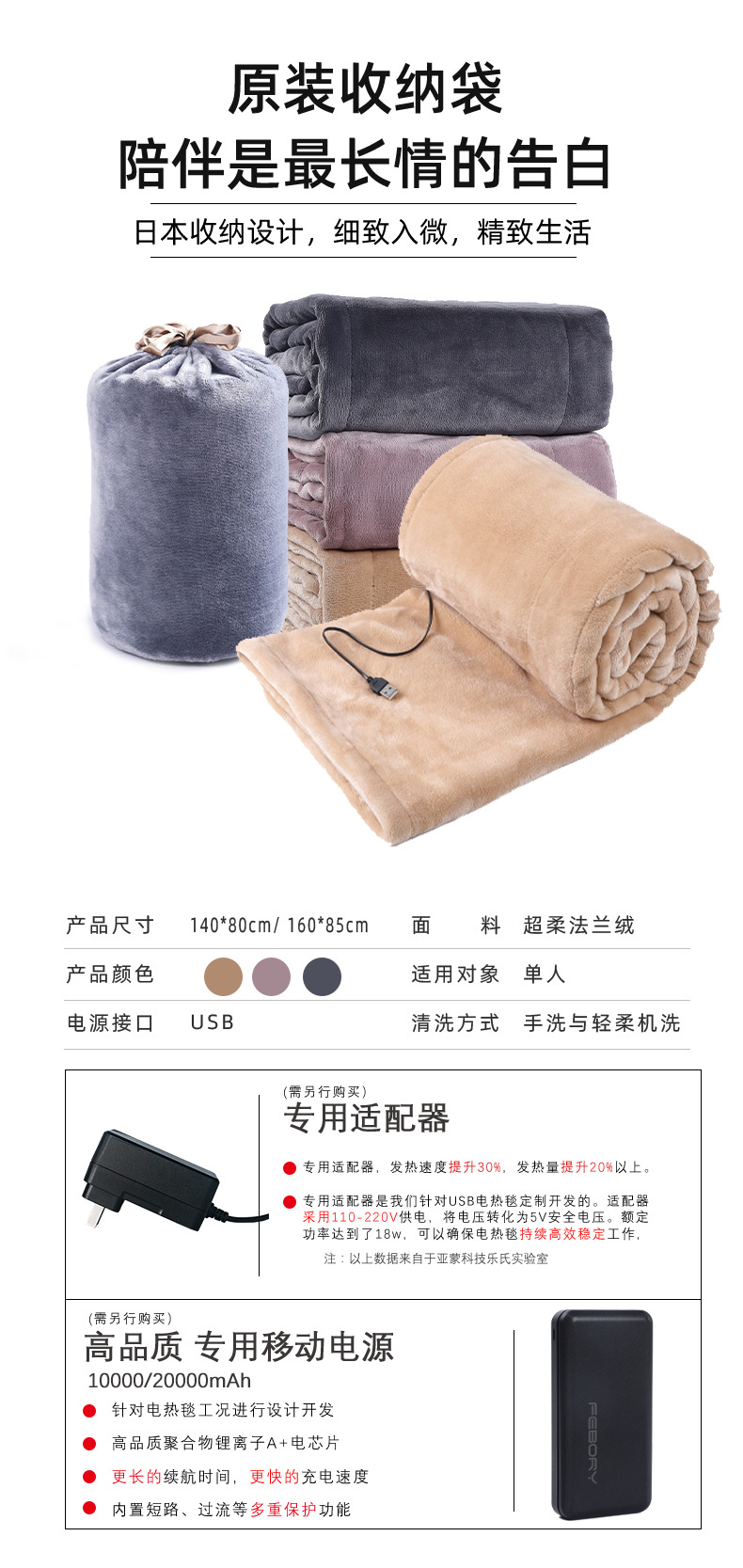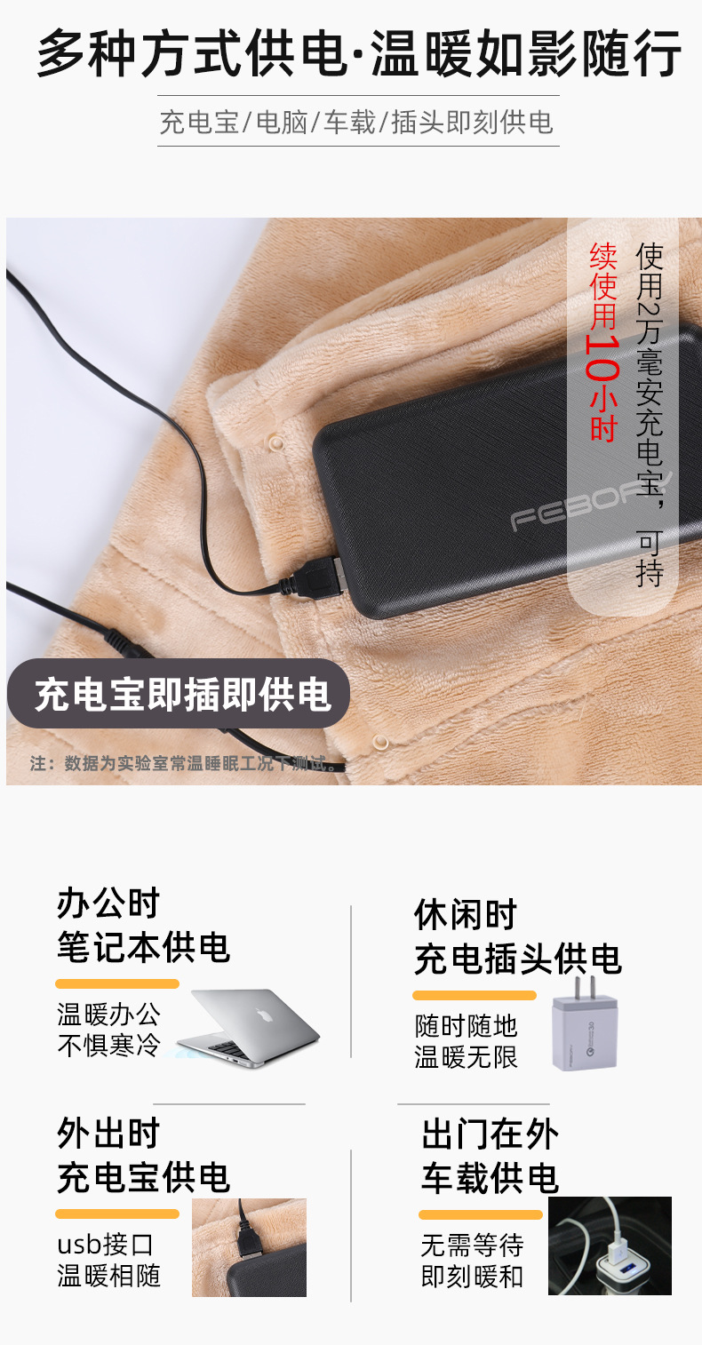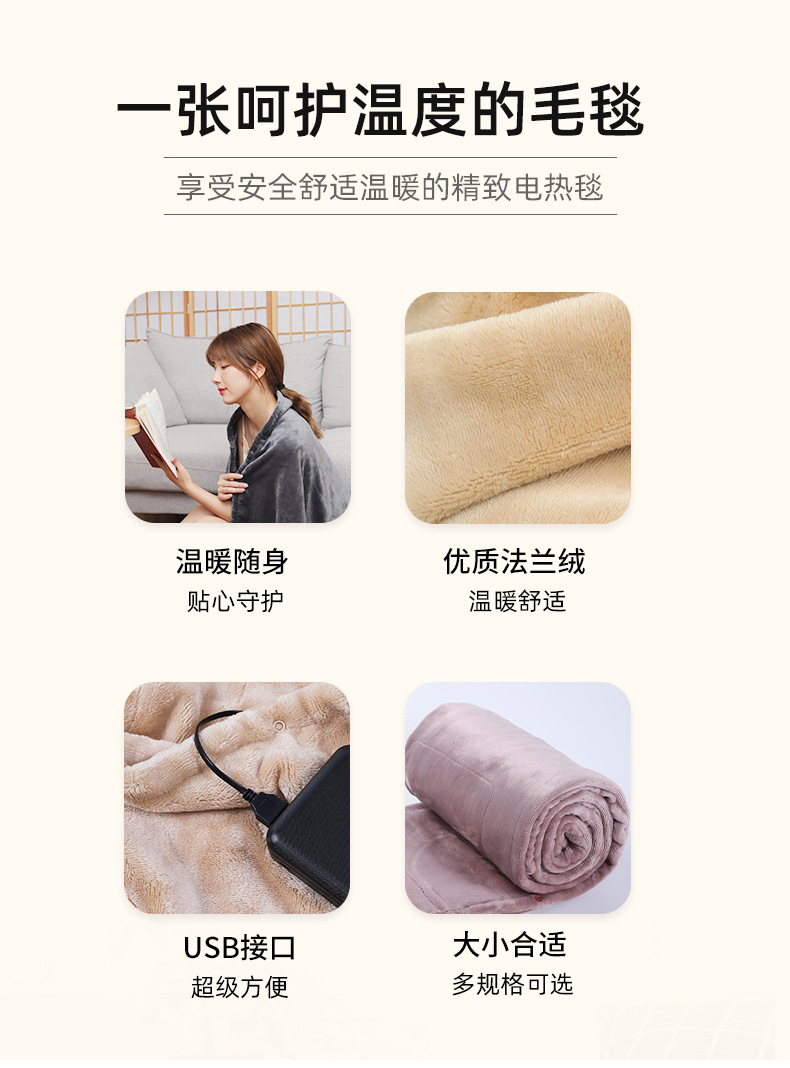 USB电热毯充电宝车载5V宿舍户外暖身盖毯电褥子跨境外贸加热披肩