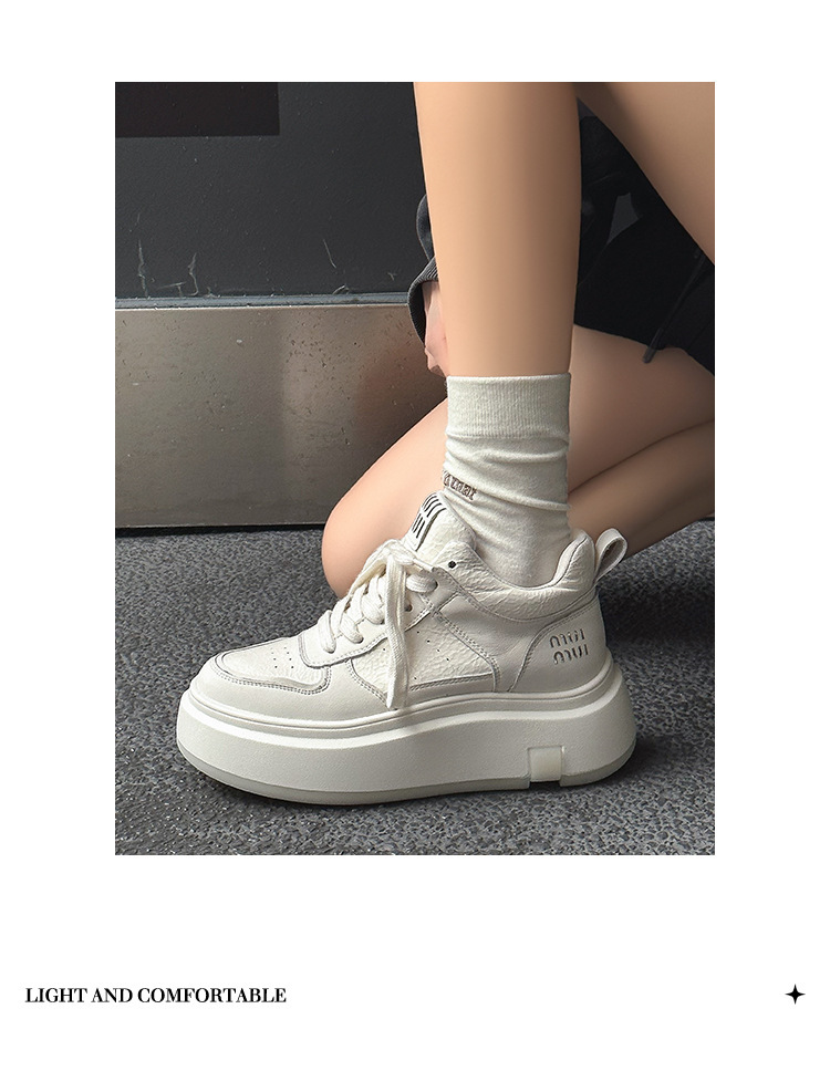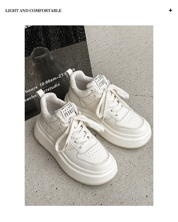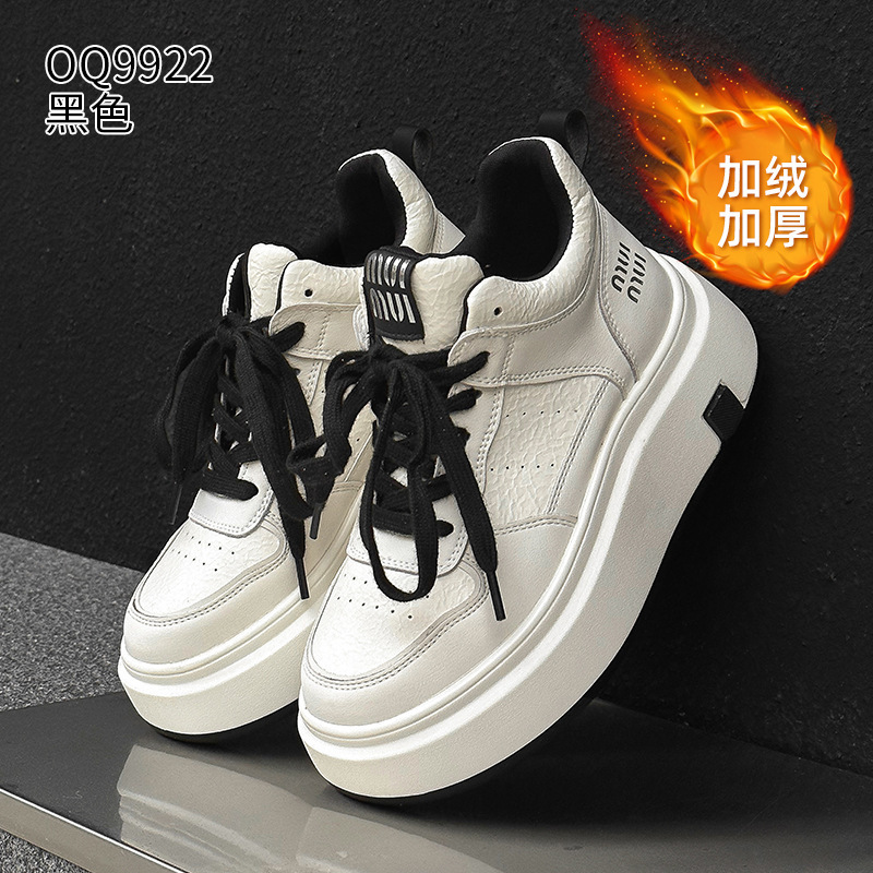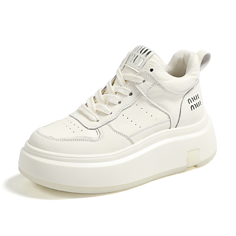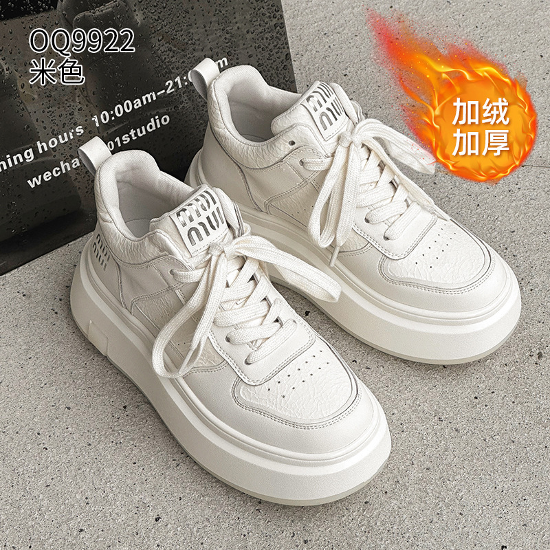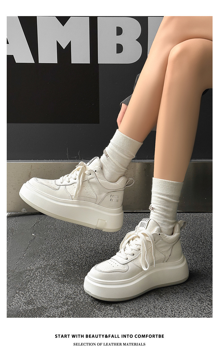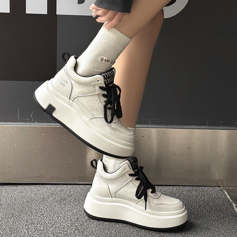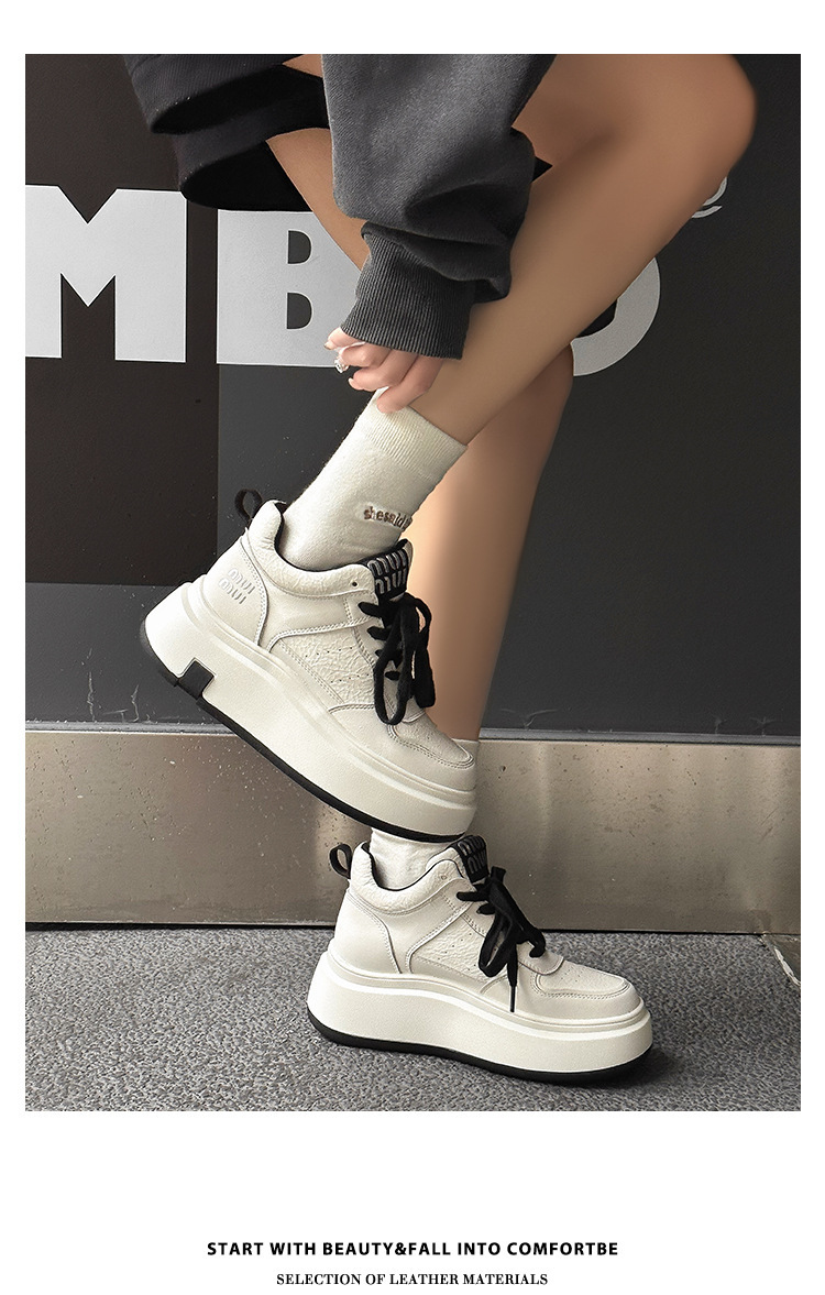 真皮高帮小白鞋女2025秋冬季网红爆款加绒松糕厚底小个子休闲板鞋