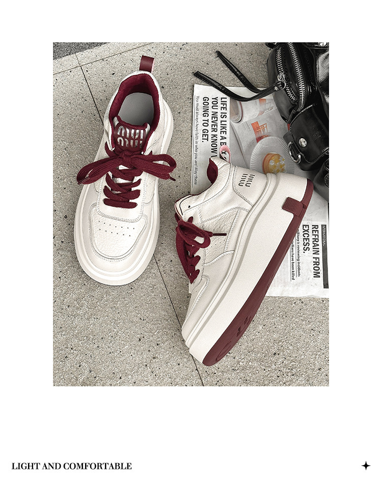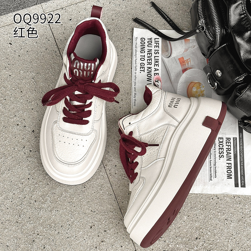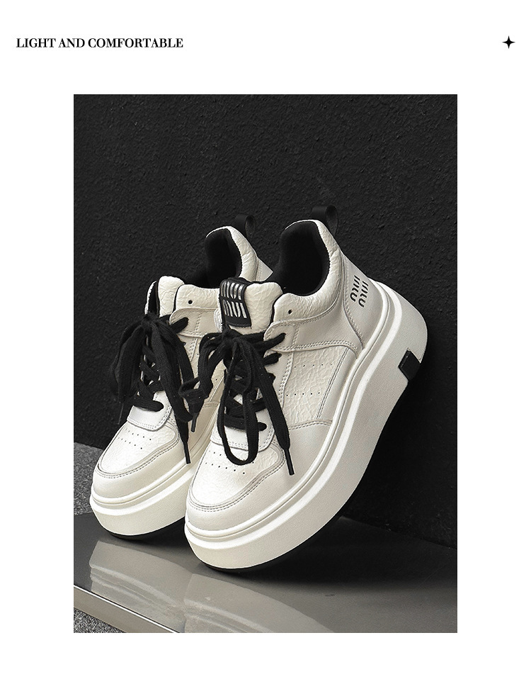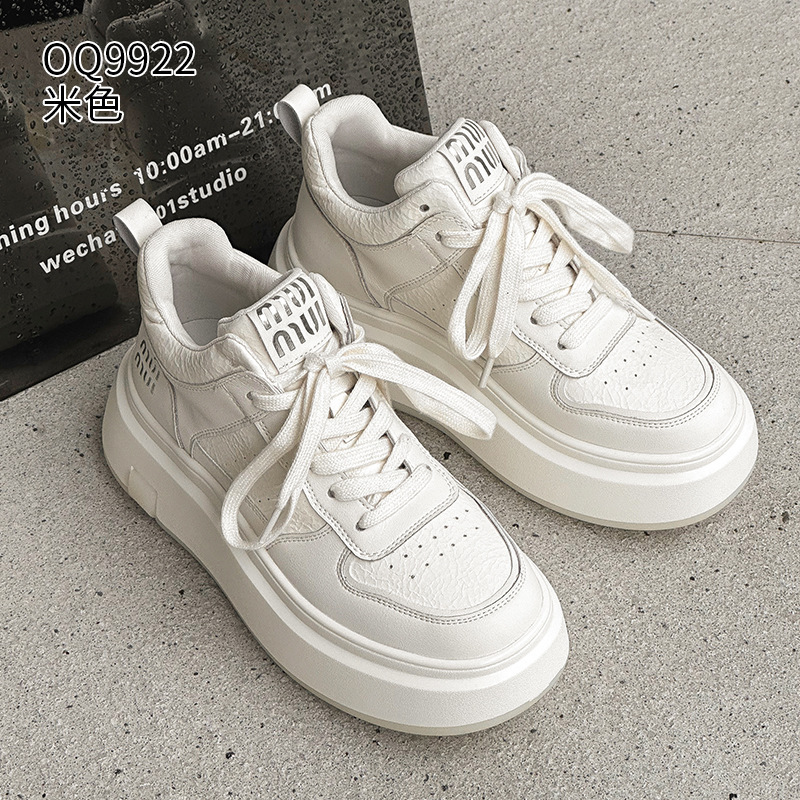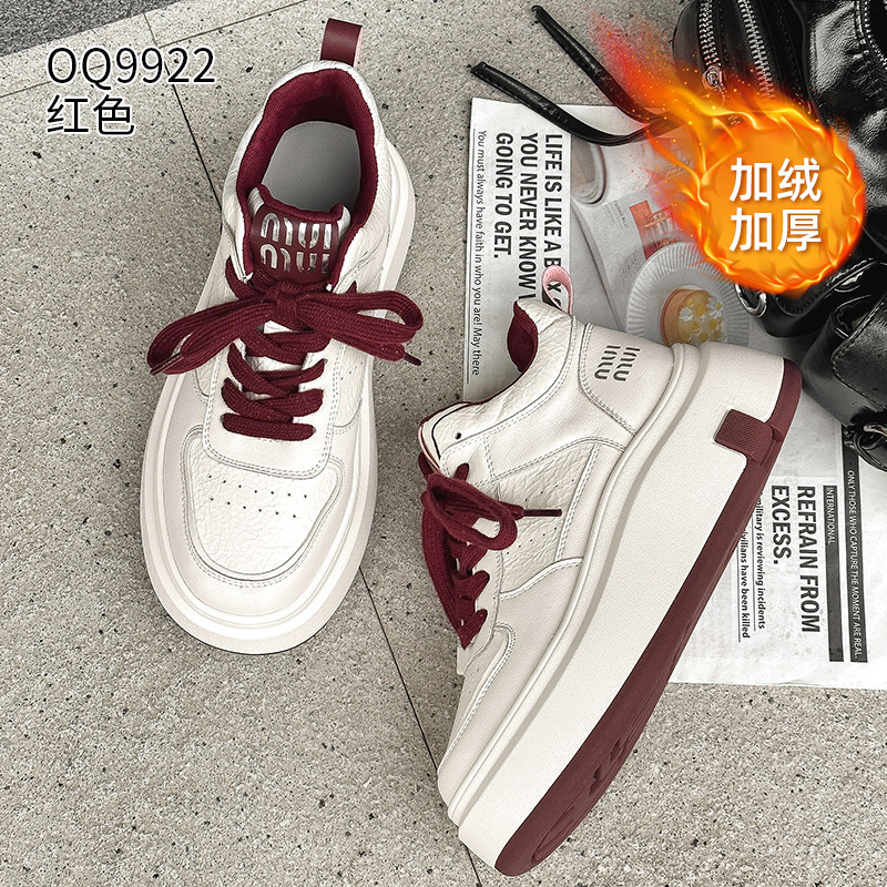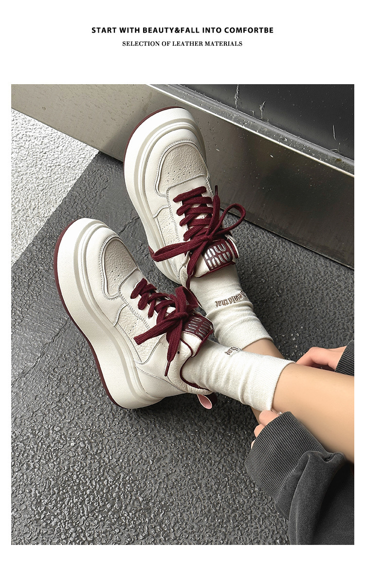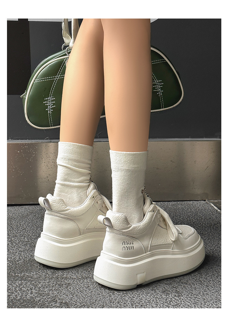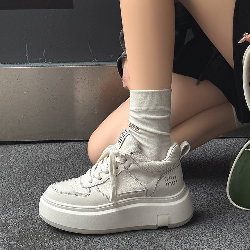 真皮高帮小白鞋女2025秋冬季网红爆款加绒松糕厚底小个子休闲板鞋