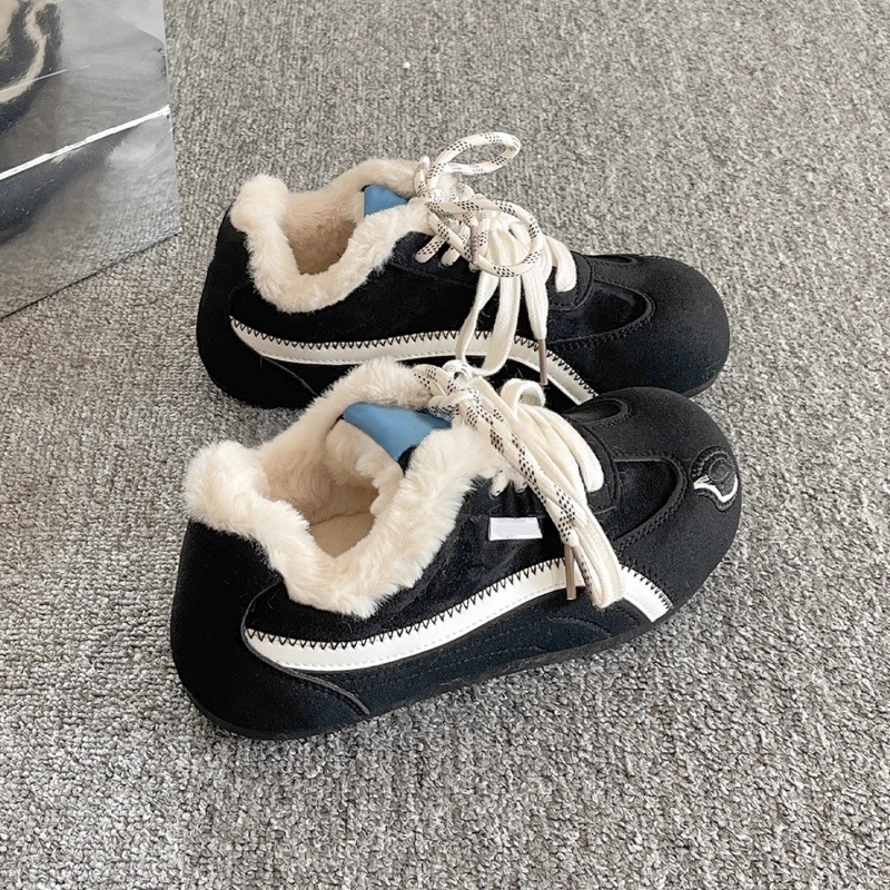 加绒德训鞋女款2025冬季新款学生百搭保暖二棉鞋平底休闲运动板鞋