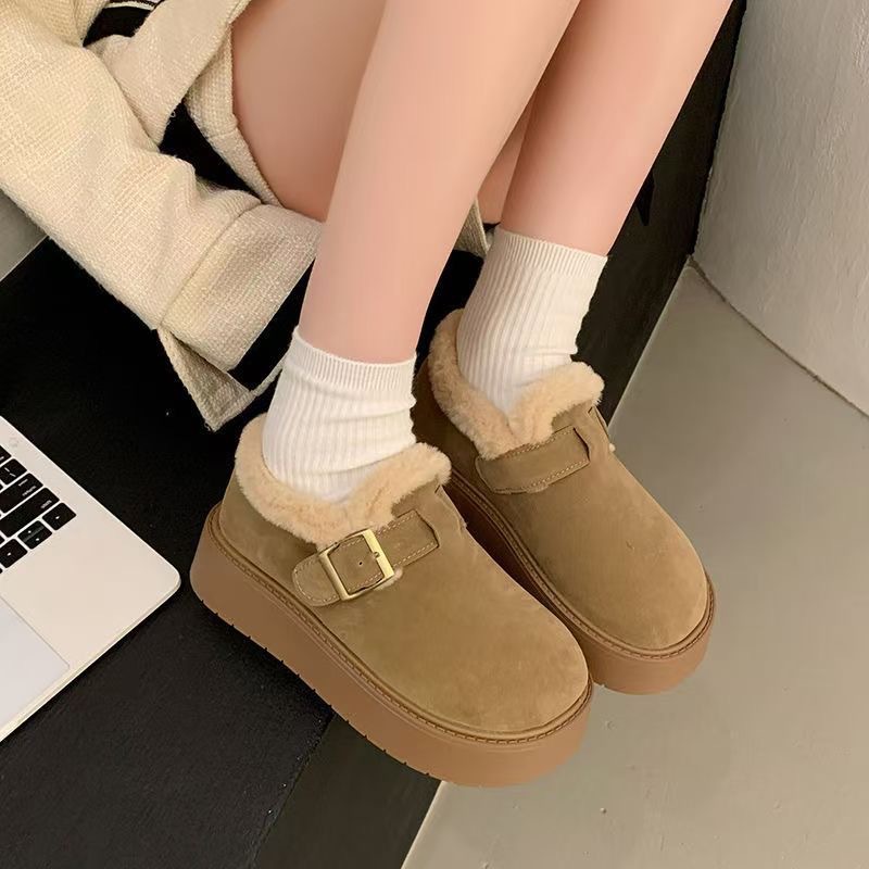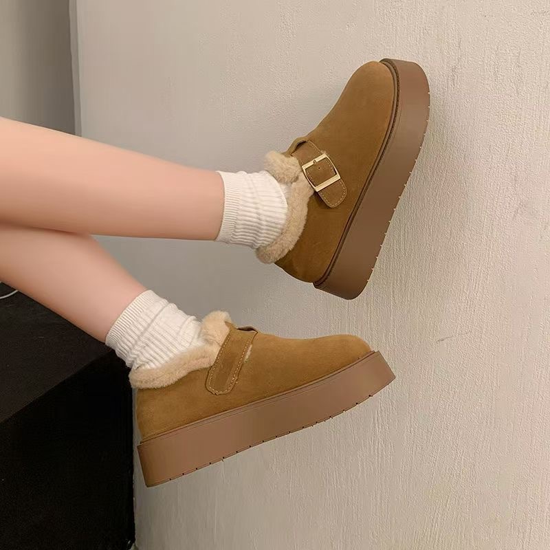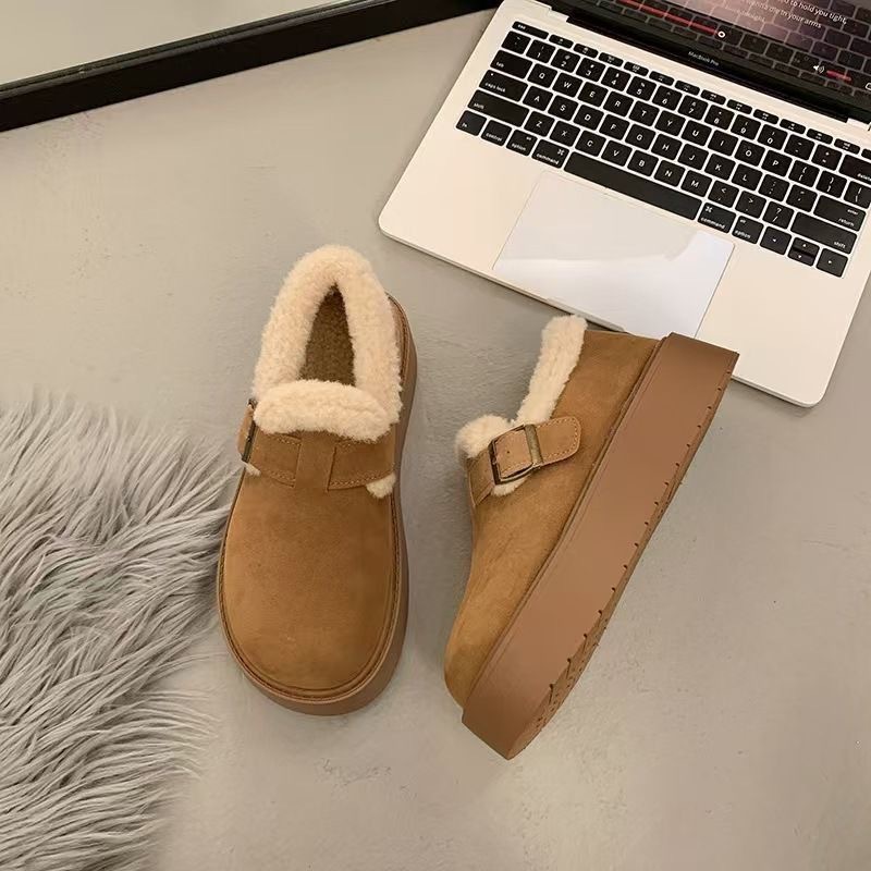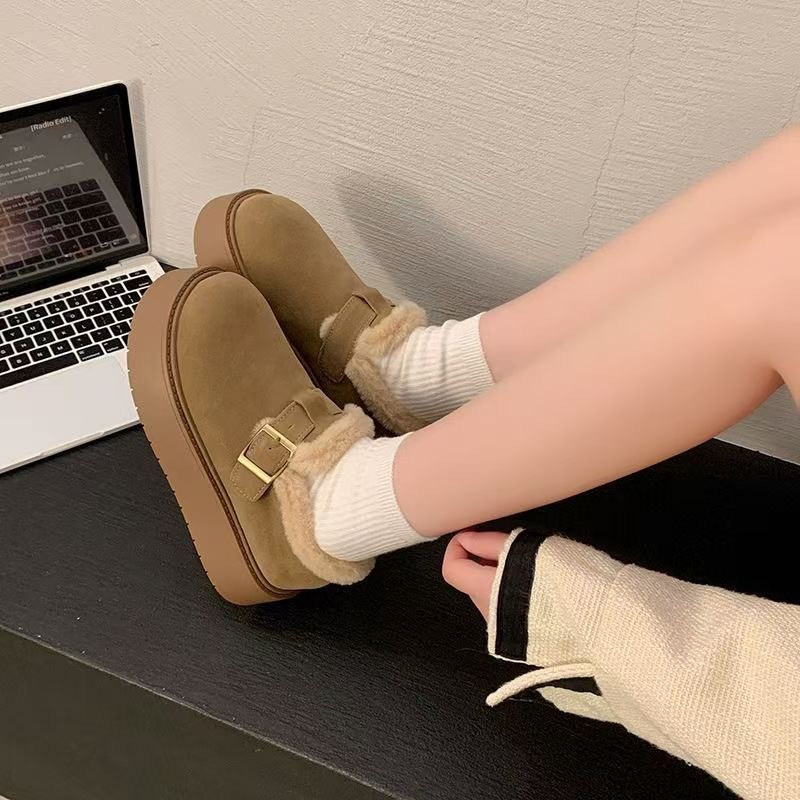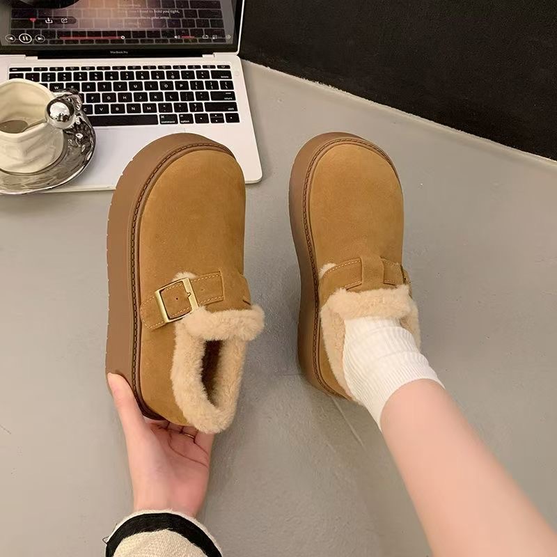 厚底雪地靴女款2025新款冬季加绒加厚勃肯鞋一脚蹬东北棉鞋面包鞋