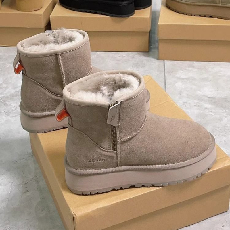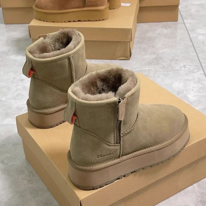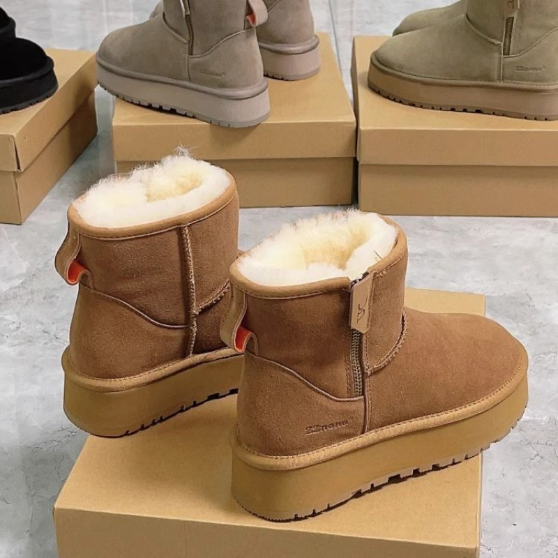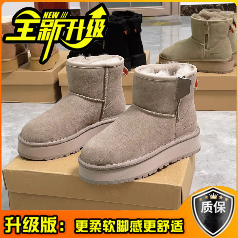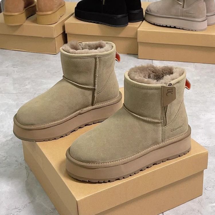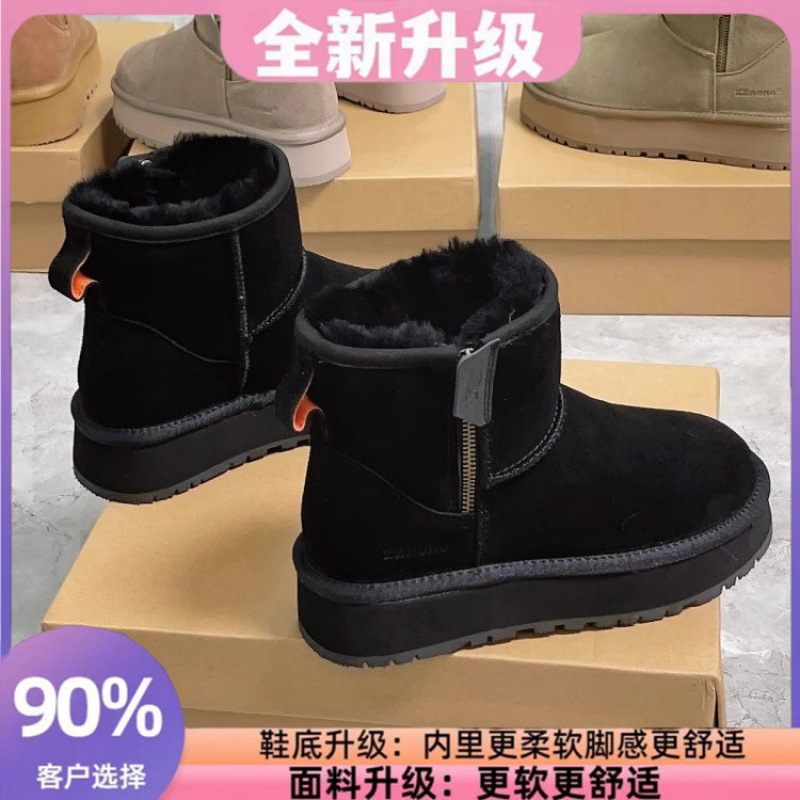 零下40度皮毛一体雪地靴女防冻厚底侧拉链短筒靴加绒加厚东北棉鞋