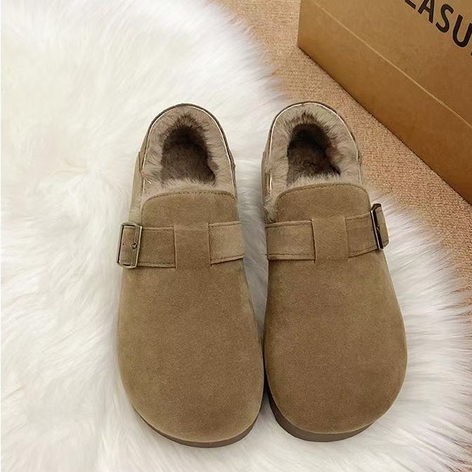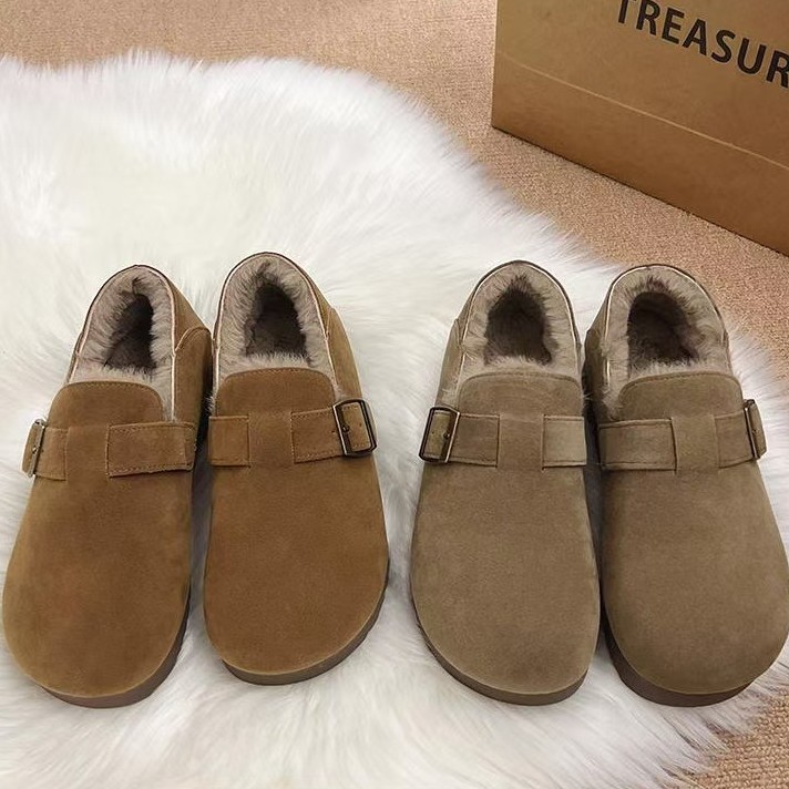 厚底全包勃肯鞋女2025年秋冬新款加绒保暖一脚蹬两穿懒人鞋豆豆鞋