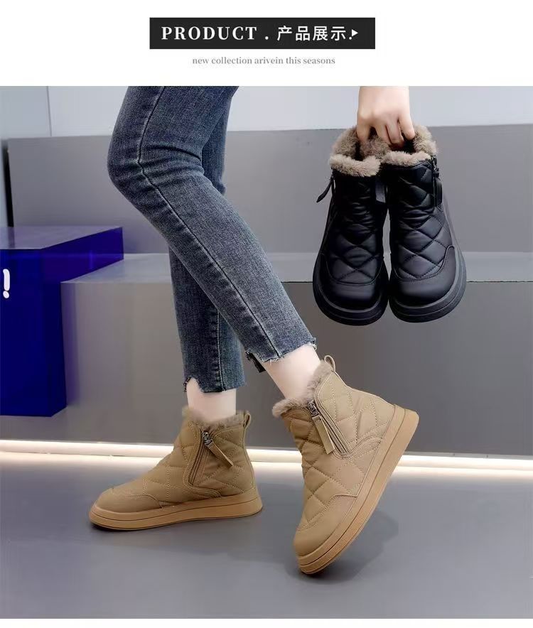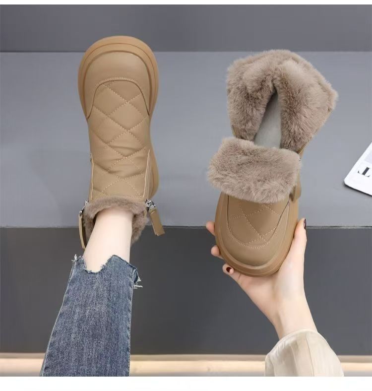 皮毛一体雪地靴女款2025新款冬季棉靴防滑加绒加厚东北大棉鞋代发