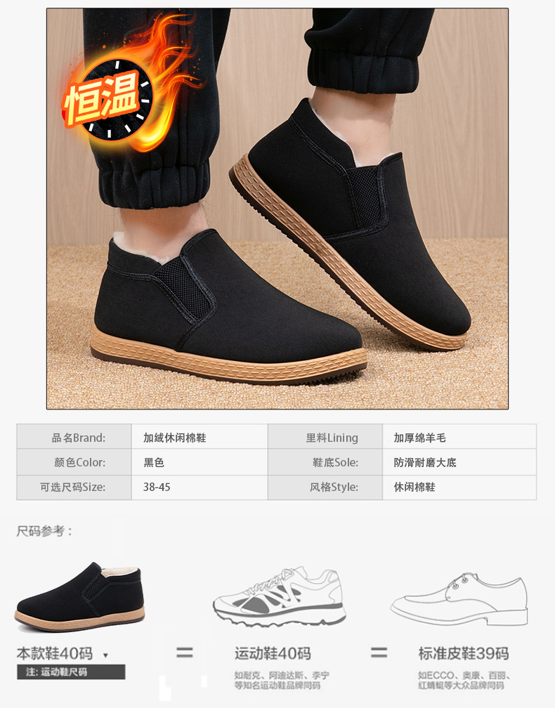 冬季新款老北京布鞋男加绒加厚抗寒保暖棉鞋防滑舒适休闲爸爸棉靴