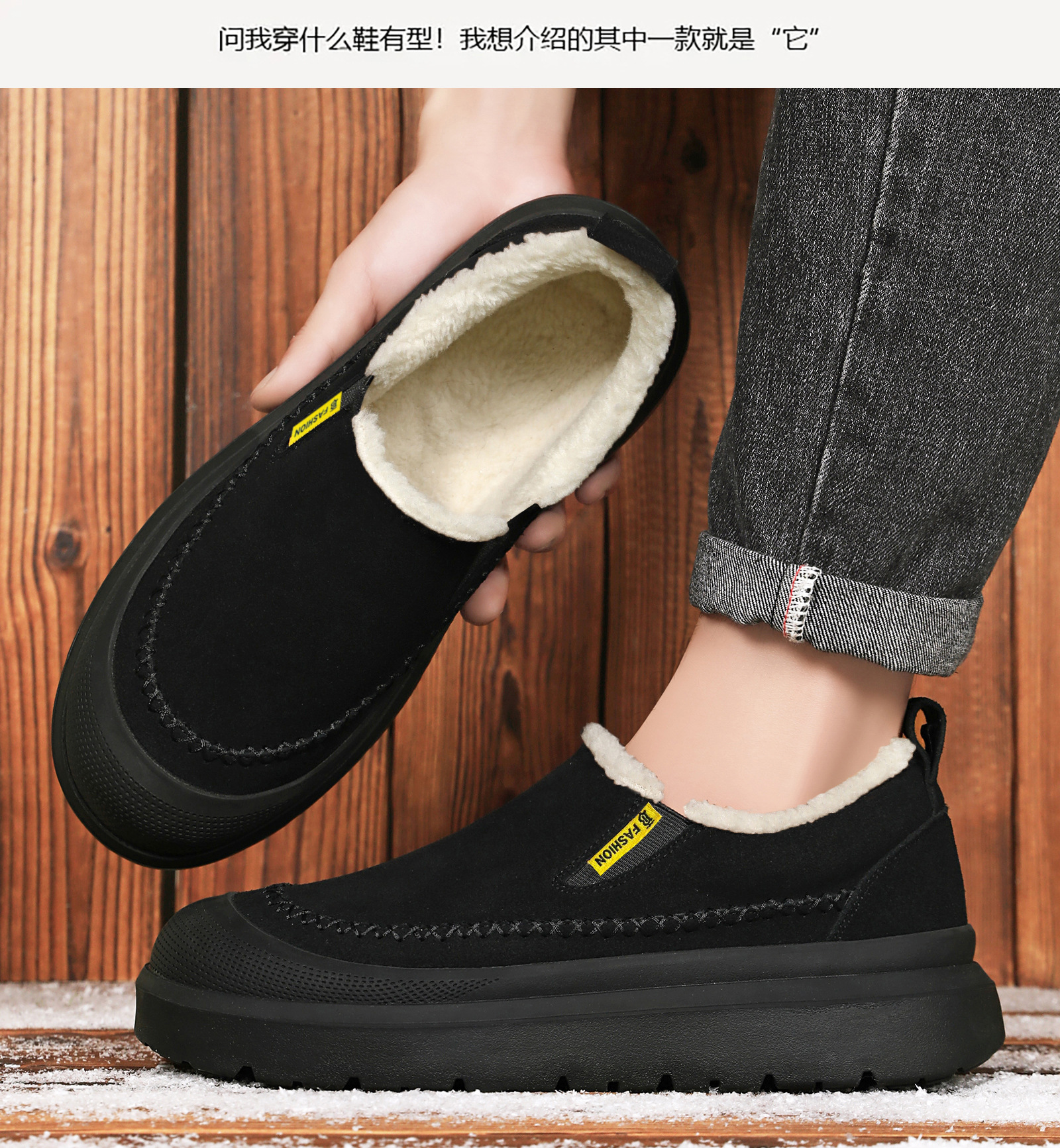 棉鞋男款冬季保暖加绒男鞋厚底舒适雪地靴防寒防滑棉靴浅口短靴