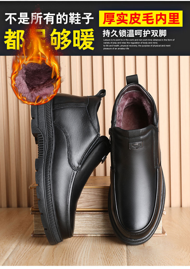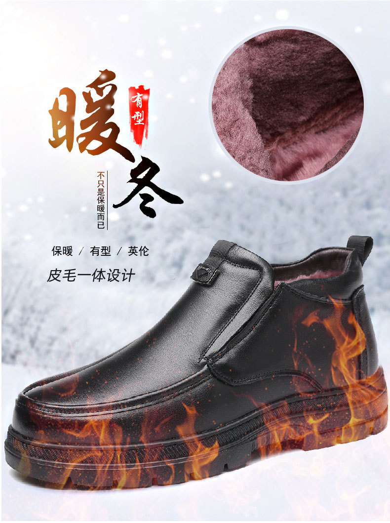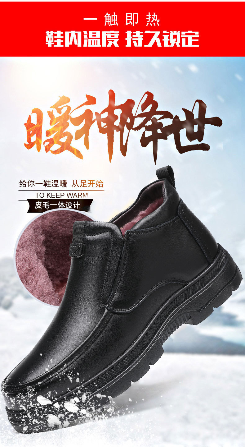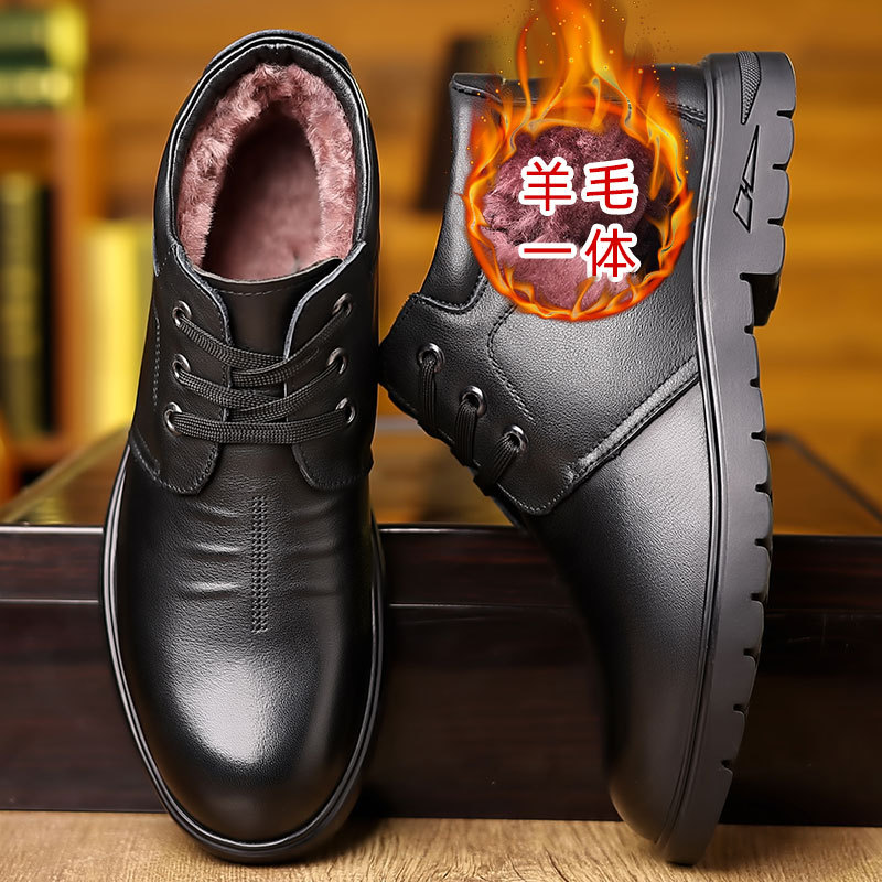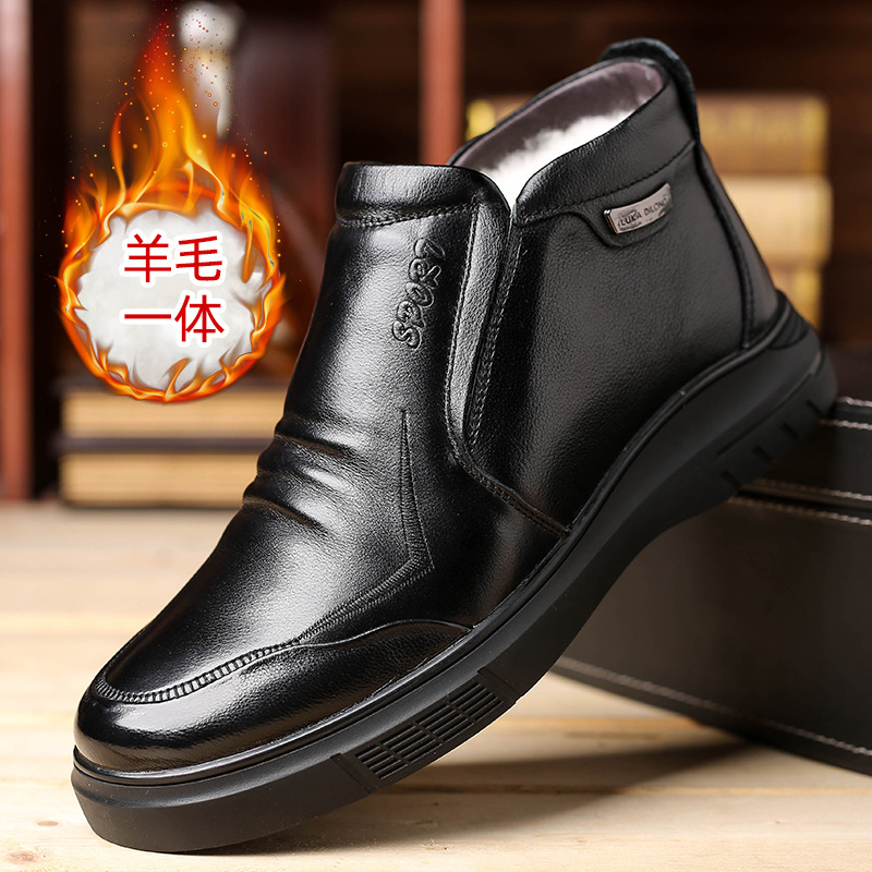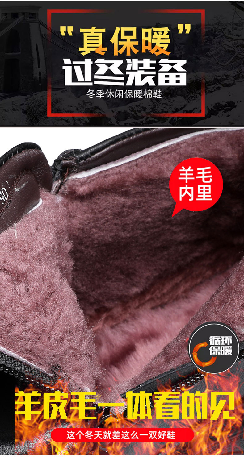 羊毛男鞋冬季真皮棉鞋男款加绒加厚外穿厚底一脚蹬东北雪地靴男士