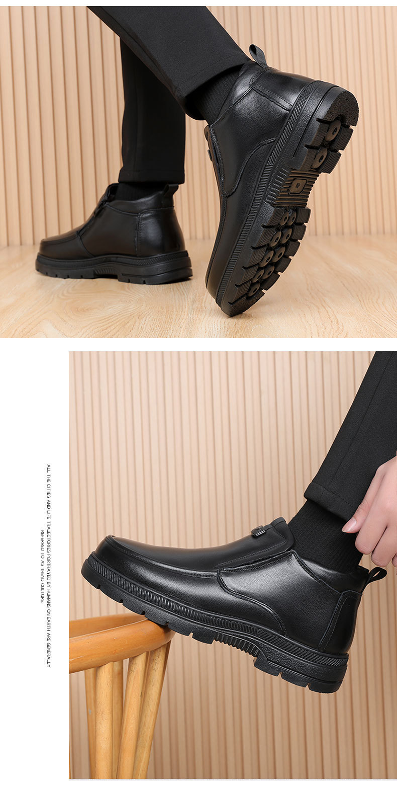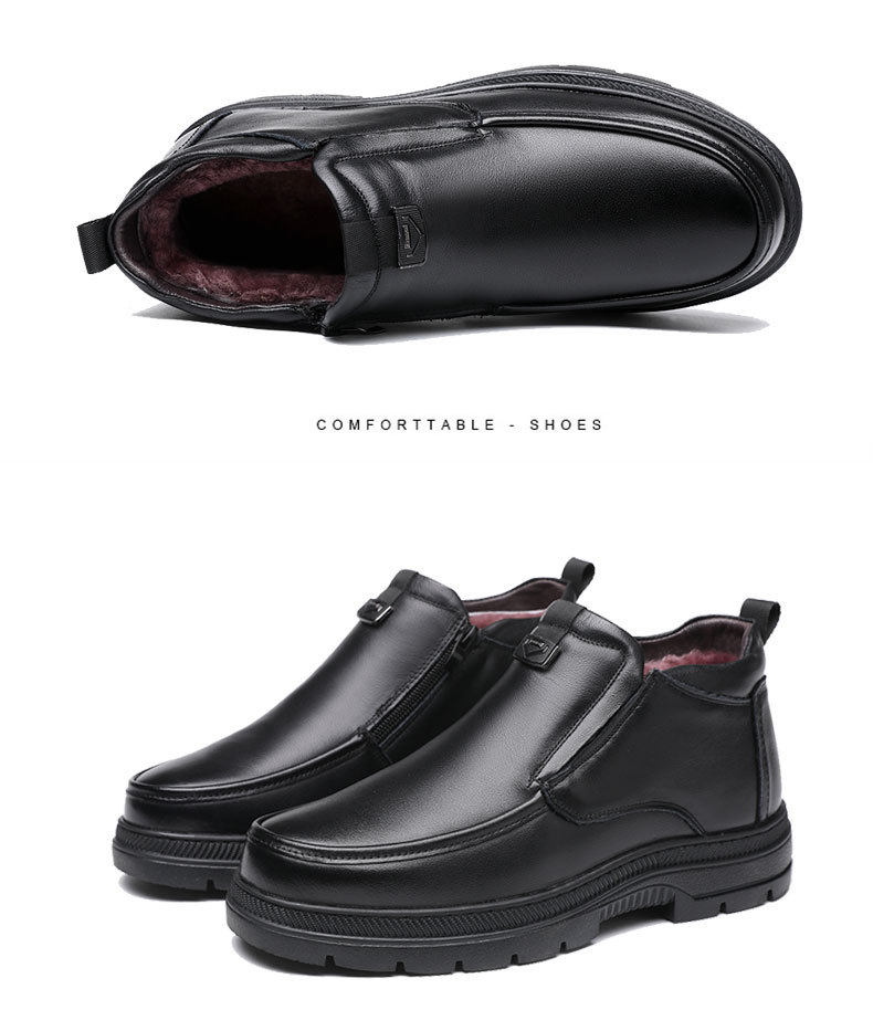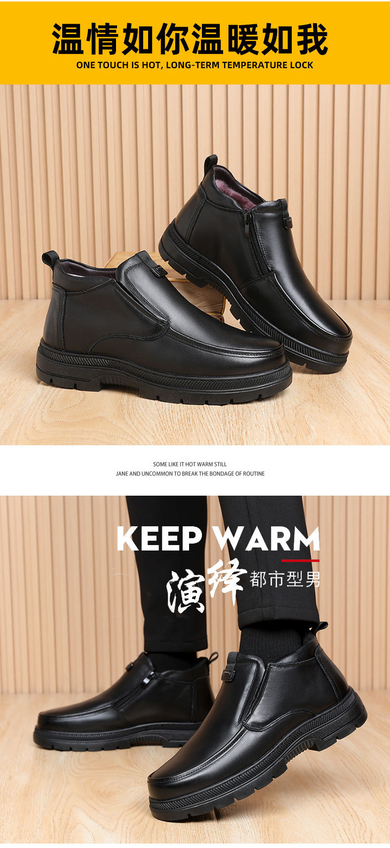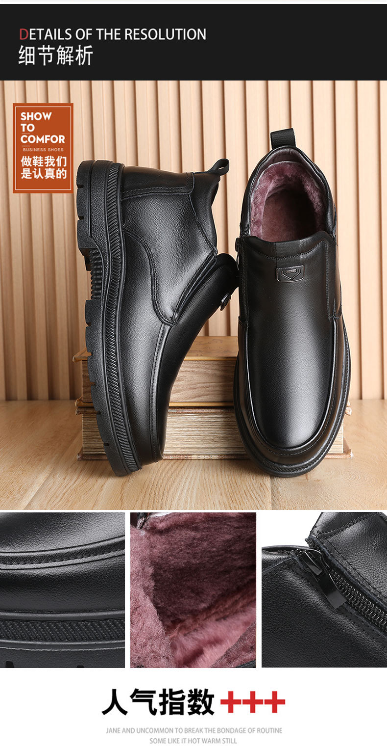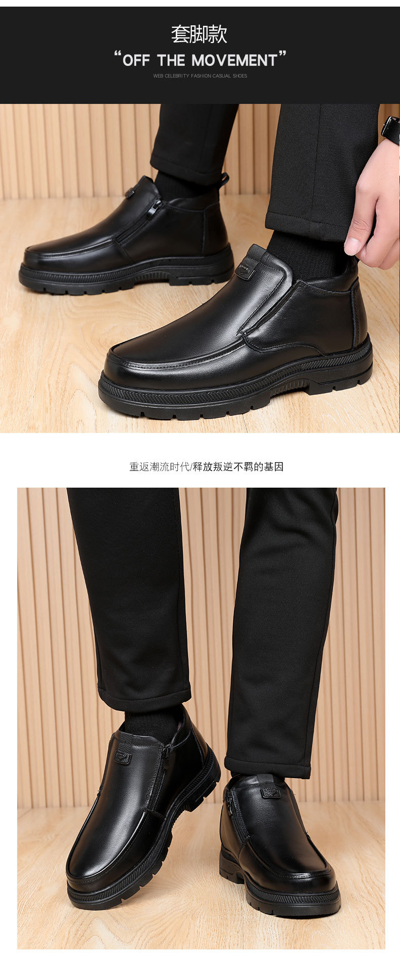 羊毛男鞋冬季真皮棉鞋男款加绒加厚外穿厚底一脚蹬东北雪地靴男士