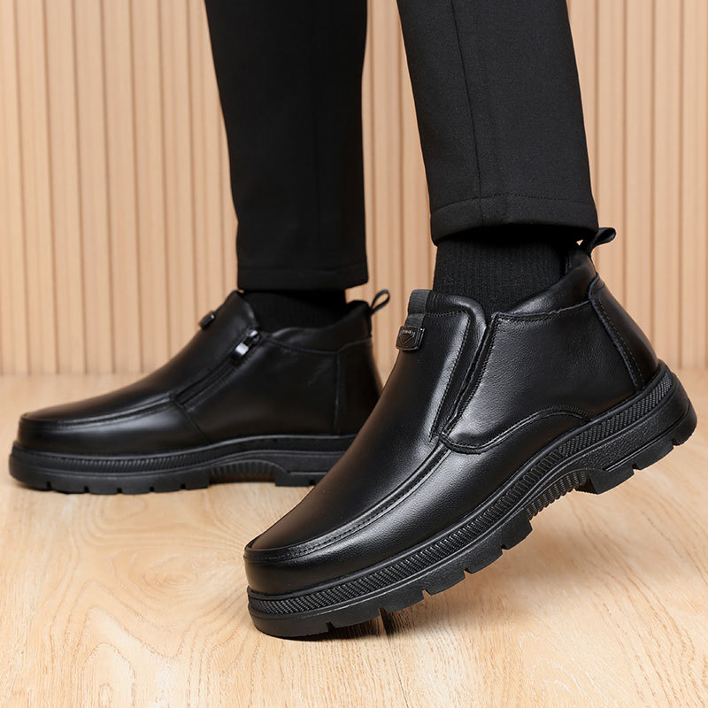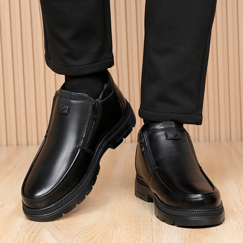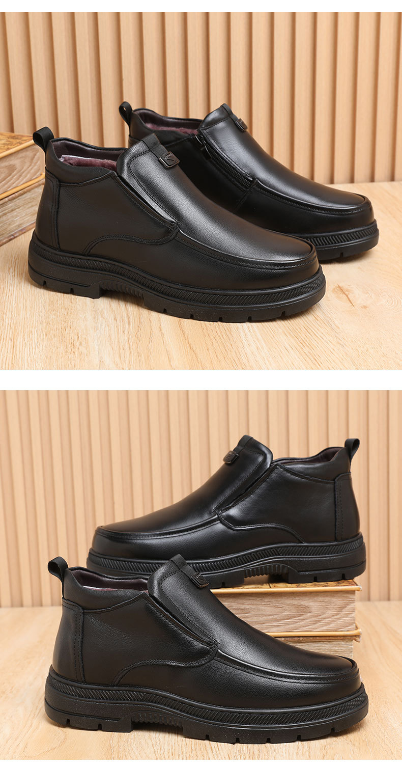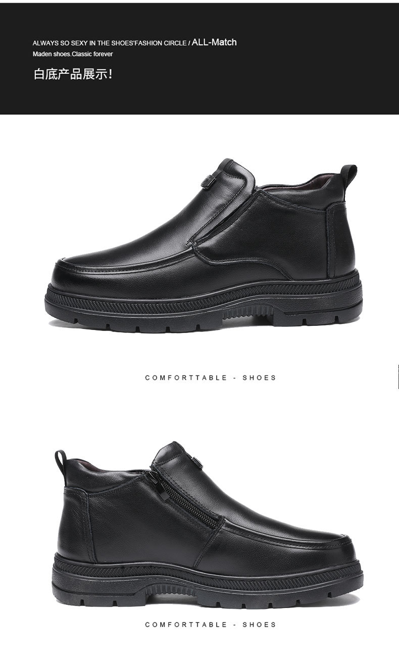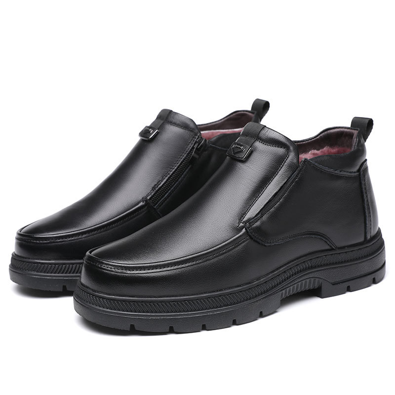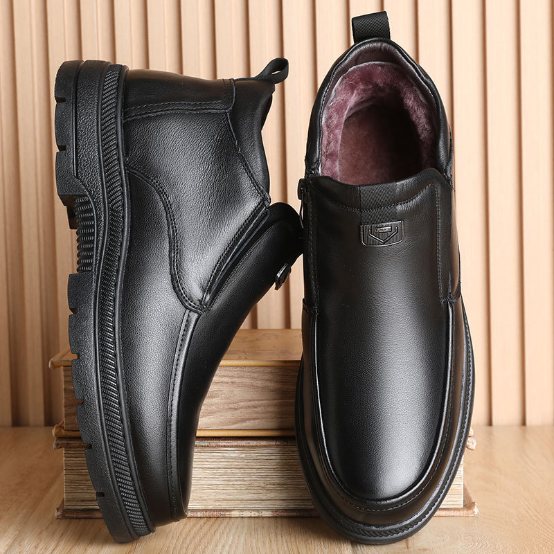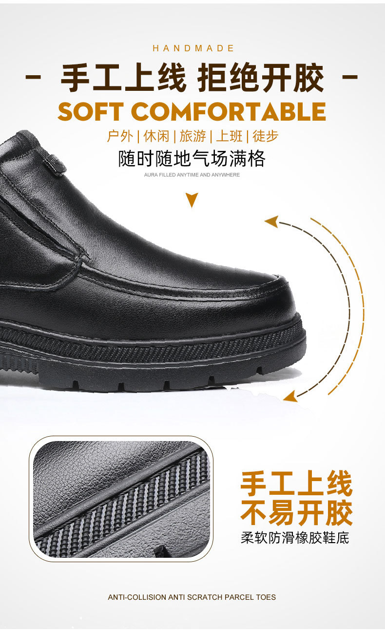 羊毛男鞋冬季真皮棉鞋男款加绒加厚外穿厚底一脚蹬东北雪地靴男士