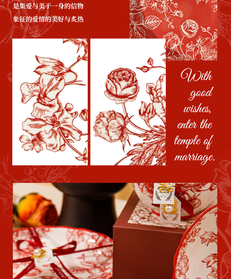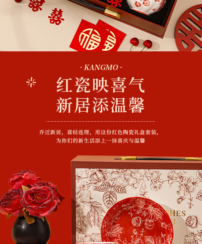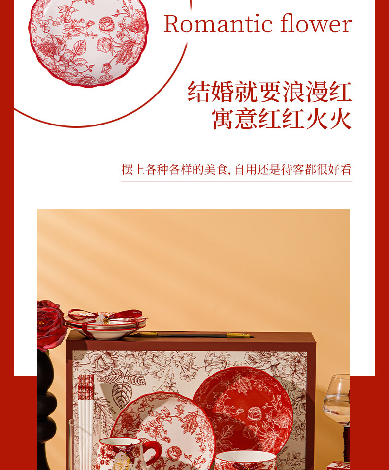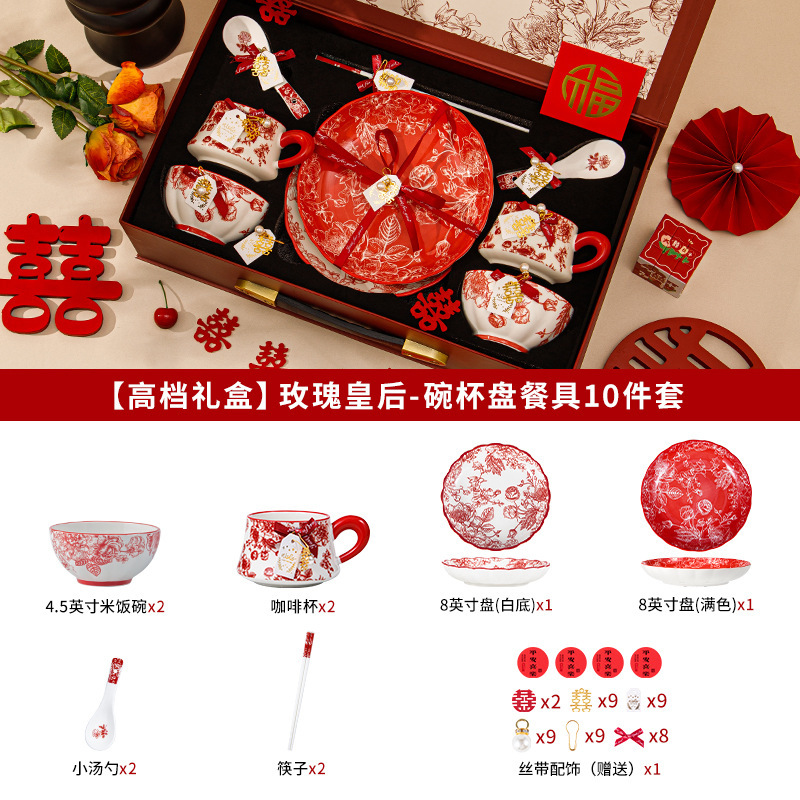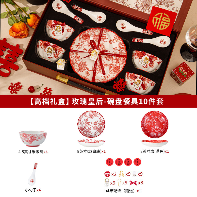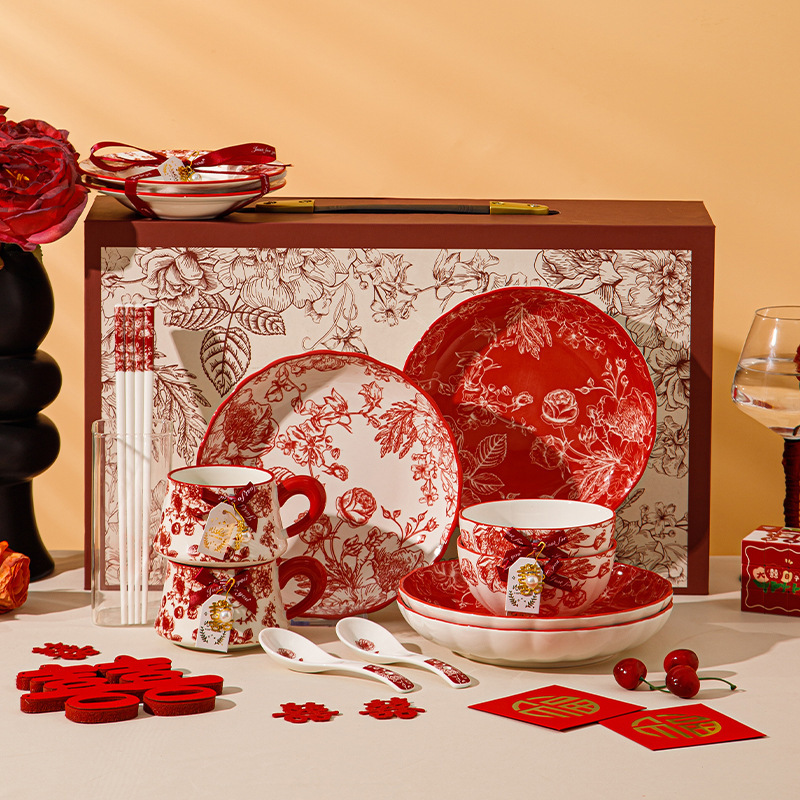 喜庆新婚礼物陶瓷餐具礼品套装乔迁实用送礼高档釉下彩碗碟盘礼盒