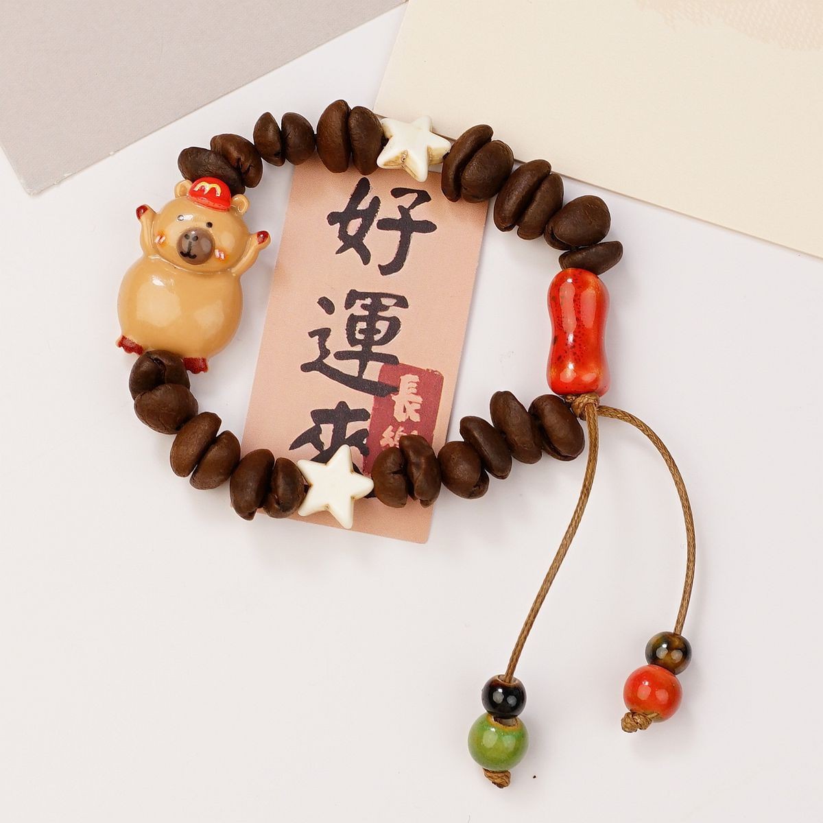 天然真咖啡豆手机链创意咖啡豆手串葫芦diy闺蜜礼物景区热卖货源