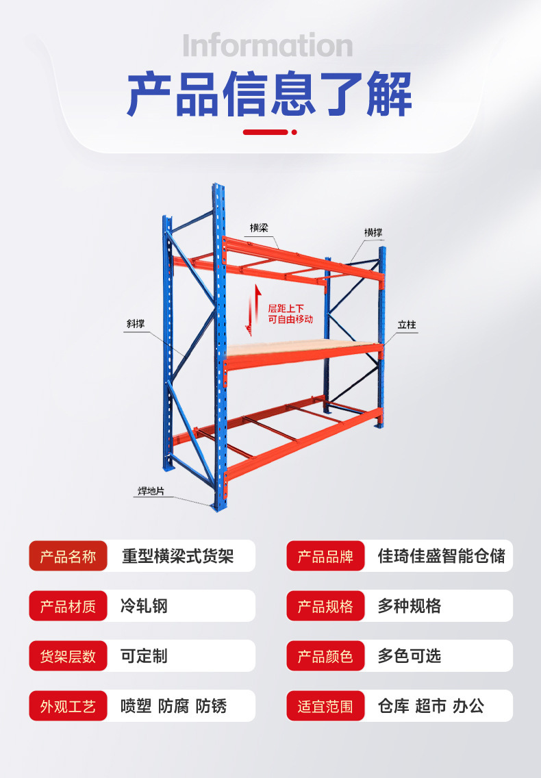 中重型仓库仓储横梁式货架大型储物架工厂库房多层加厚高位货架