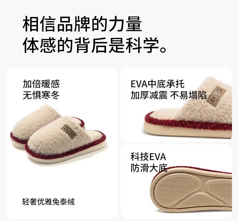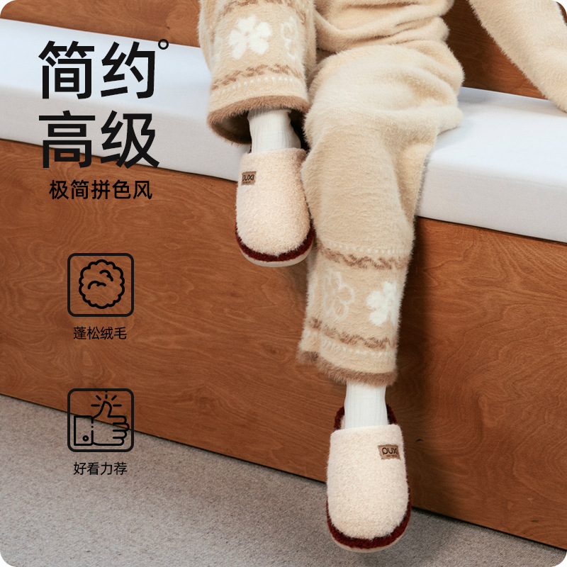 朴西意宁2025新款棉拖鞋女士冬季保暖室内家居耐磨防滑毛毛绒拖鞋