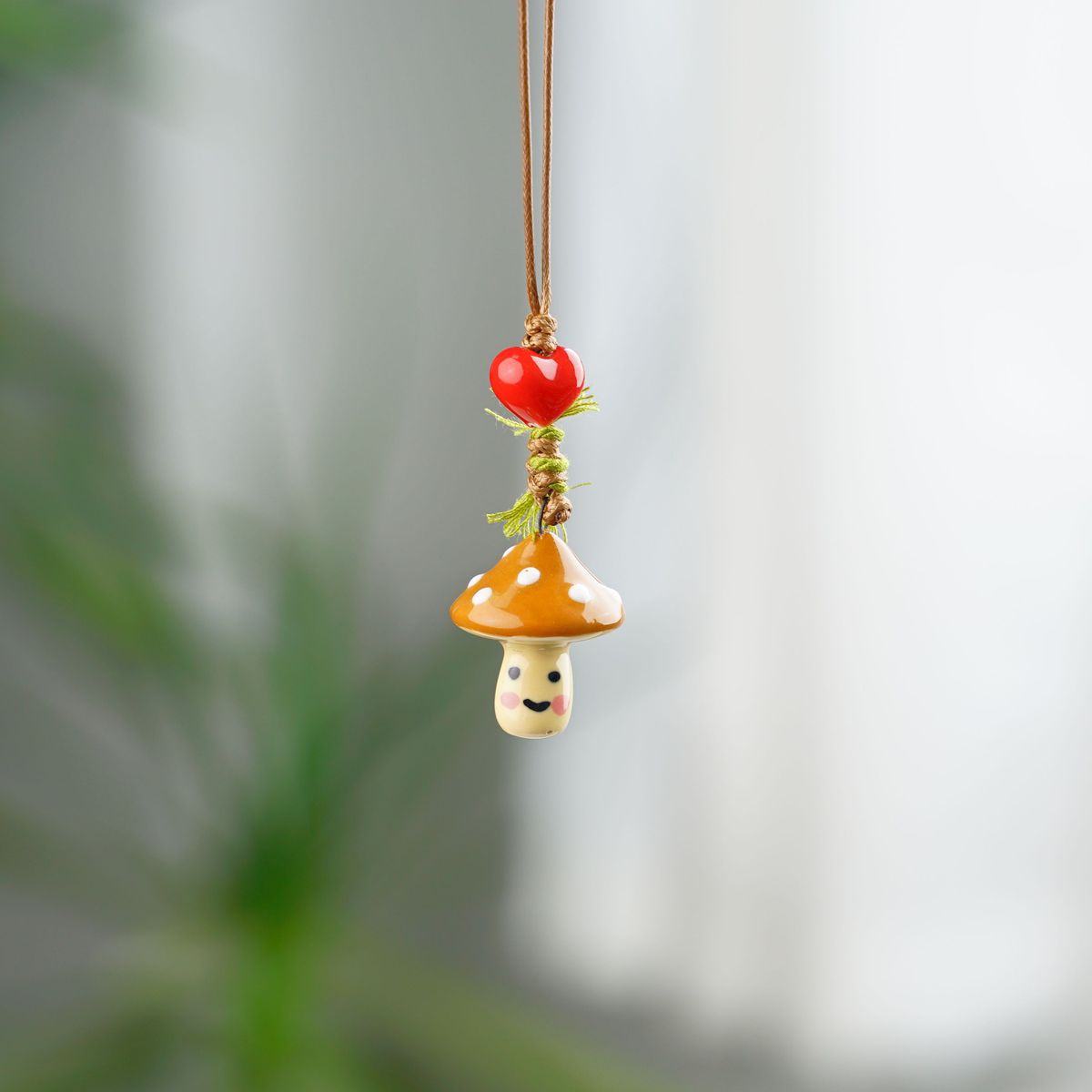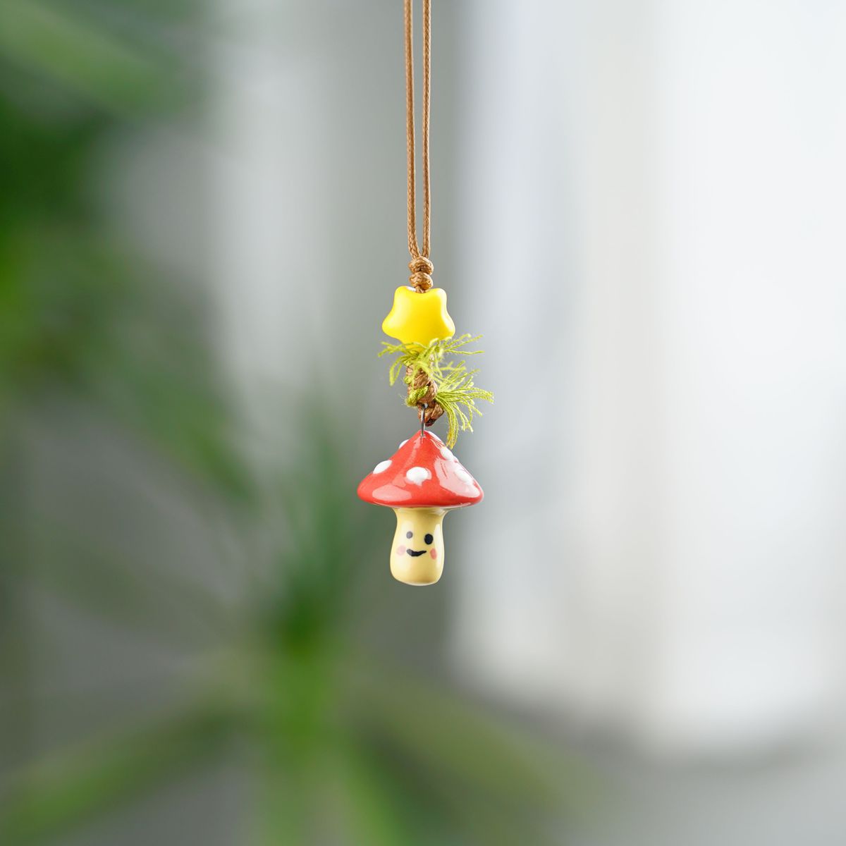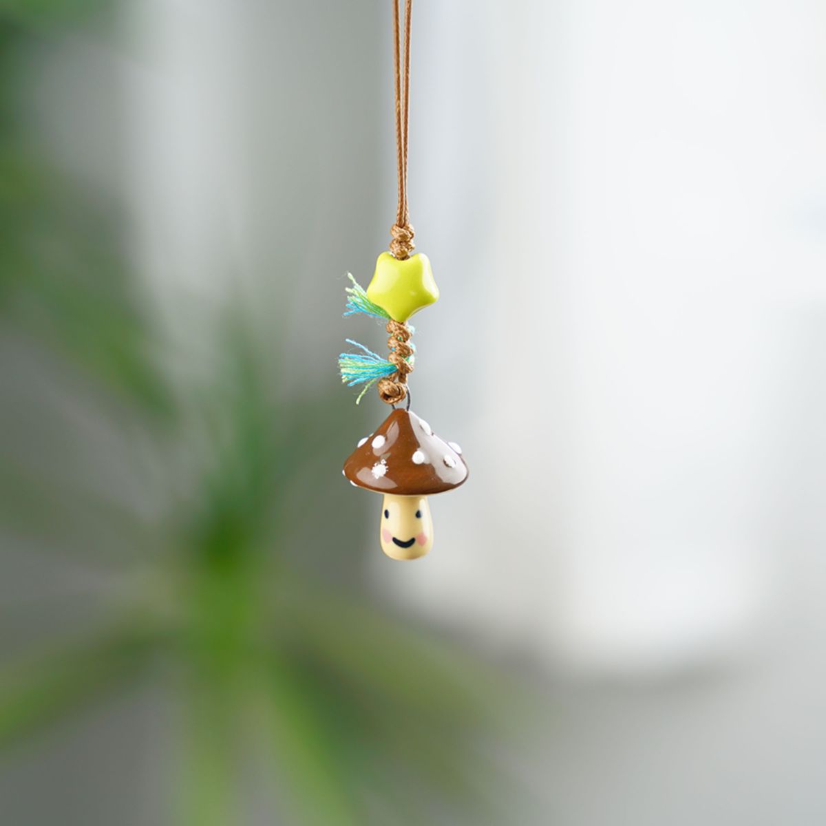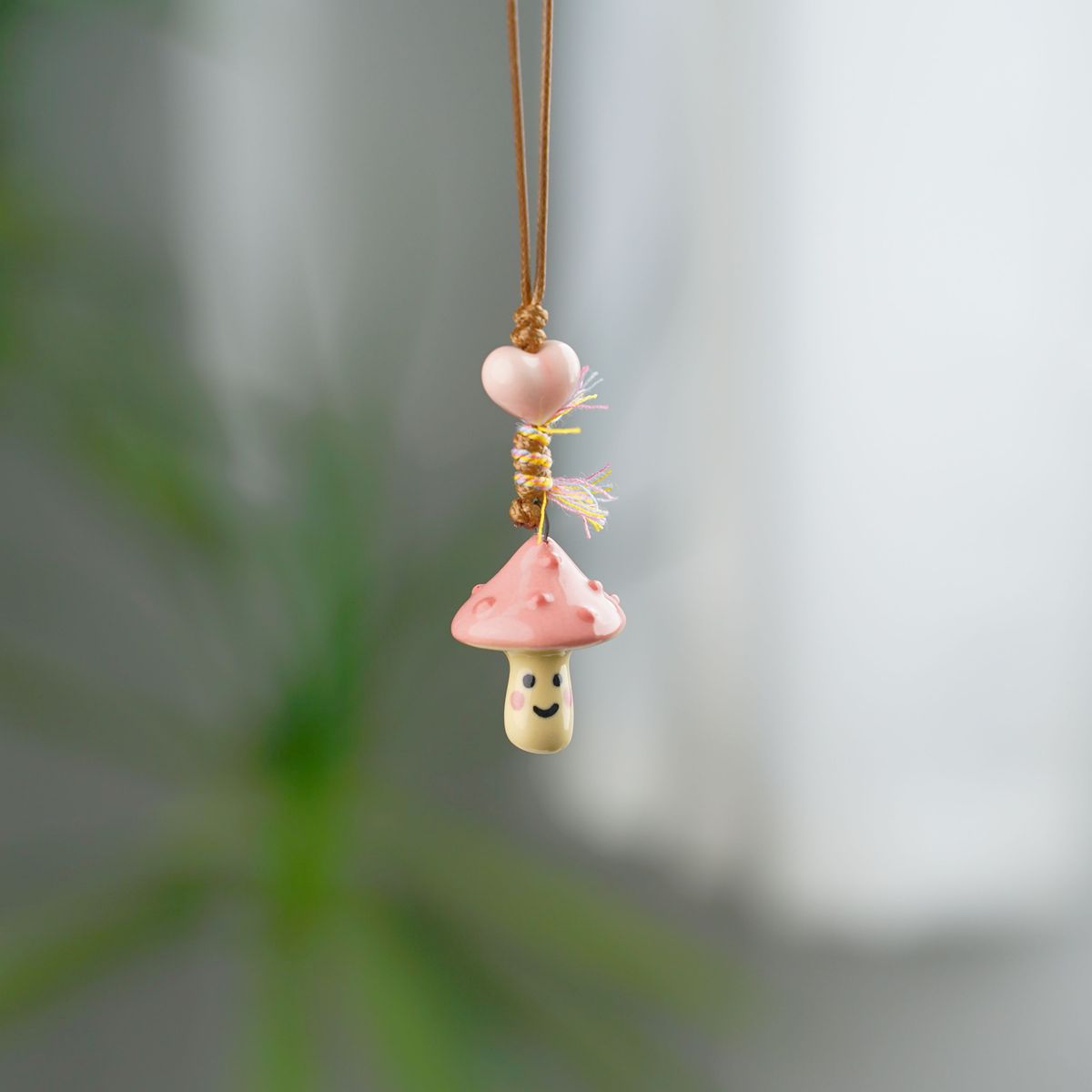 景德镇陶瓷小蘑菇小众流苏挂件手工编织精美钥匙扣创意挂件饰品