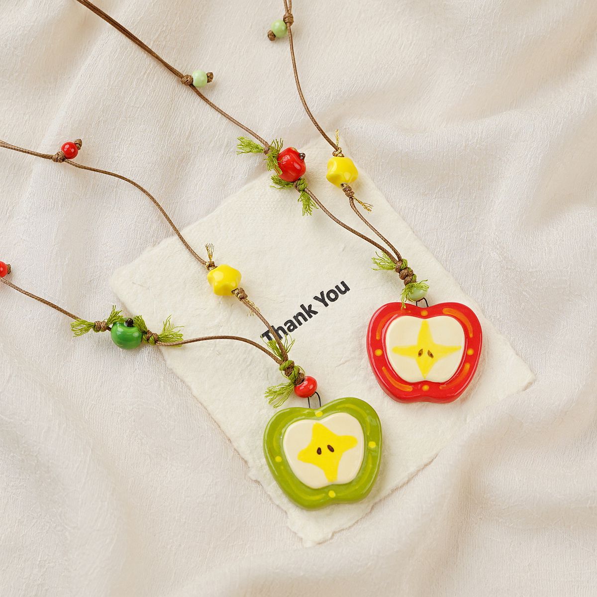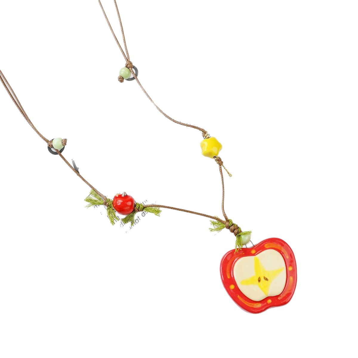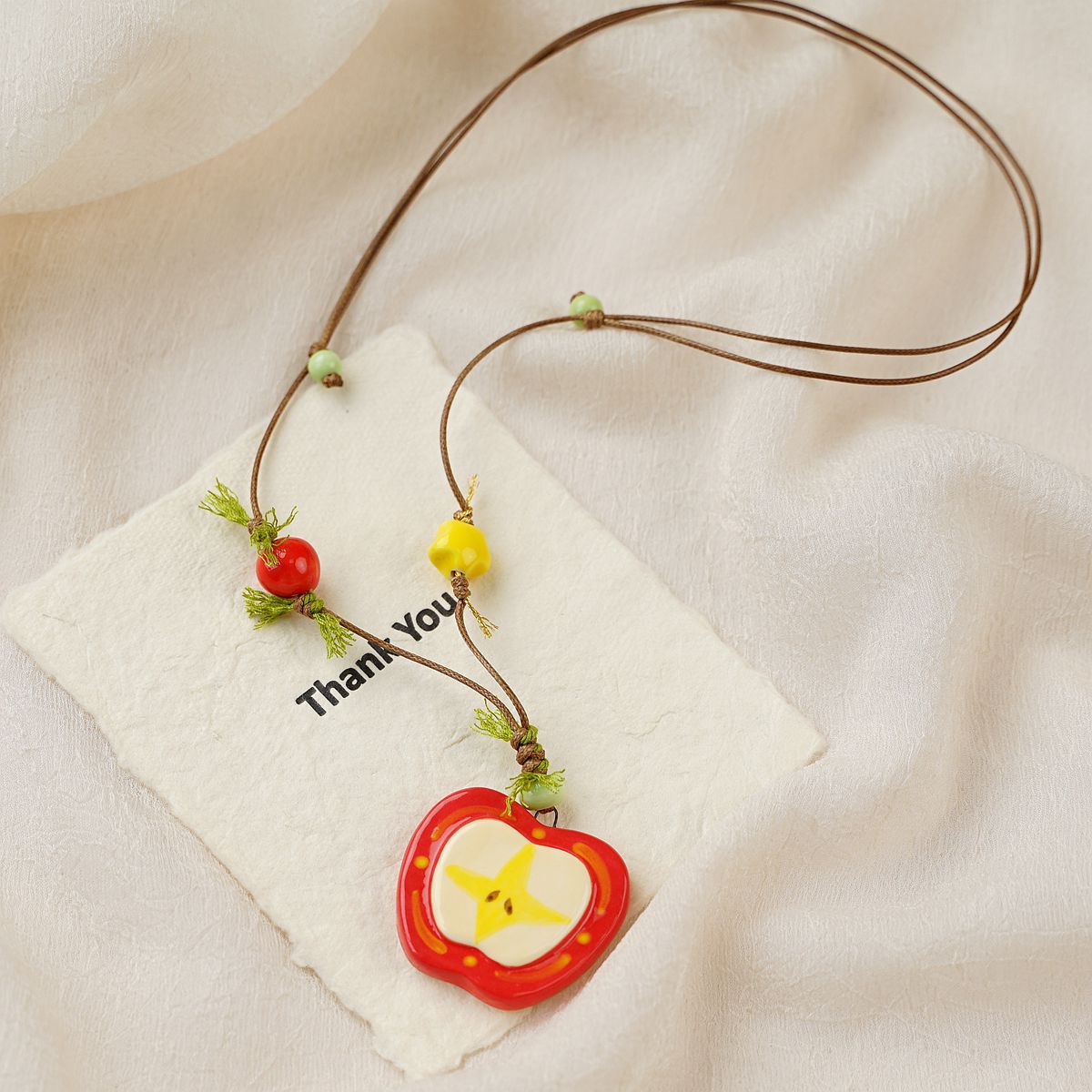 小红书直播清新苹果项链女小众度假风海边气质锁骨链毛衣链配饰