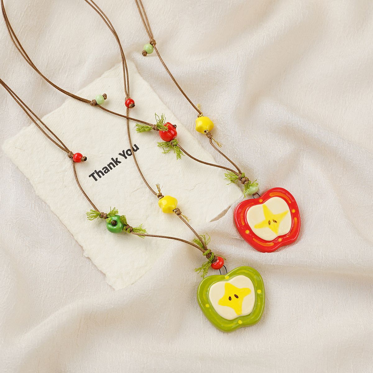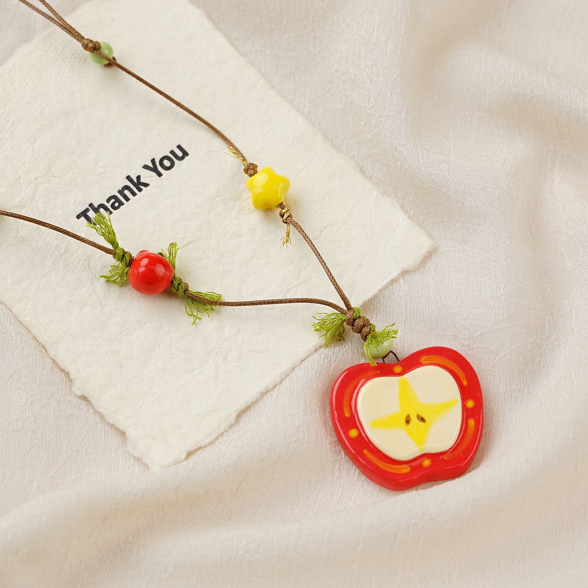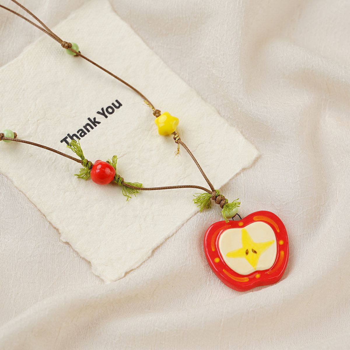 小红书直播清新苹果项链女小众度假风海边气质锁骨链毛衣链配饰
