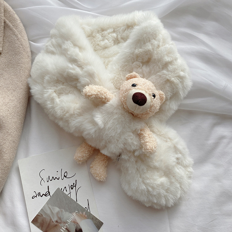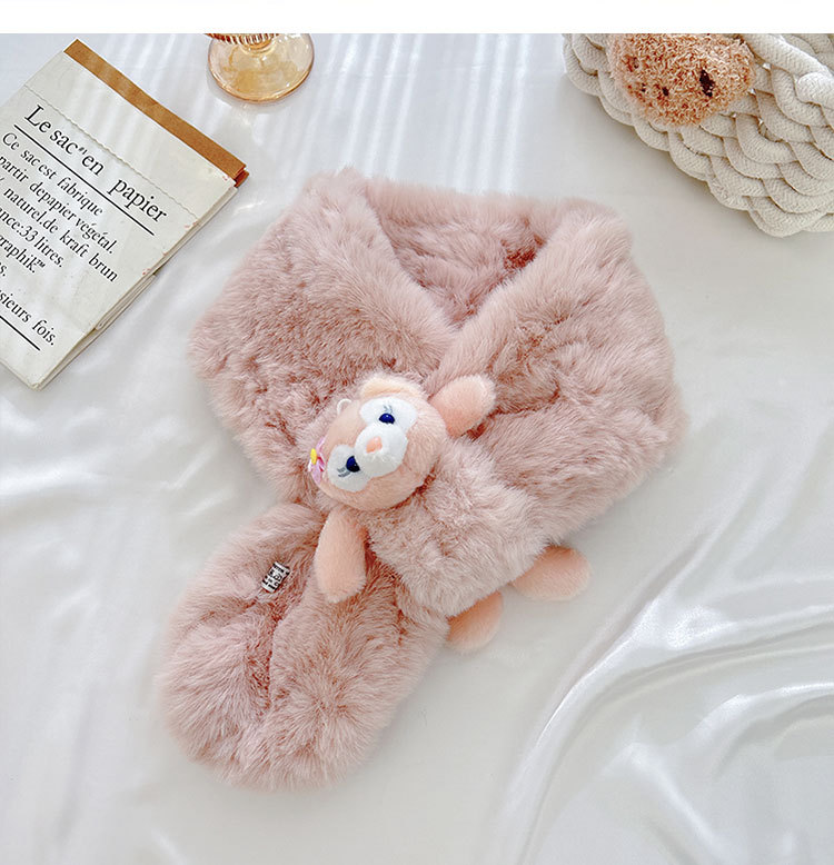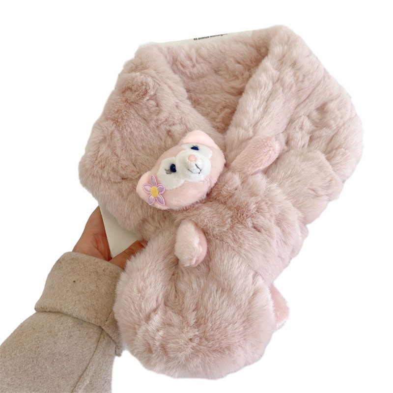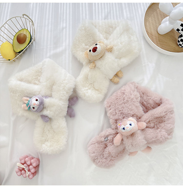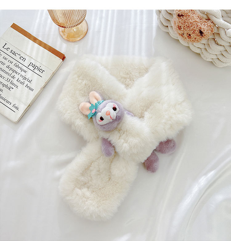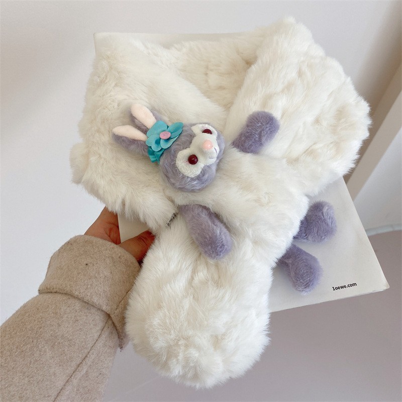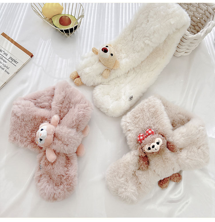 冬季新款仿獭兔毛毛围巾女冬季韩版百搭毛领围脖护颈卡通可爱少女