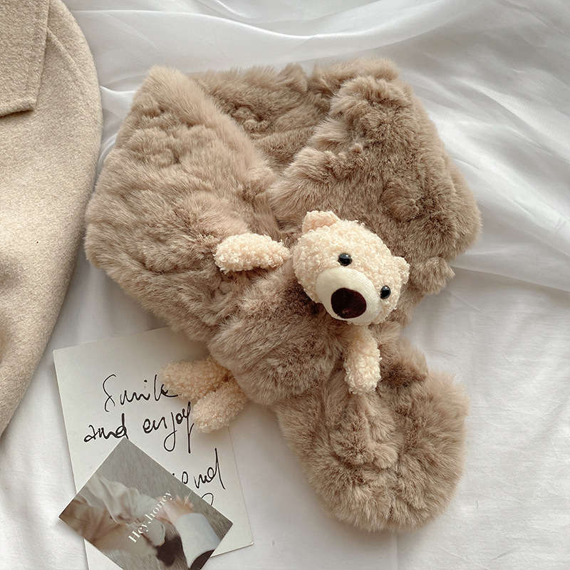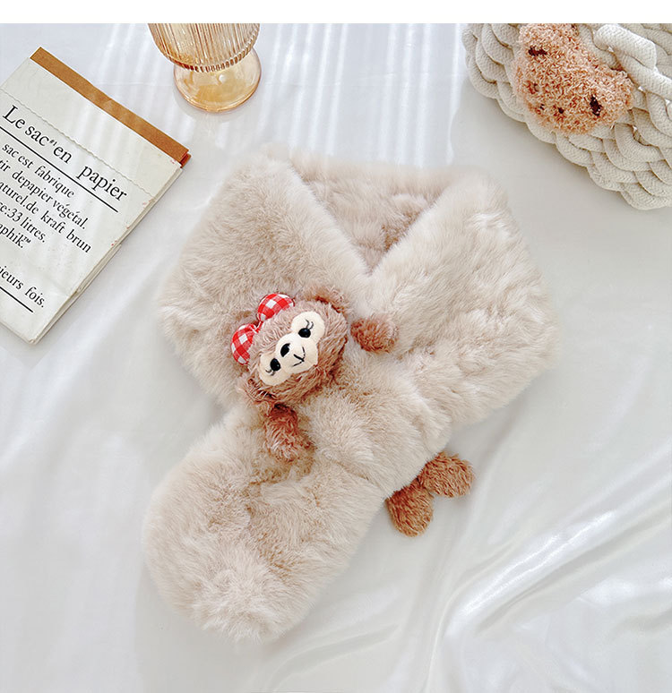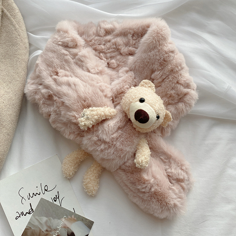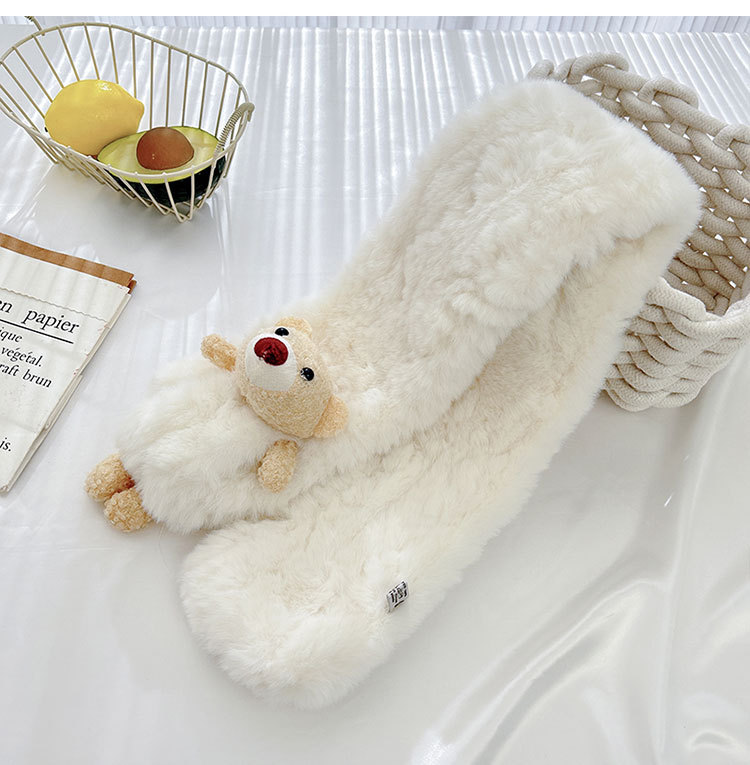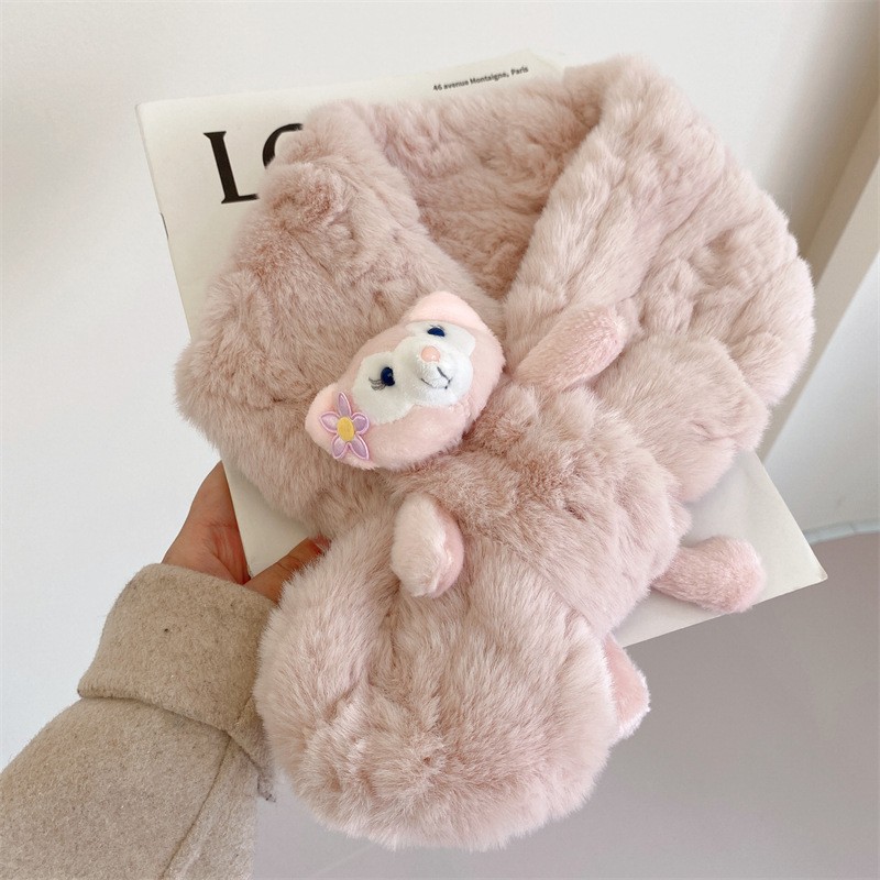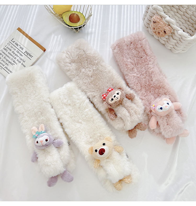 冬季新款仿獭兔毛毛围巾女冬季韩版百搭毛领围脖护颈卡通可爱少女