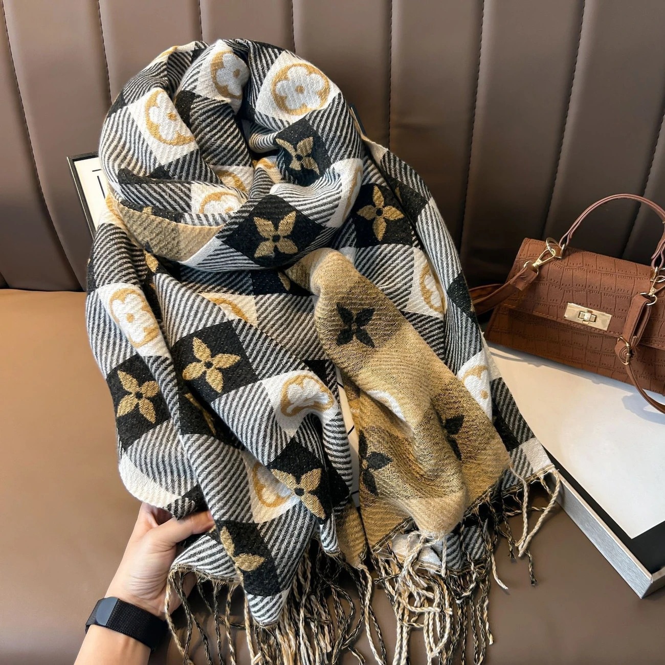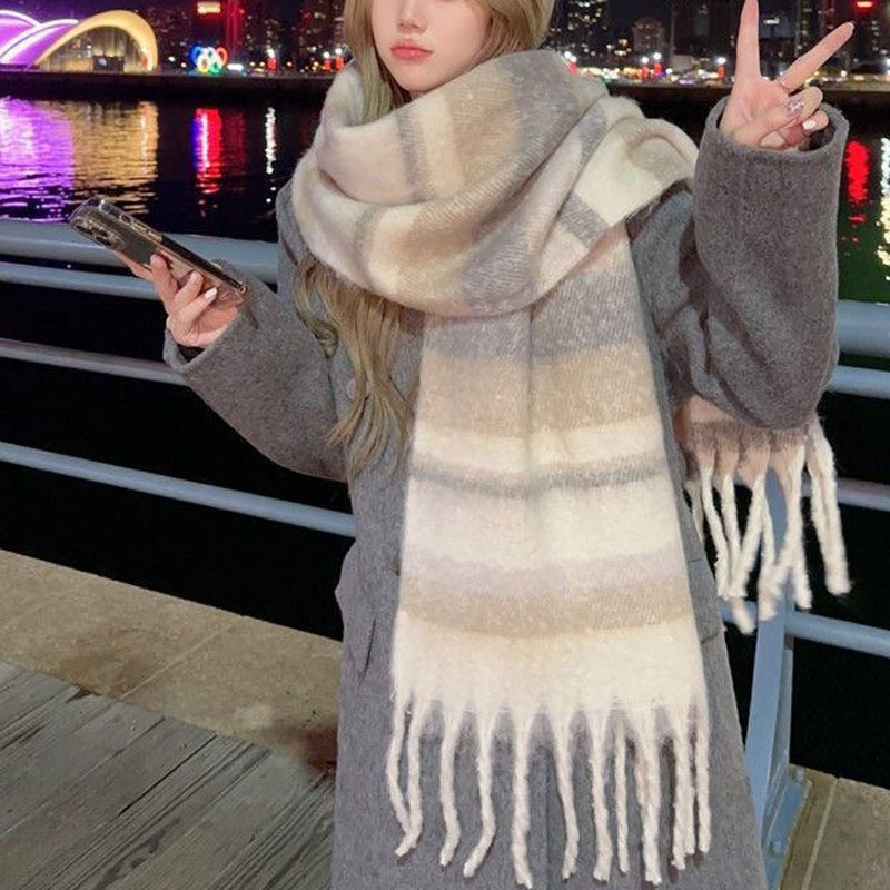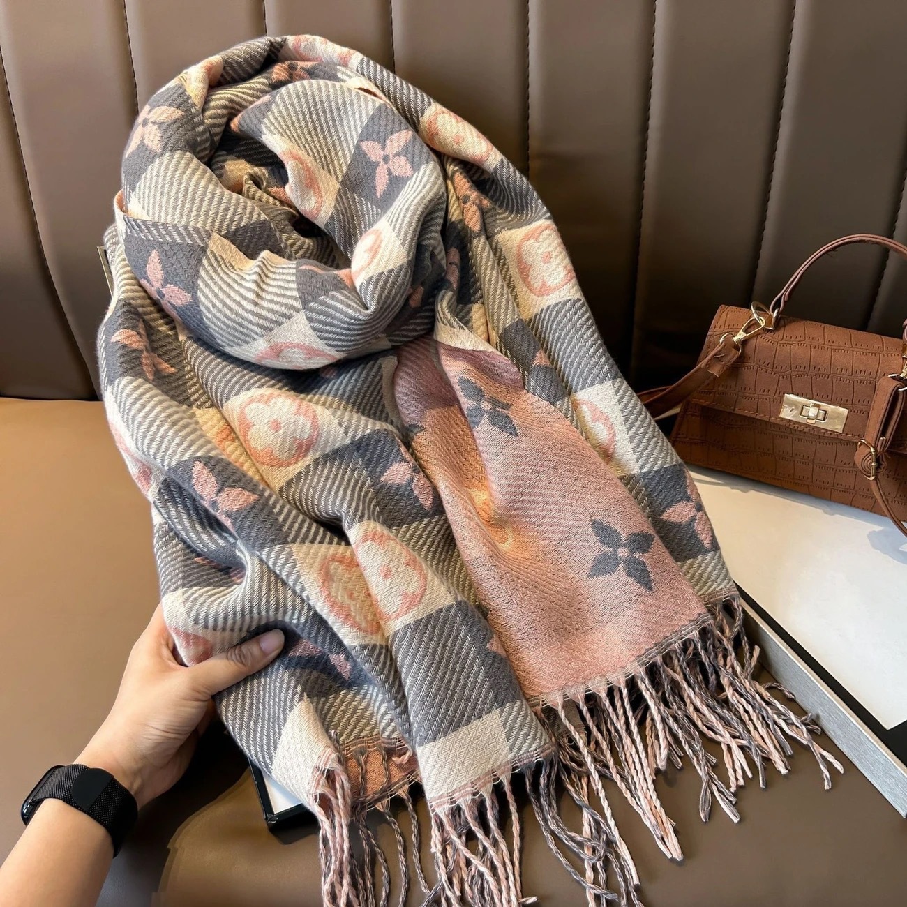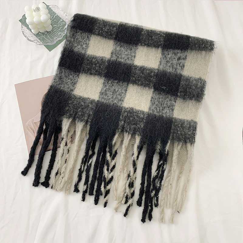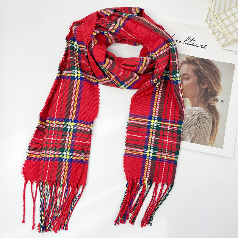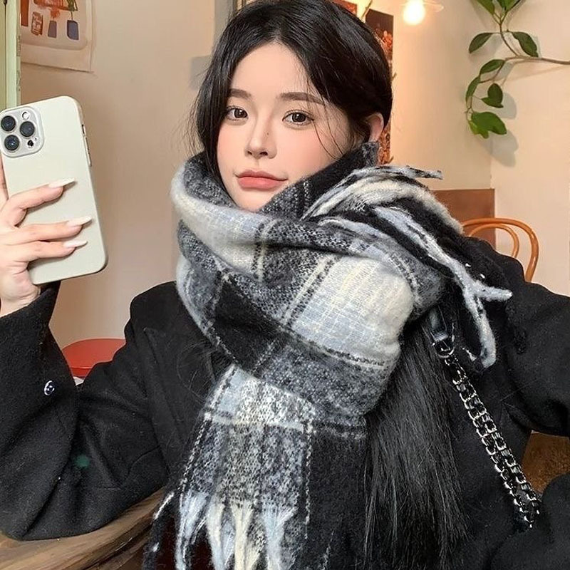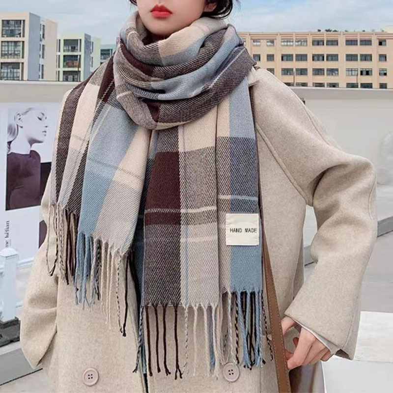 新款格子围巾女冬季高级感秋冬百搭仿羊绒围巾学生保暖披肩围脖