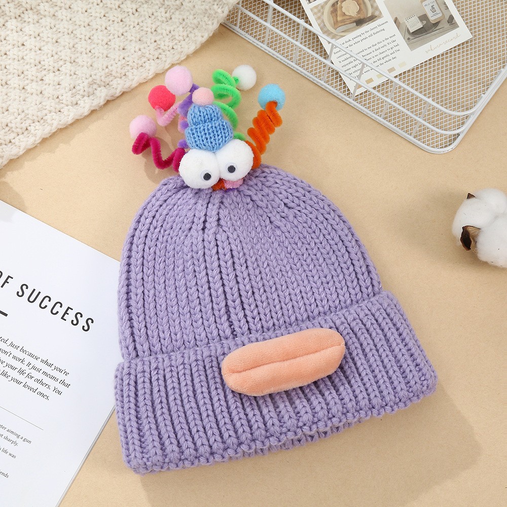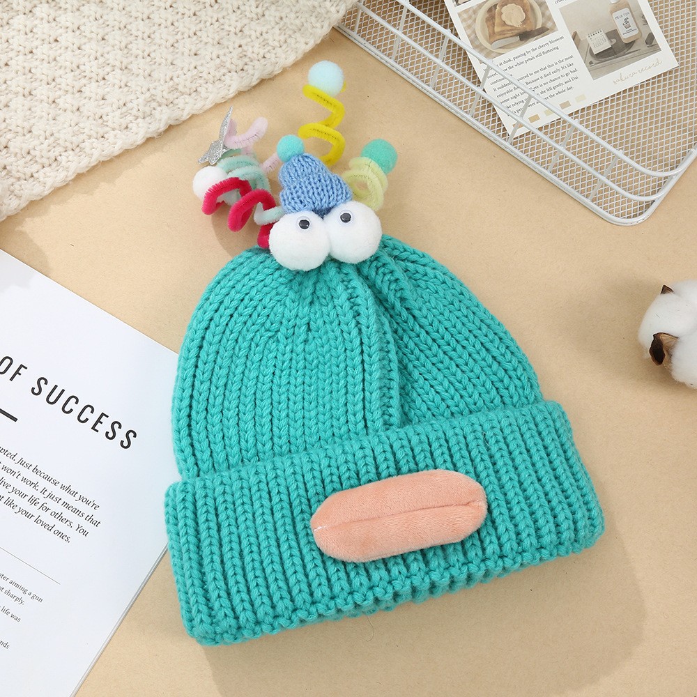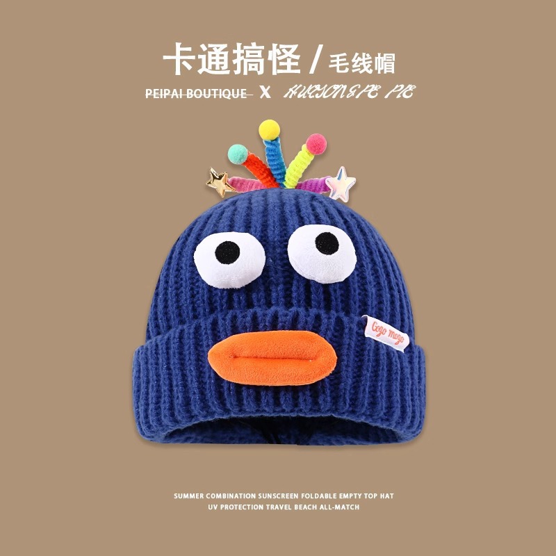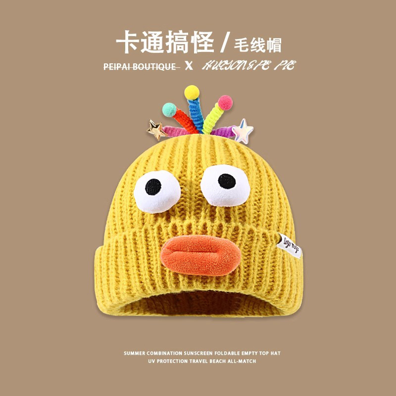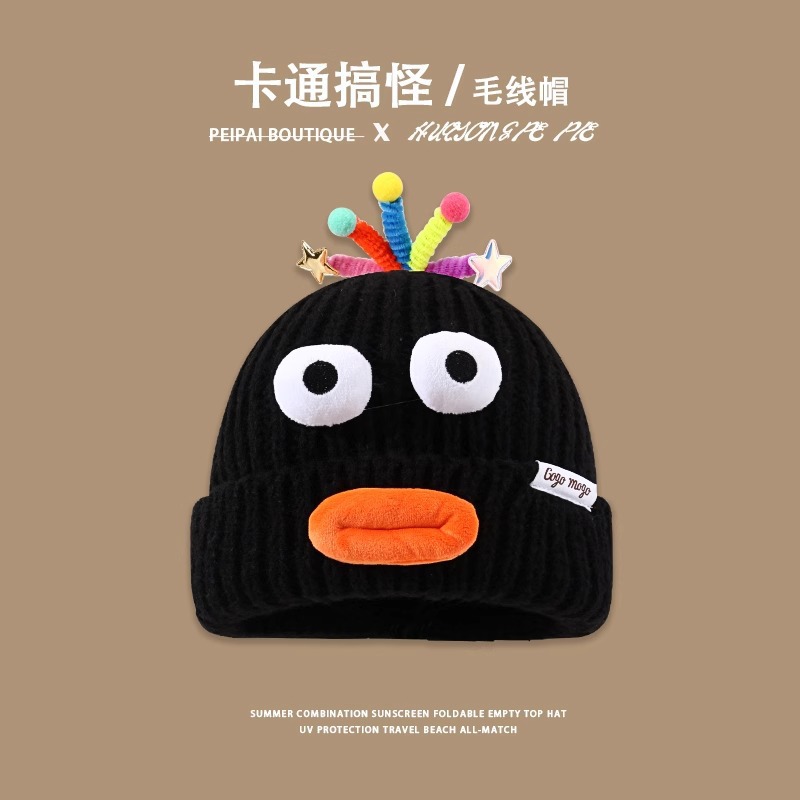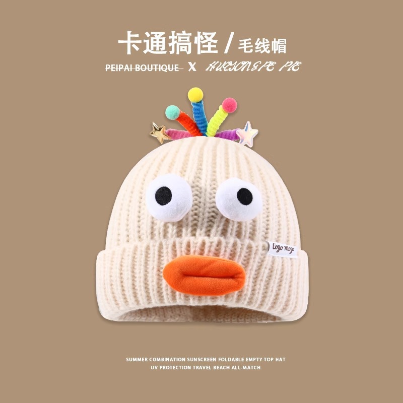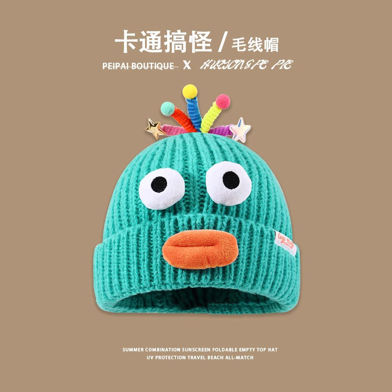 帽子女搞怪卡通香肠嘴毛线帽针织护耳帽冬季保暖可爱大头围萌搞怪