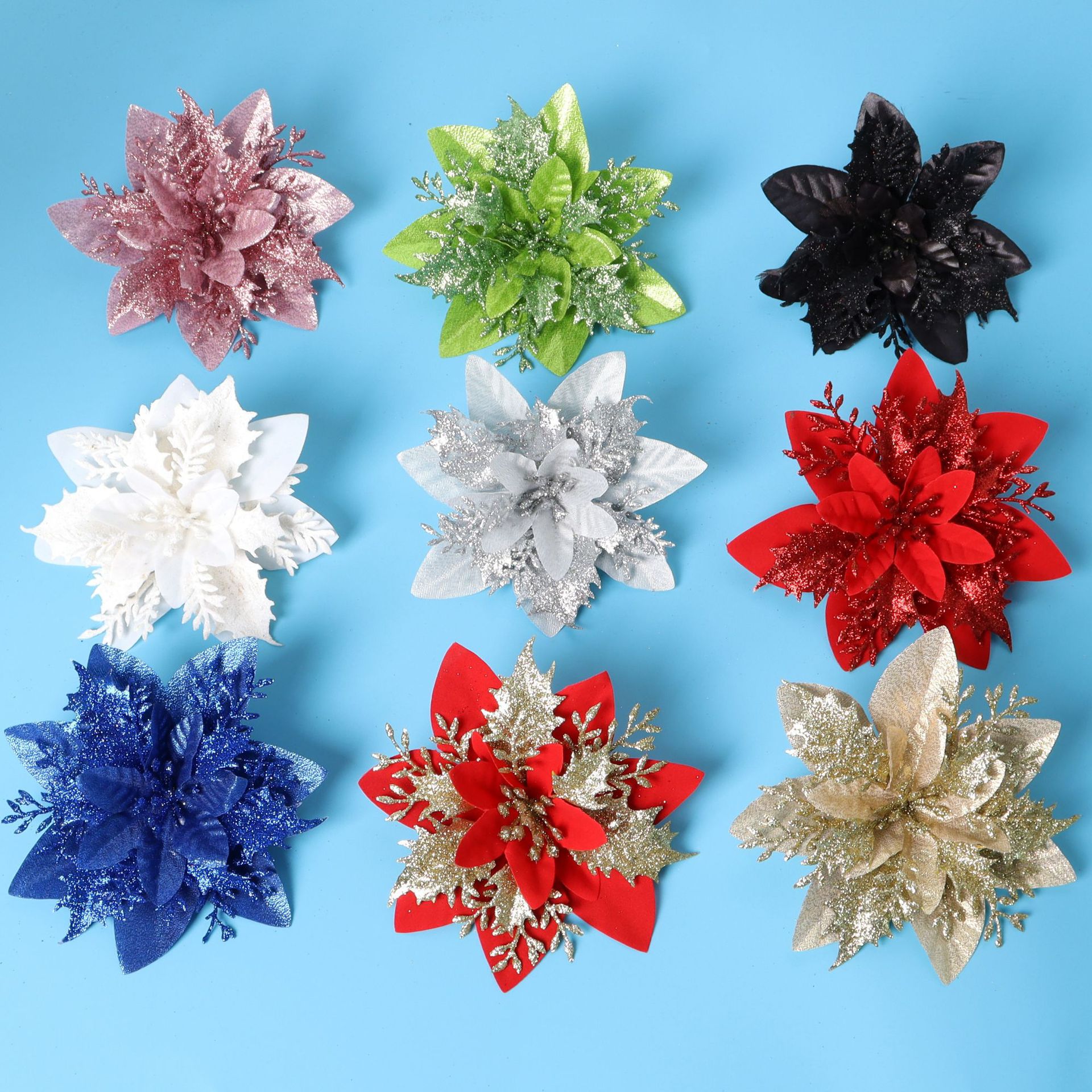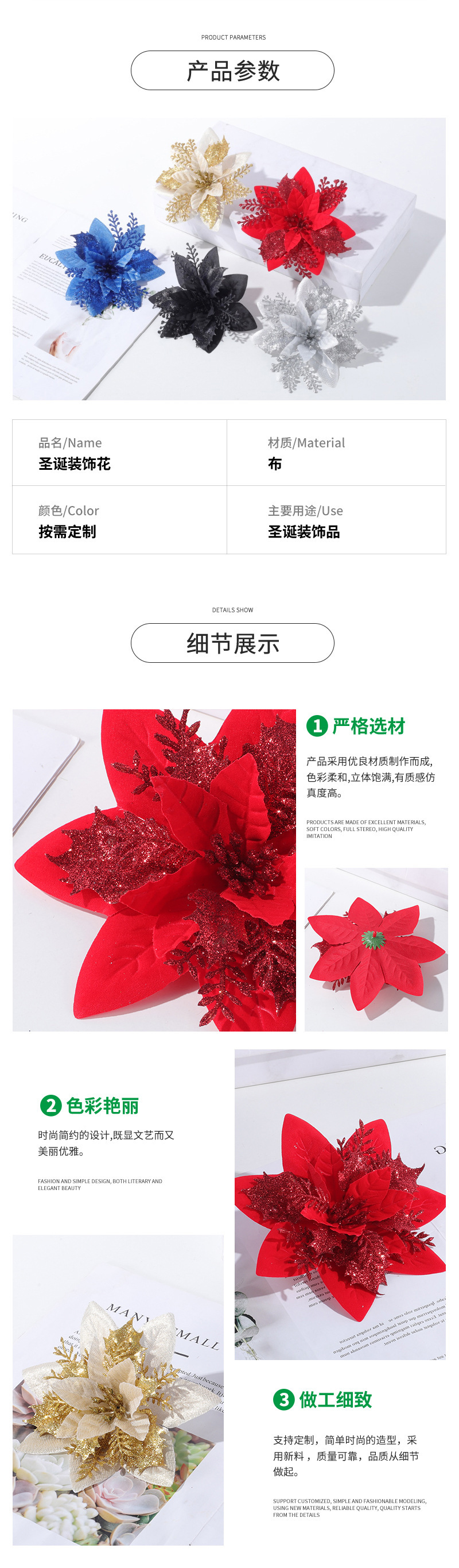 圣诞花圣诞树配件圣诞节装饰圣诞花朵立体仿真花DIY装饰品厂家直i