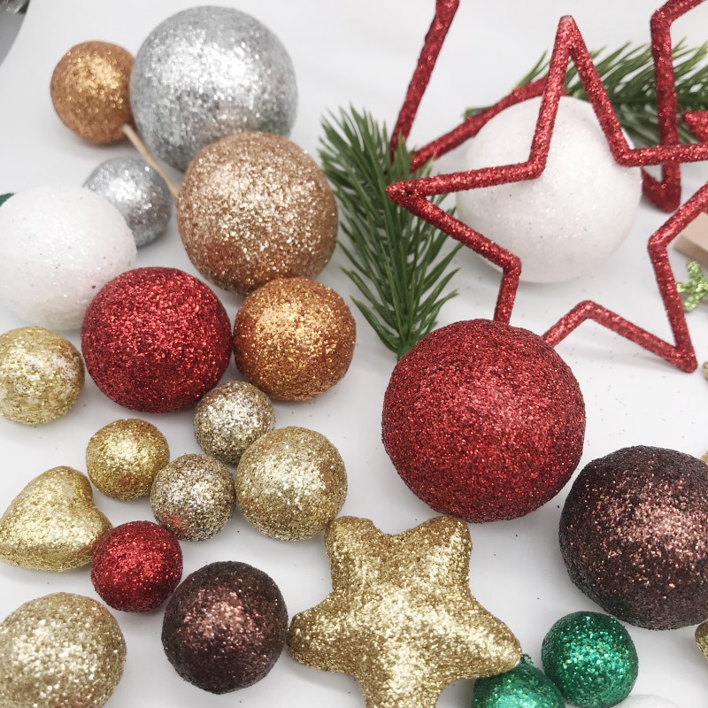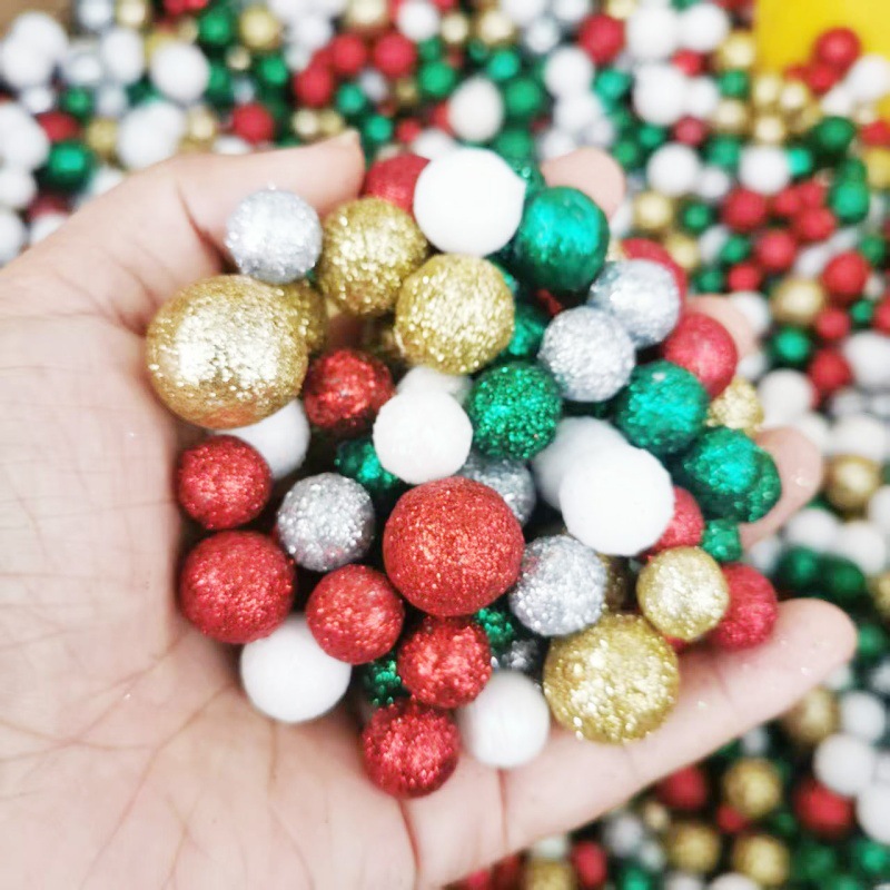 亚马逊热销圣诞节闪粉立体泡沫球泡沫2.3cm3.5cm4cmDIY装饰闪粉球
