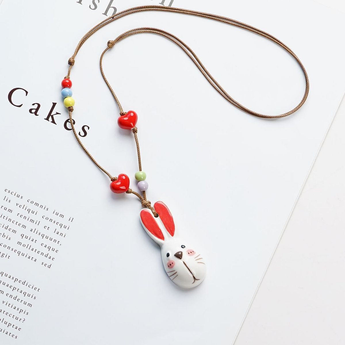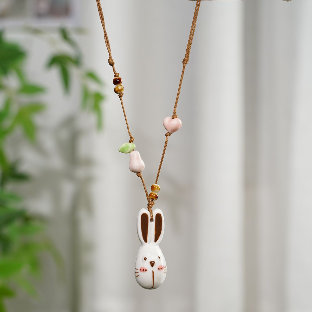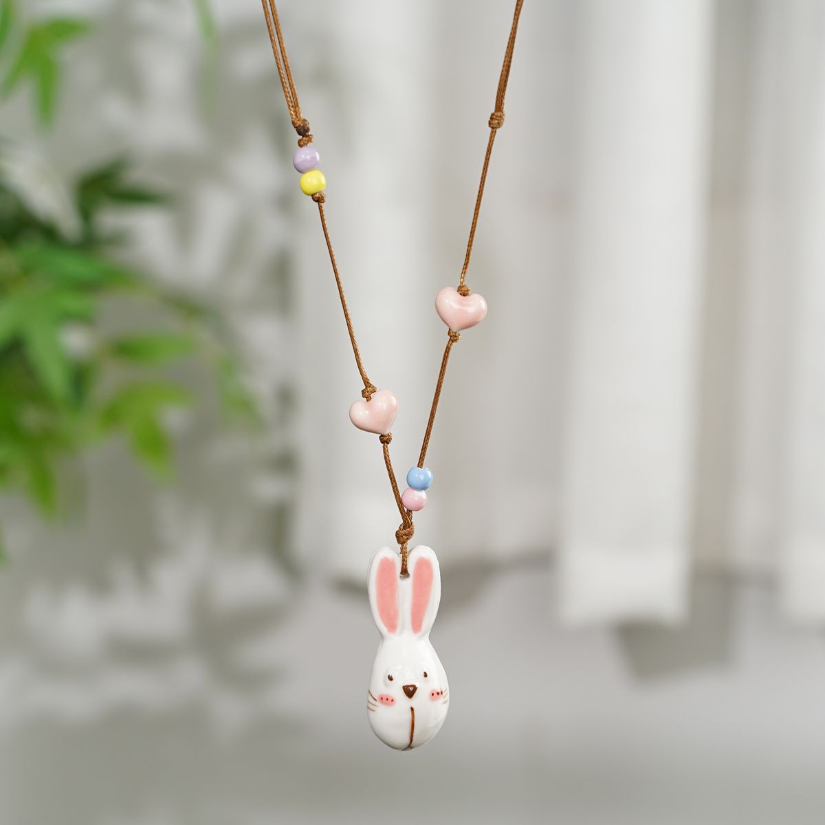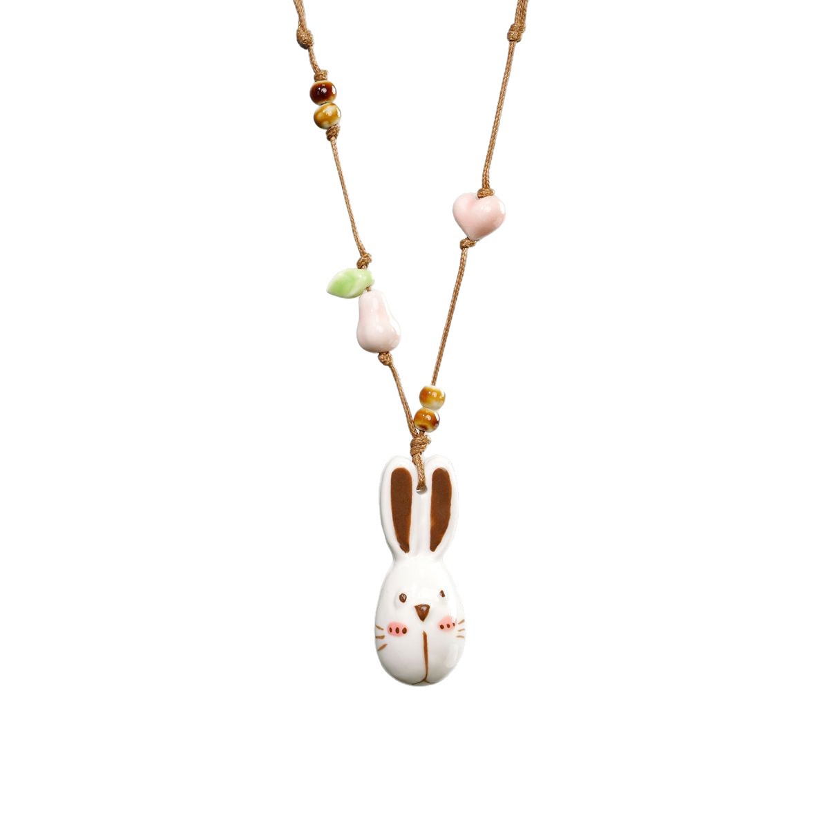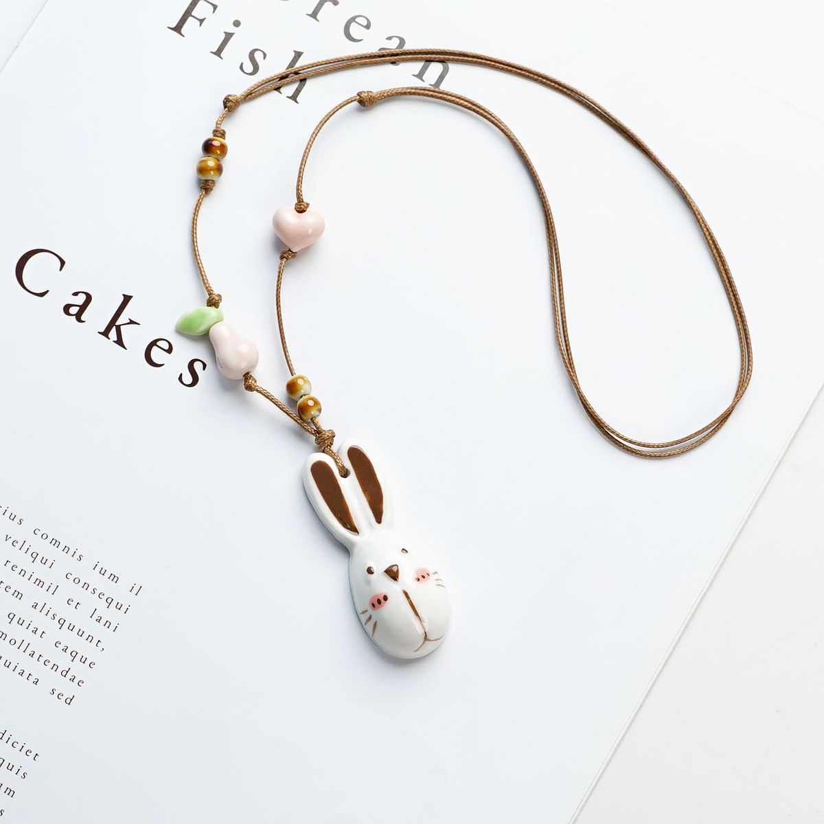景德镇陶瓷饰品可爱卡通兔子项链毛衣链长款学生女礼物动物货源
