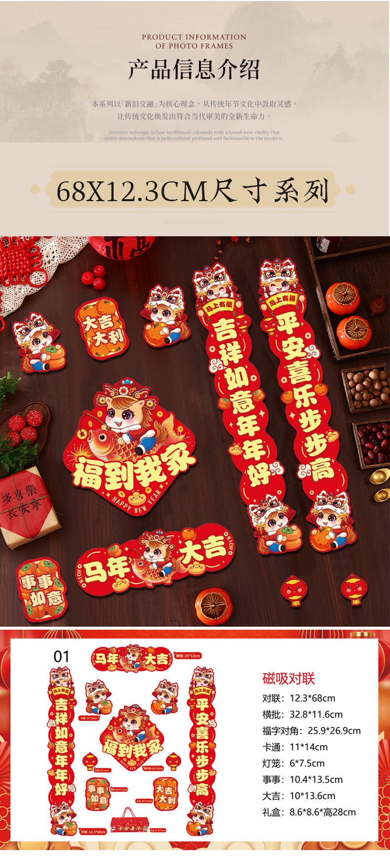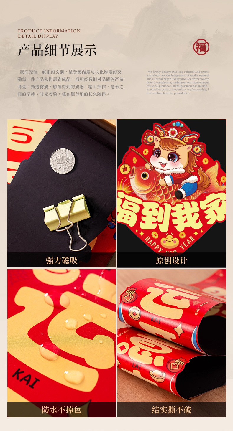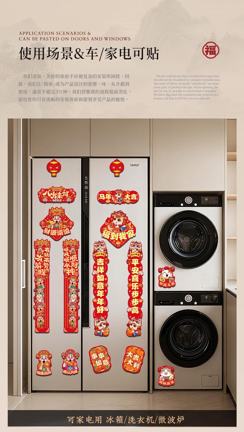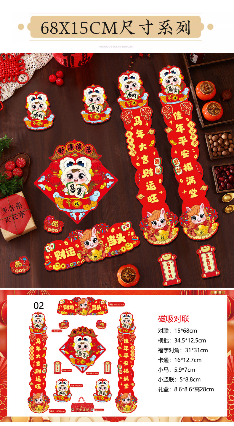 磁吸2026对联春联磁铁家用新年马年新款福字过年春节入户门贴装饰