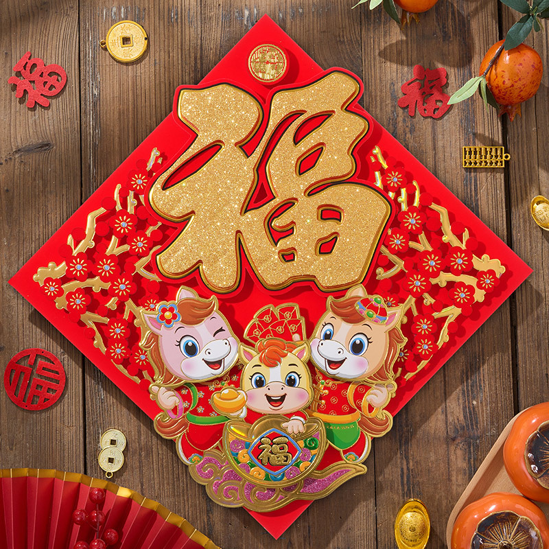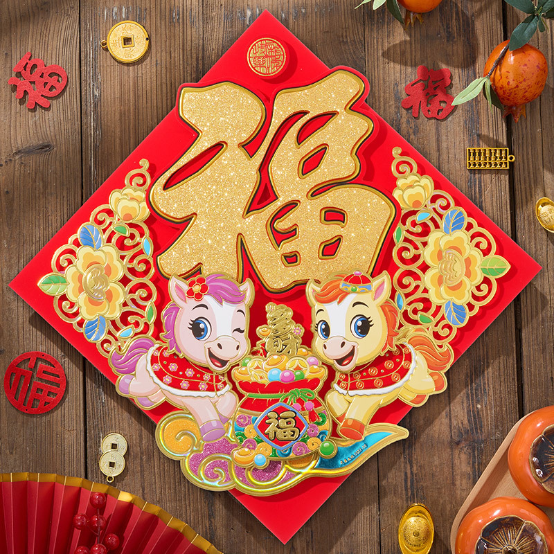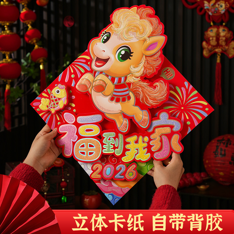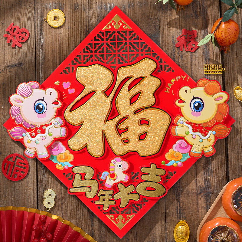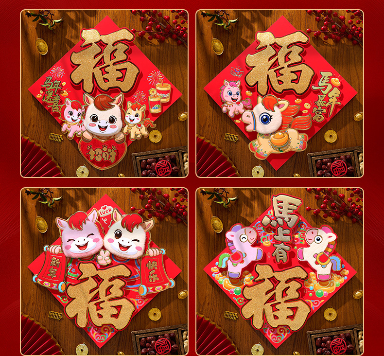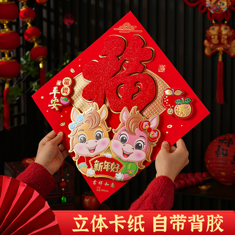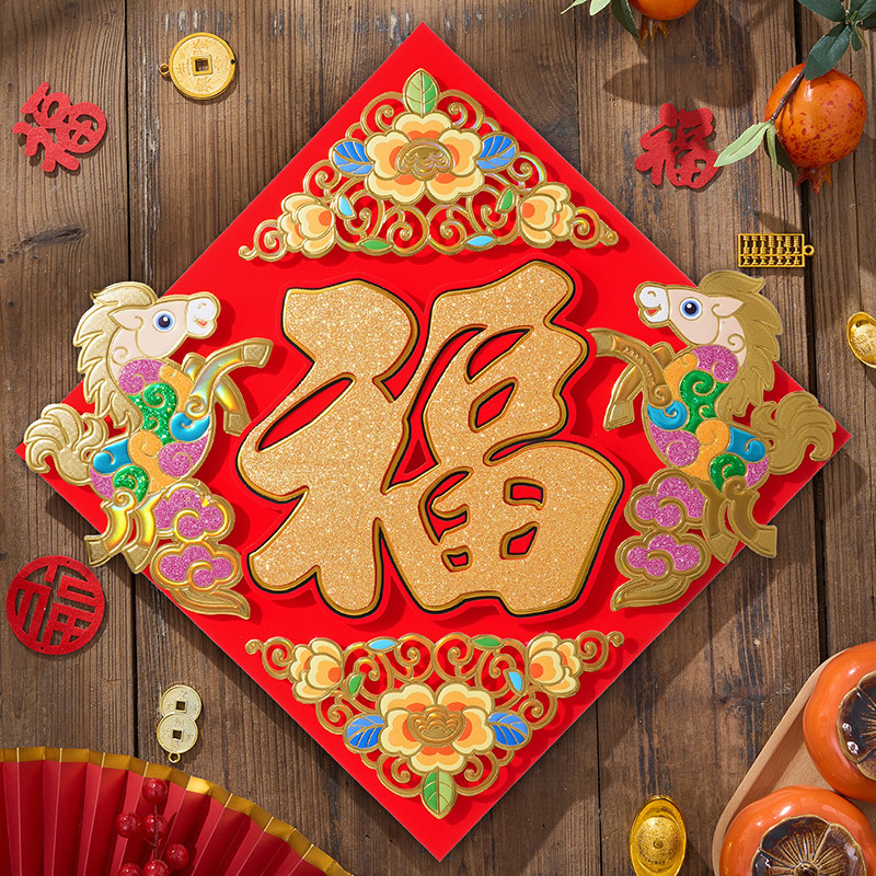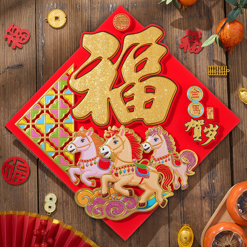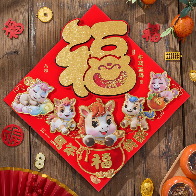 过年立体福字年画2026马年装饰春节福字贴纸立体门贴新款新年大门