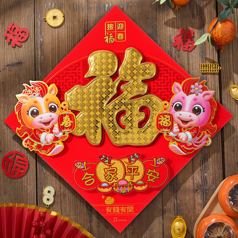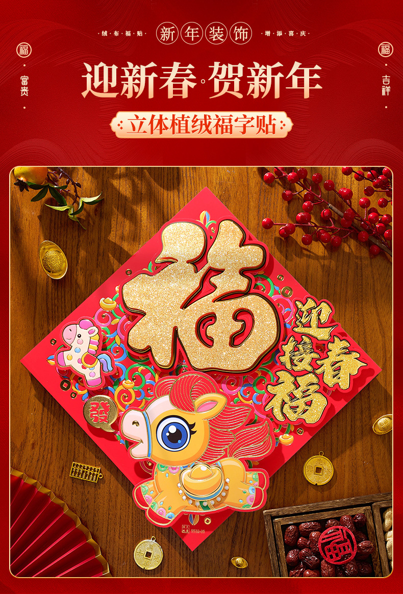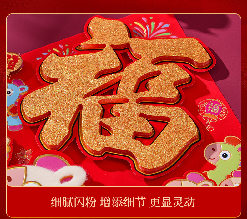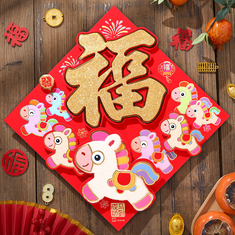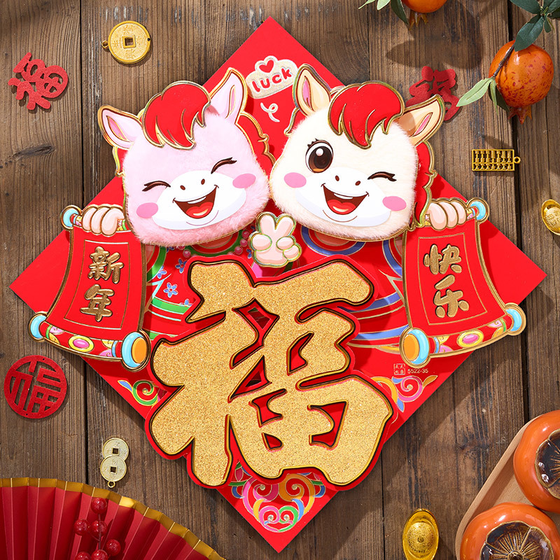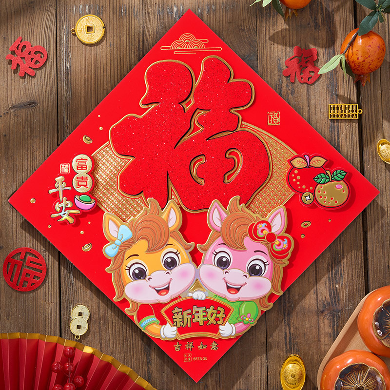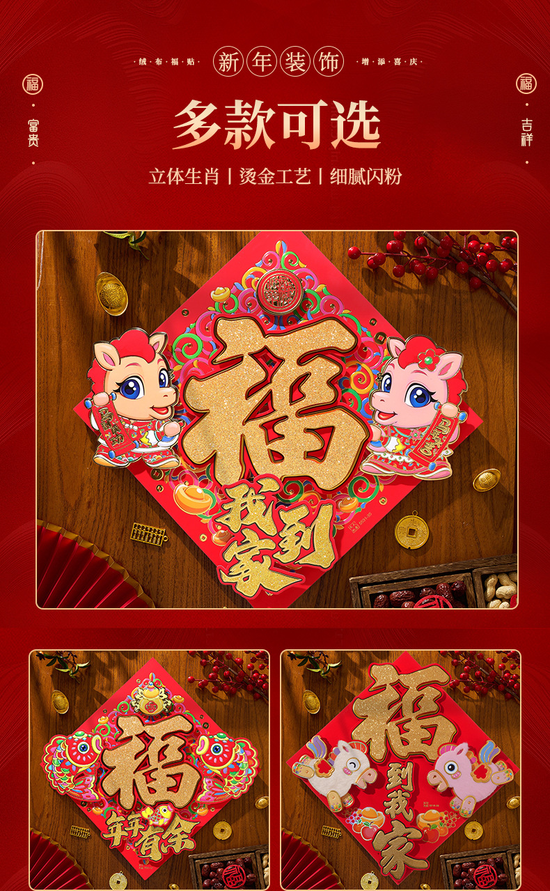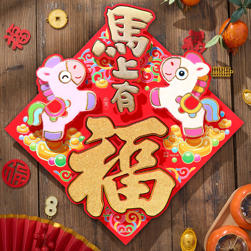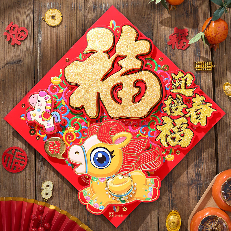 过年立体福字年画2026马年装饰春节福字贴纸立体门贴新款新年大门
