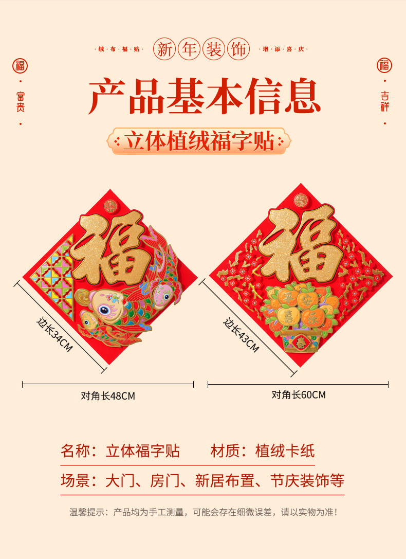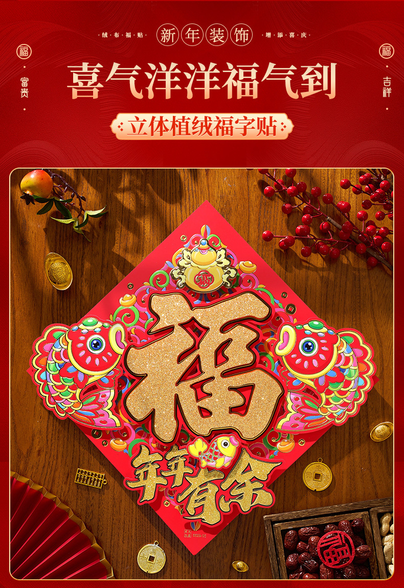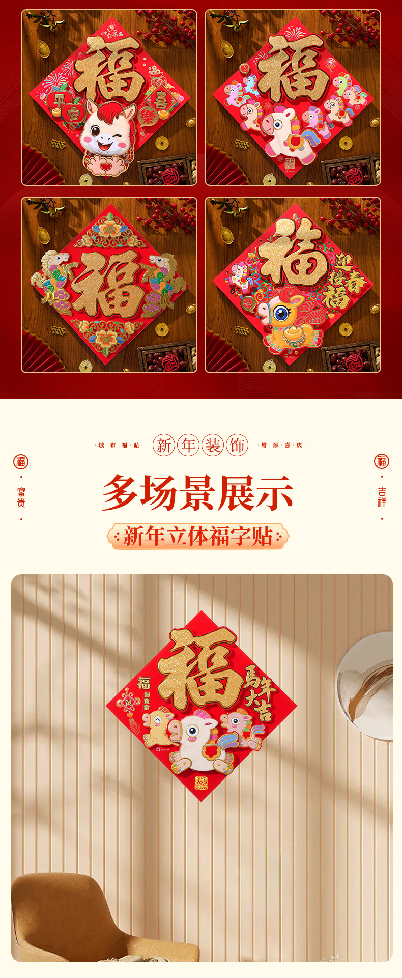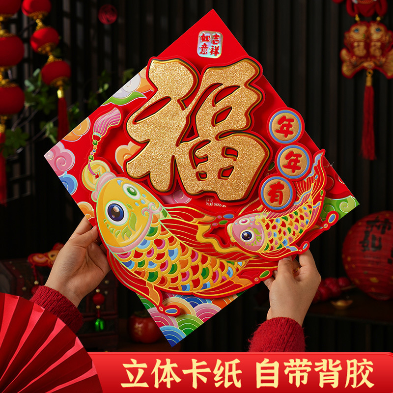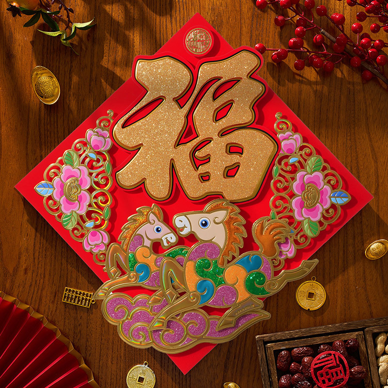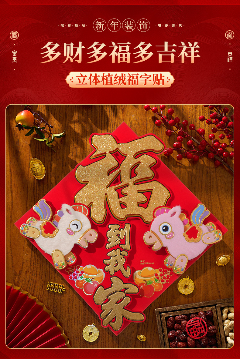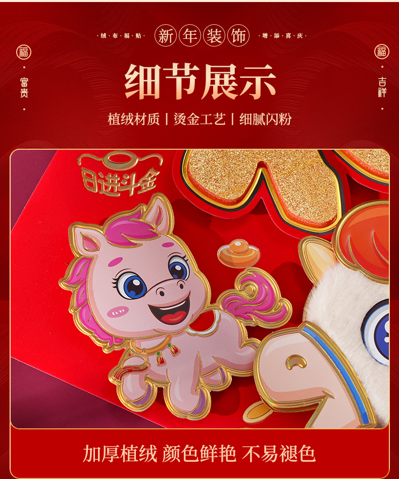过年立体福字年画2026马年装饰春节福字贴纸立体门贴新款新年大门