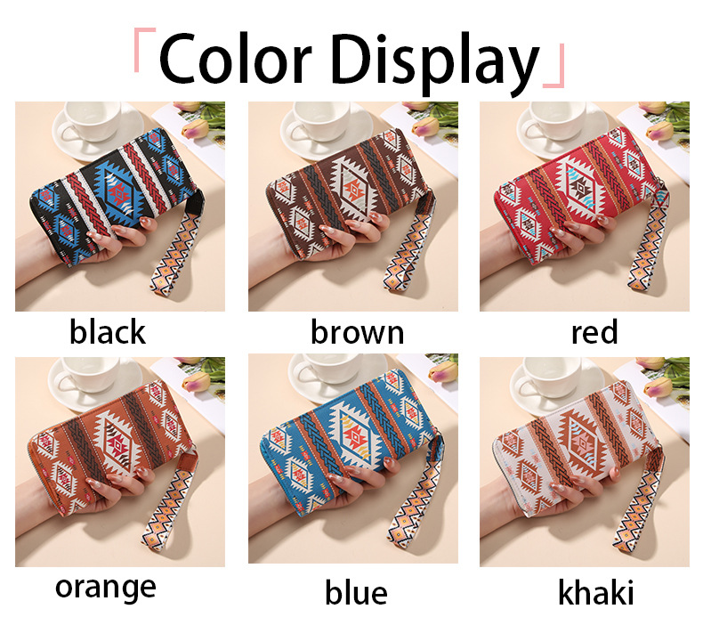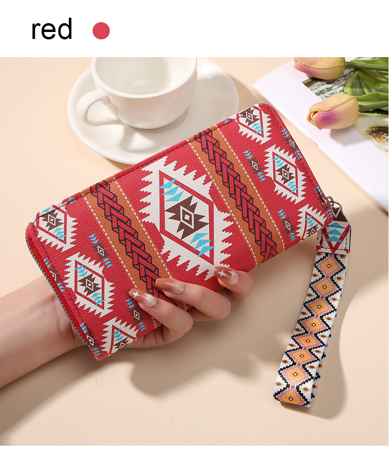 厂家直销密文代发跨境热销波西米亚风印花时尚复古的钱包手腕包