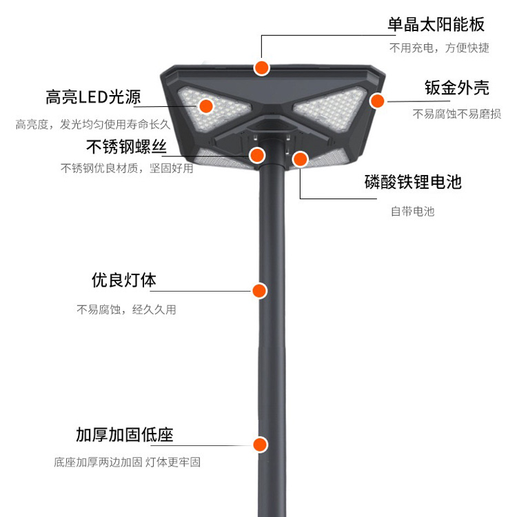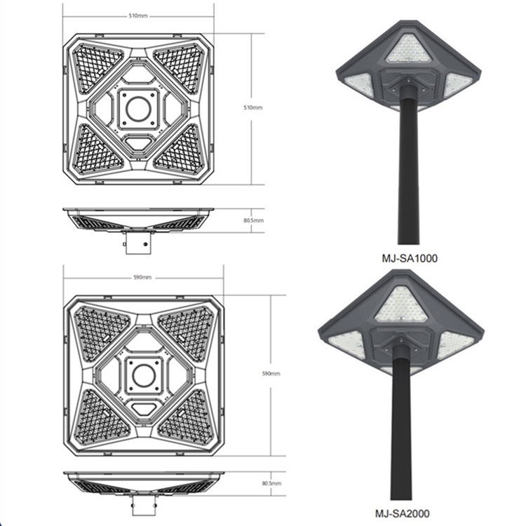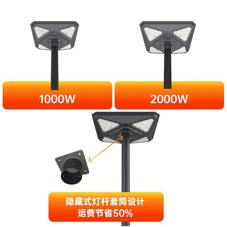 LED太阳能路灯头 1000/2000W光控遥控道路灯庭院小区灯户外防水