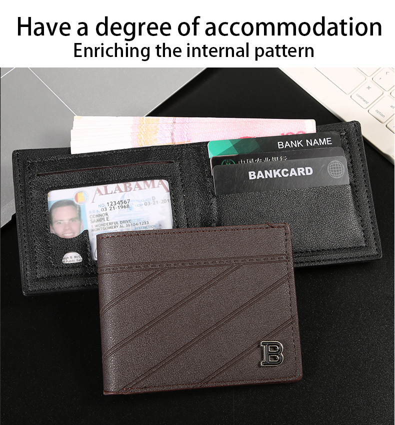 跨境亚马逊复古男士钱包短款 多卡位卡包大容量皮革零钱包硬币包