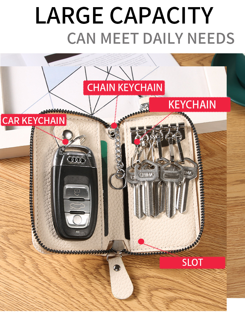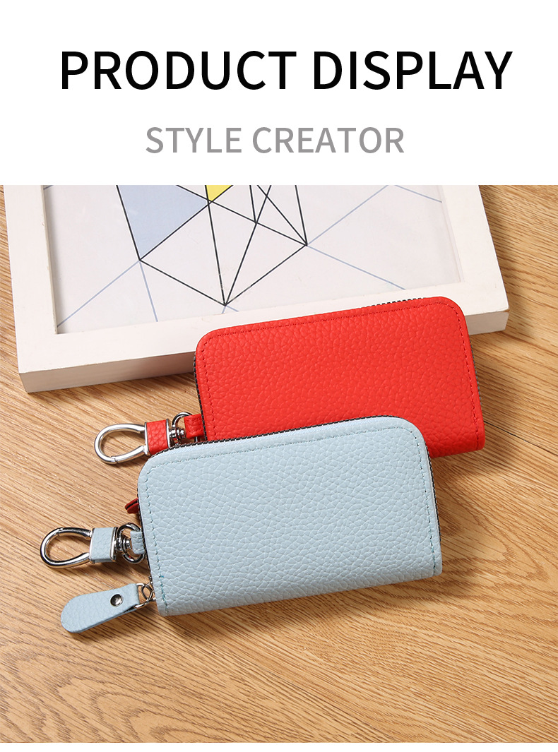 欧美热销PU皮多功能时尚简约女士钥匙包 便携防盗拉链家用钥匙包