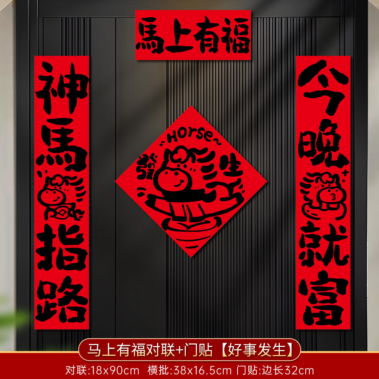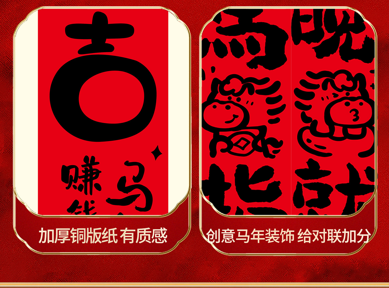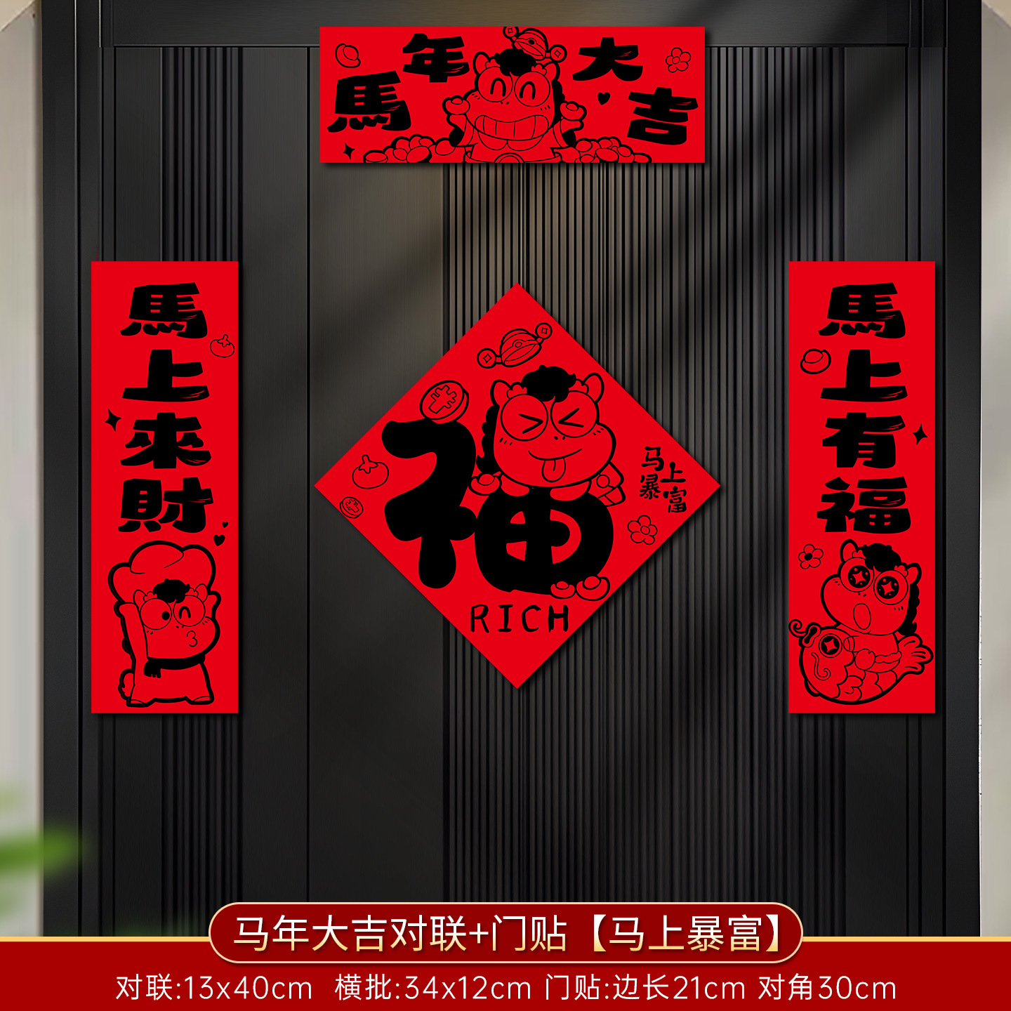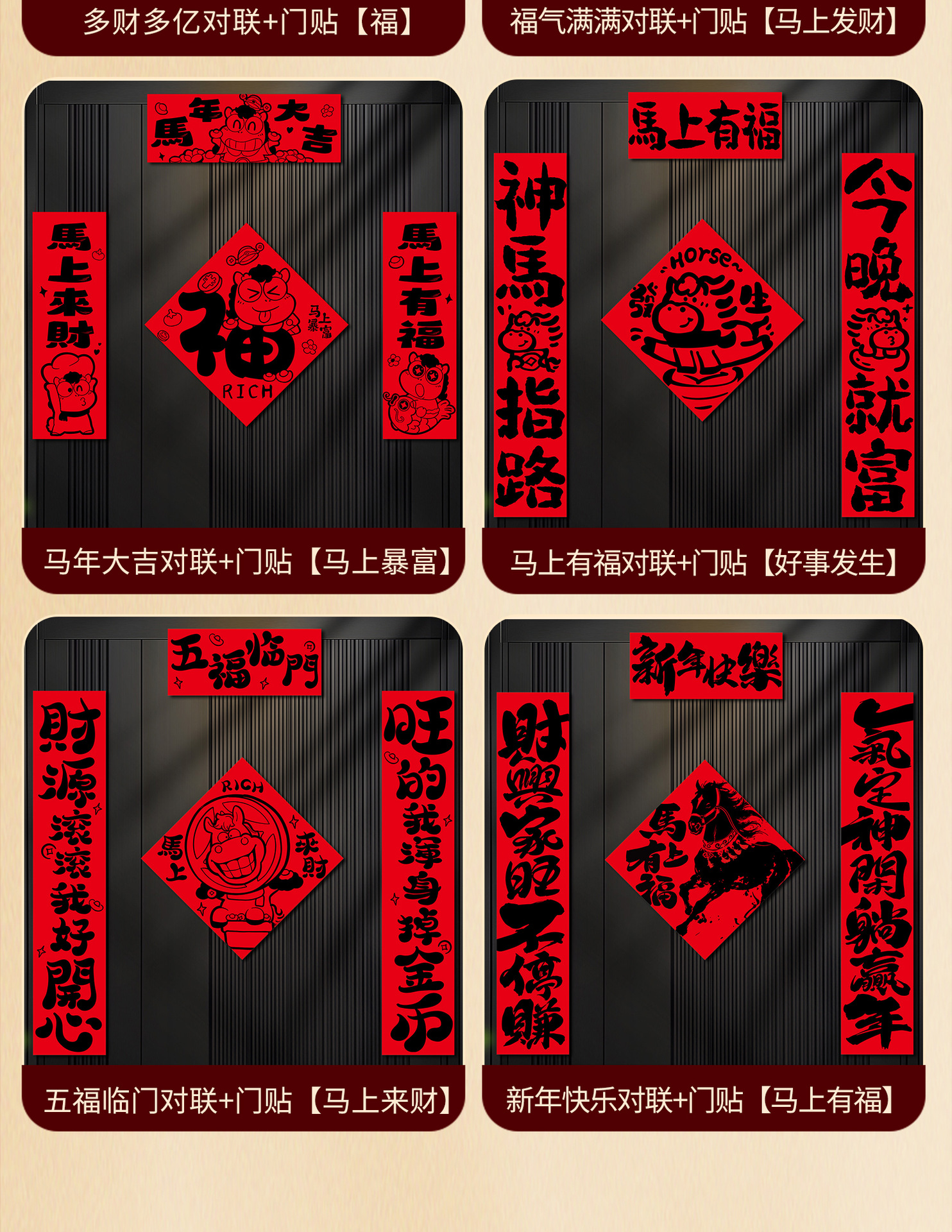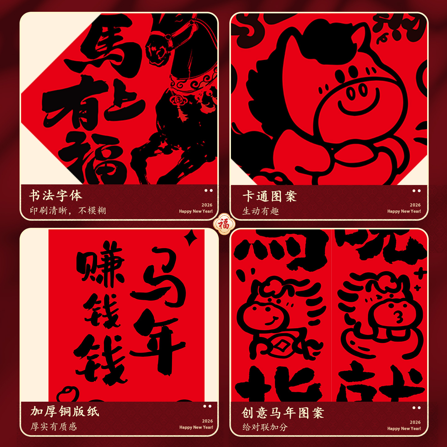 马年对联2026新款过年福字门贴春节布置新年装饰品铜版纸春联批货