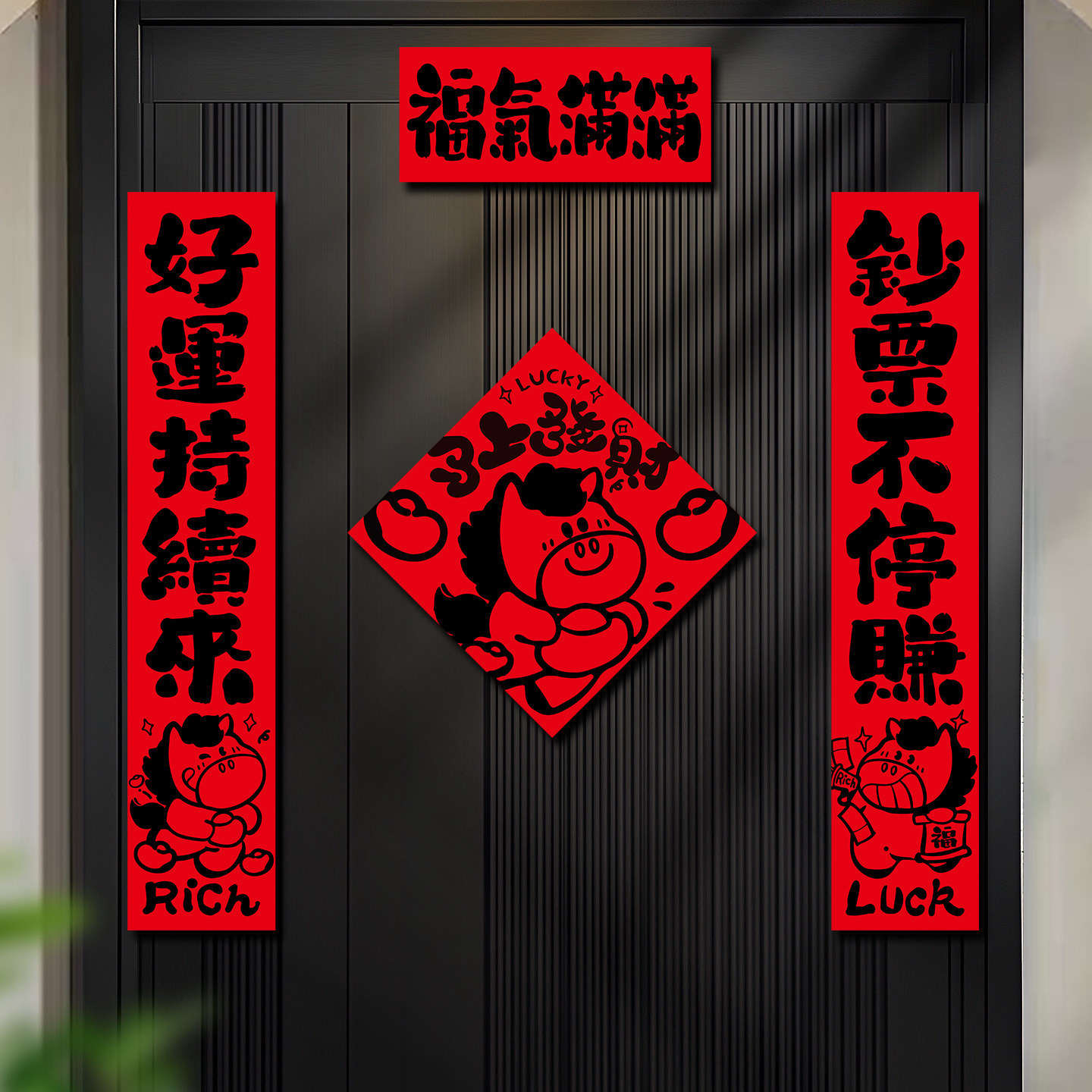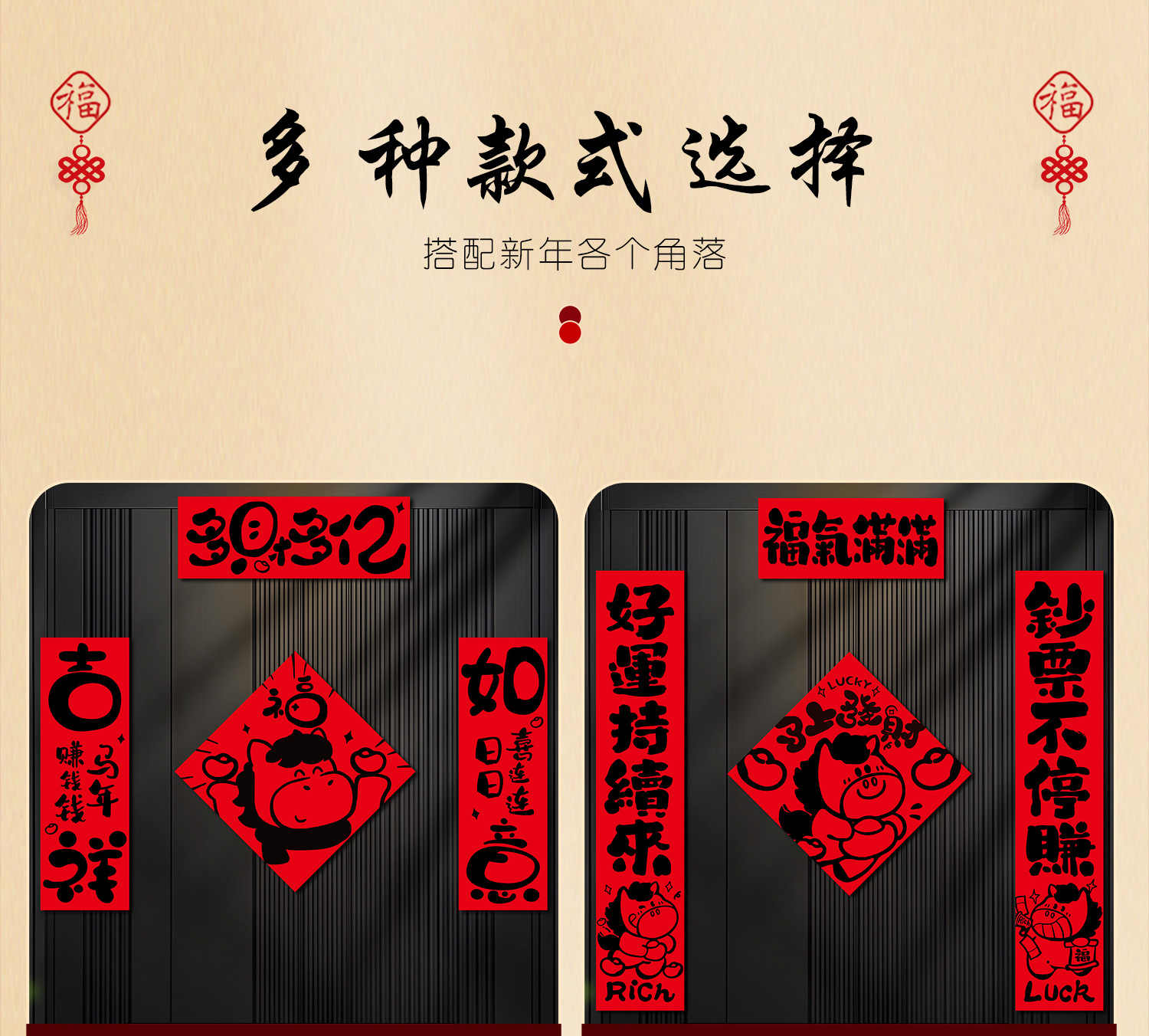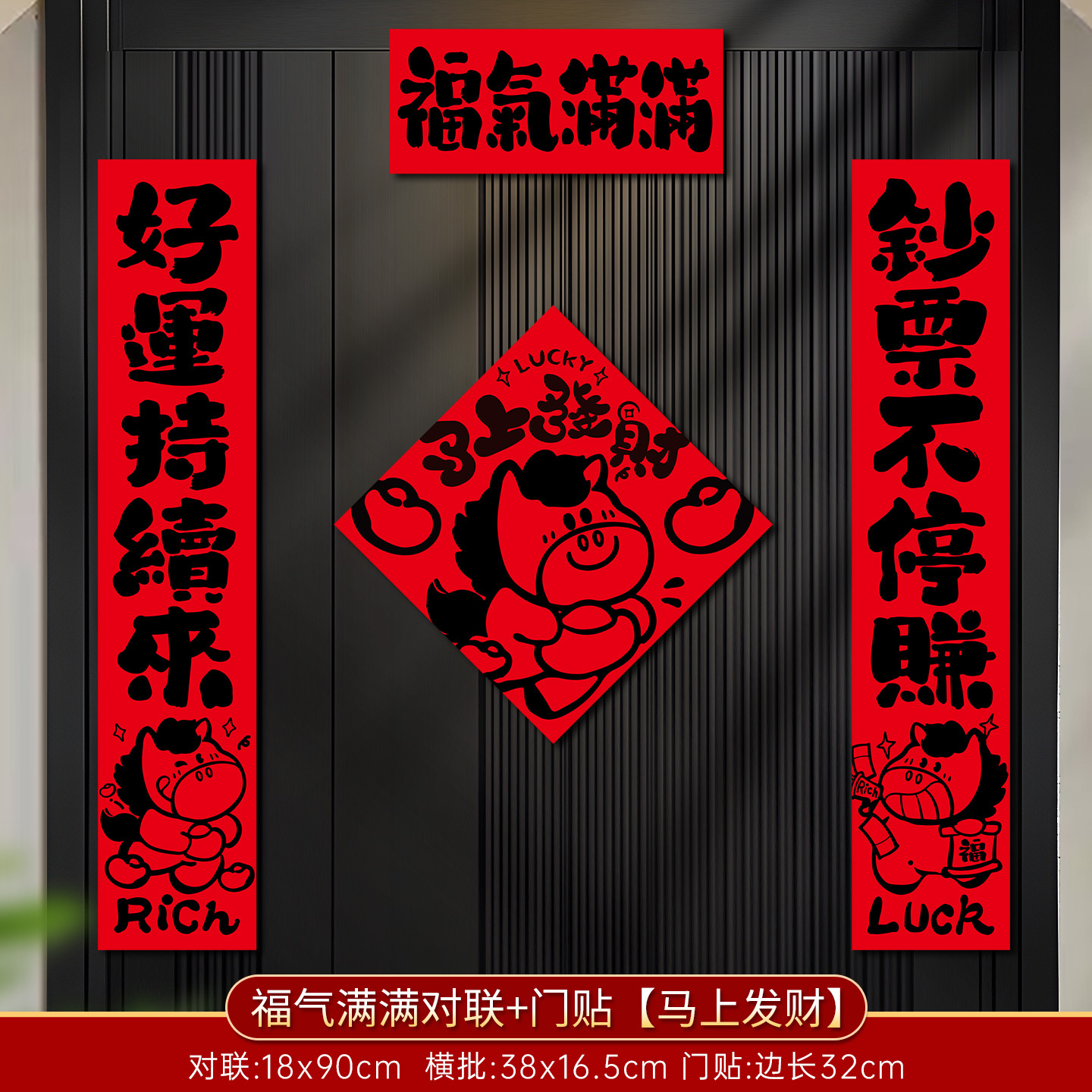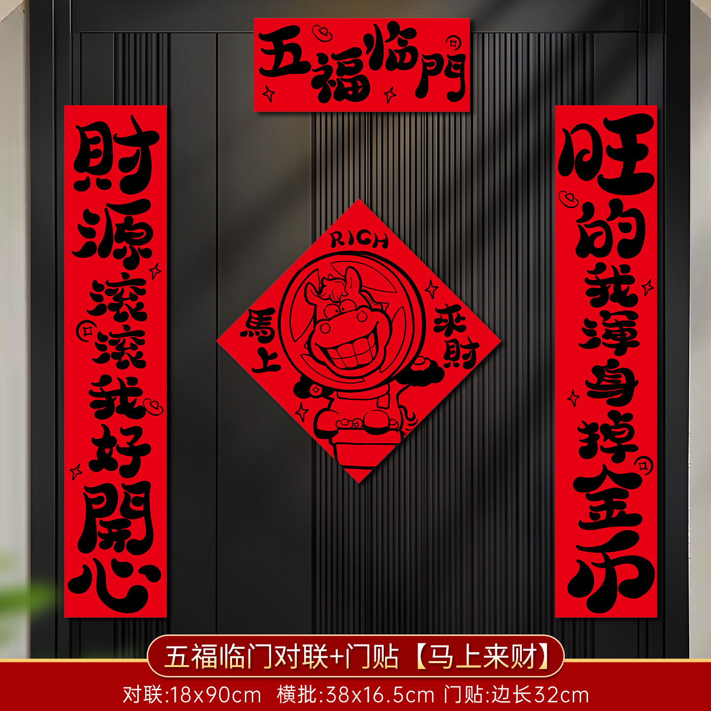 马年对联2026新款过年福字门贴春节布置新年装饰品铜版纸春联批货