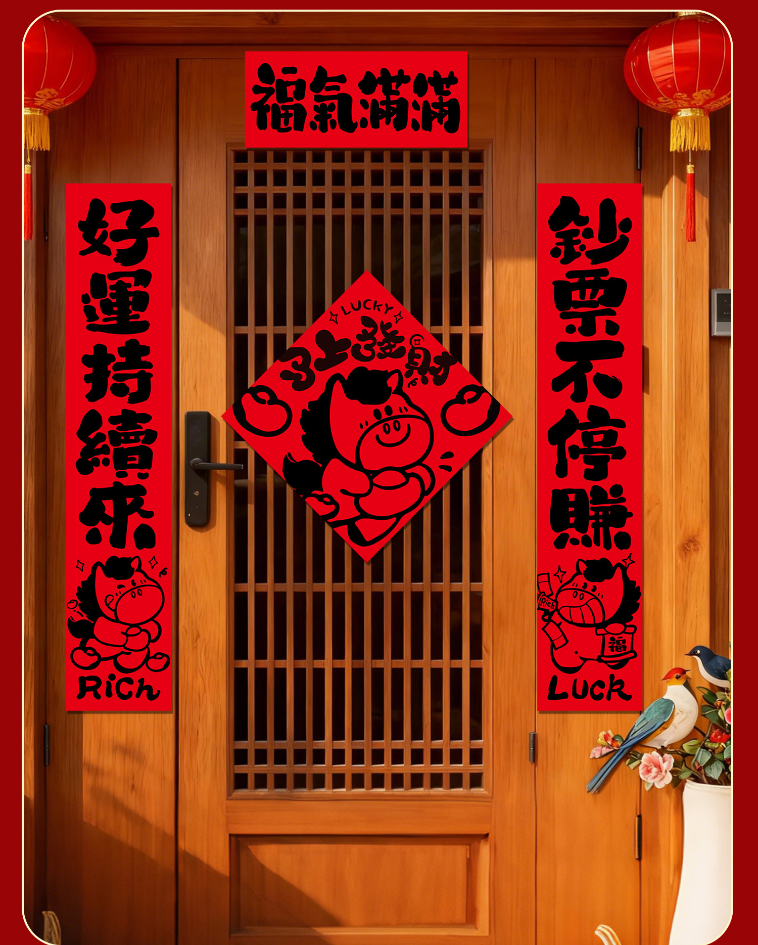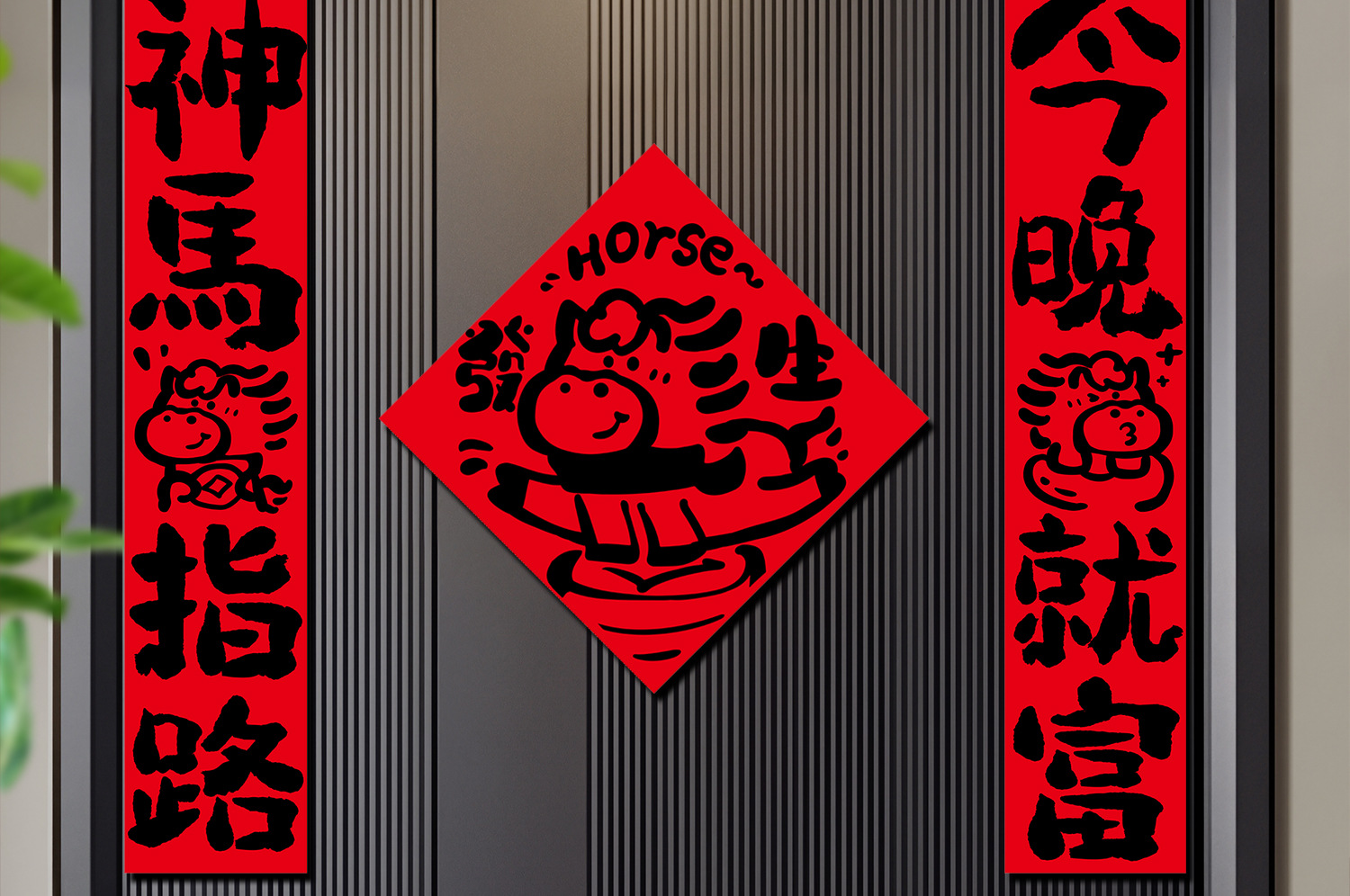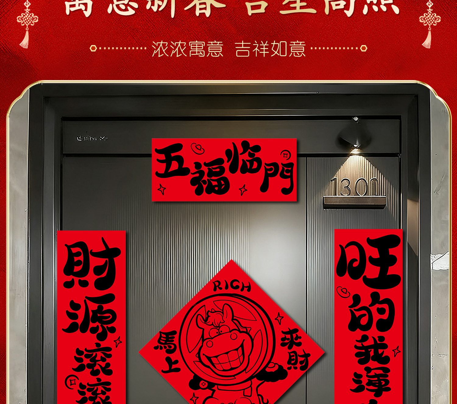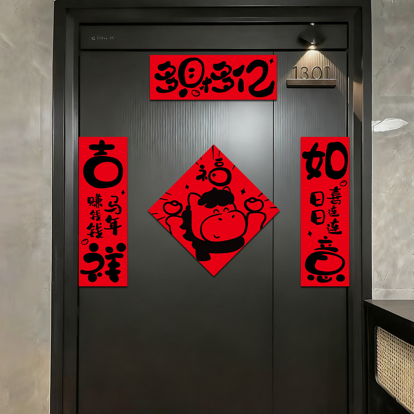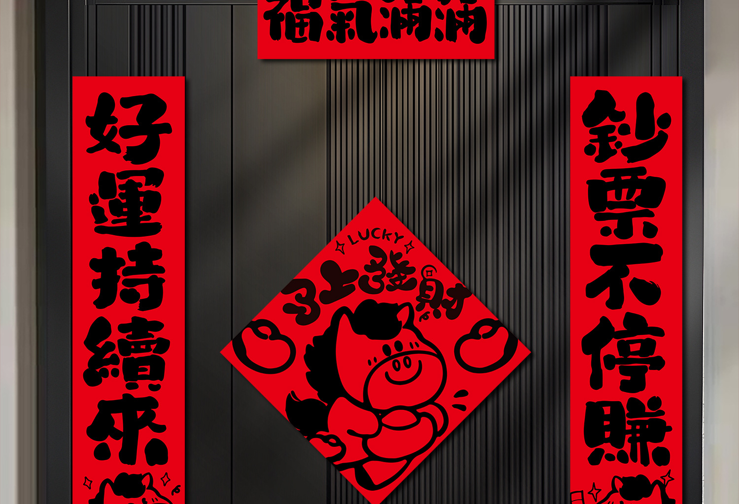 马年对联2026新款过年福字门贴春节布置新年装饰品铜版纸春联批货