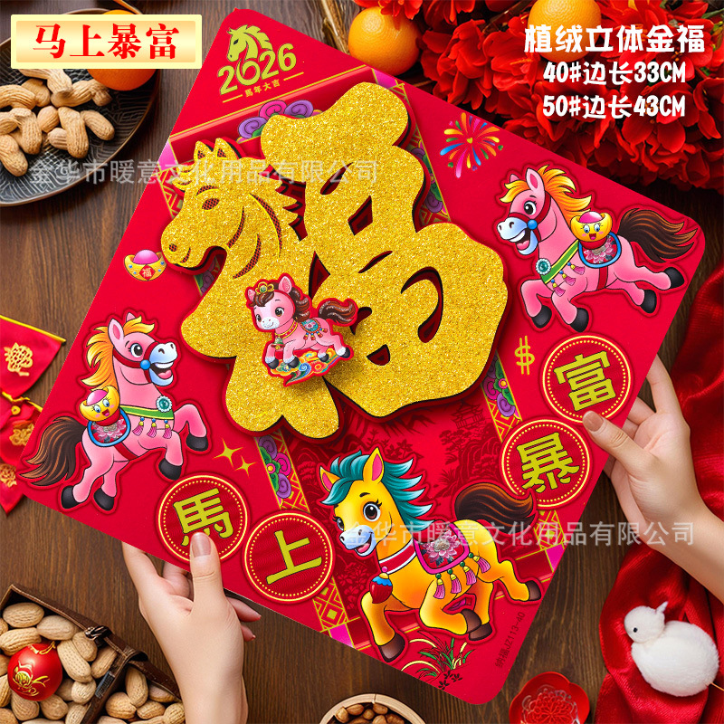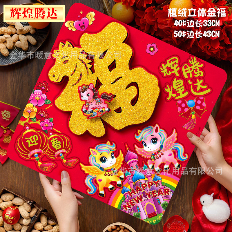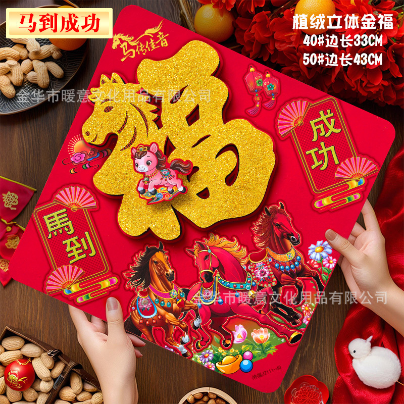 新款马年福字烫金植绒立体门贴新年装饰春节布置门贴批发生肖喜庆