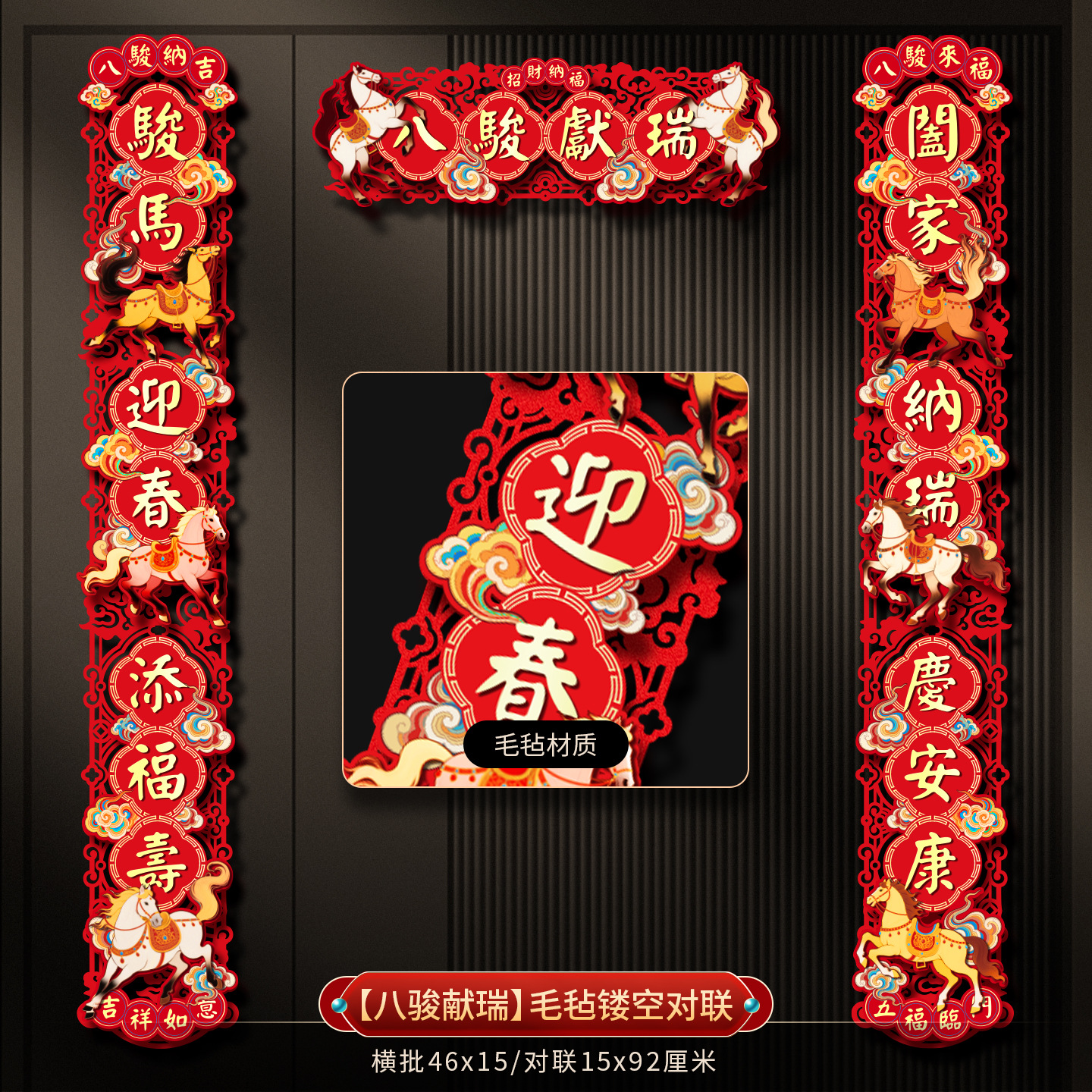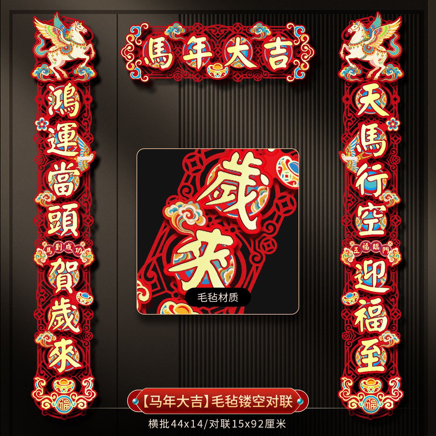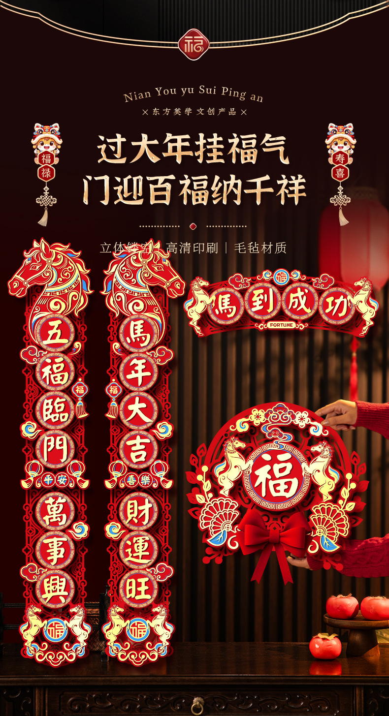 2026 new year new three-dimensional felt cloth couplet year of horse couplet new year couplet spring festival flannel magnetic suction couplet wholesale