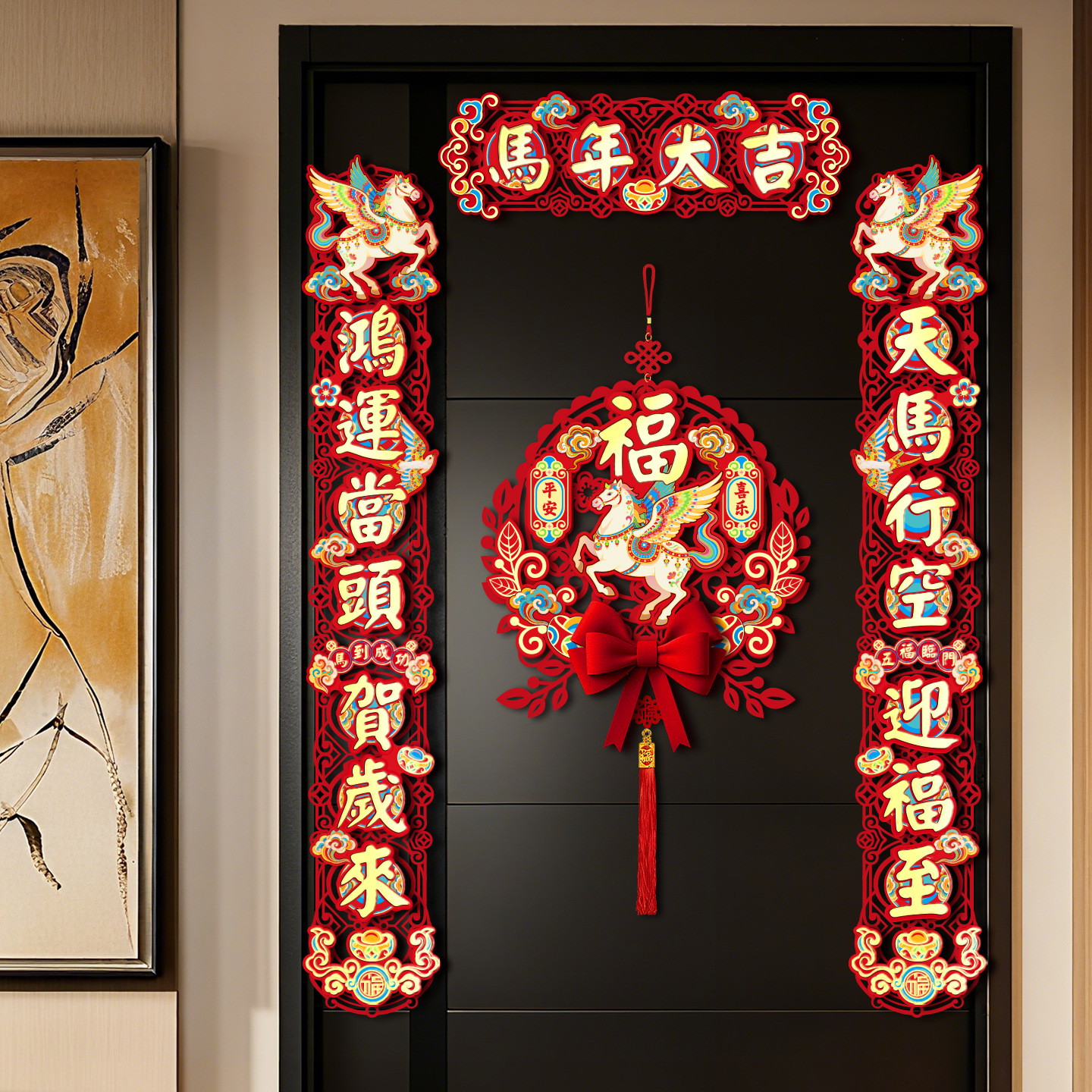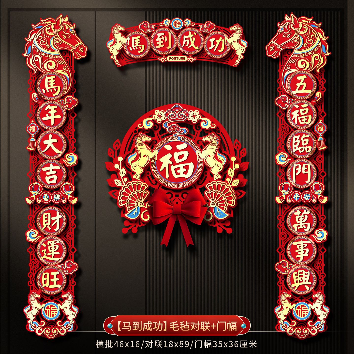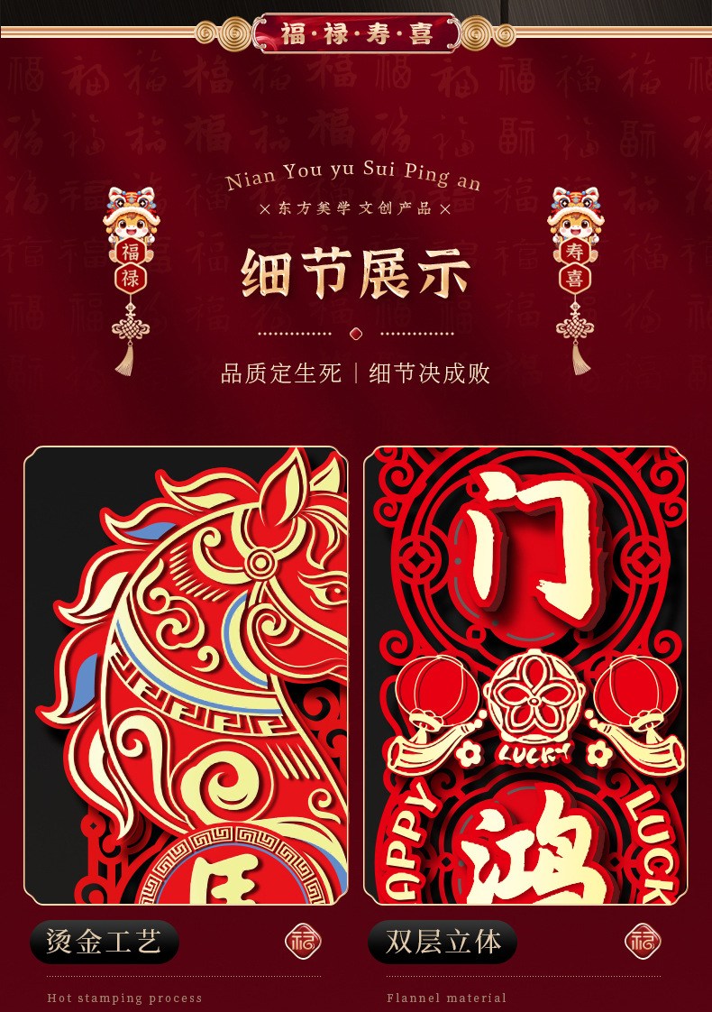 2026 new year new three-dimensional felt cloth couplet year of horse couplet new year couplet spring festival flannel magnetic suction couplet wholesale