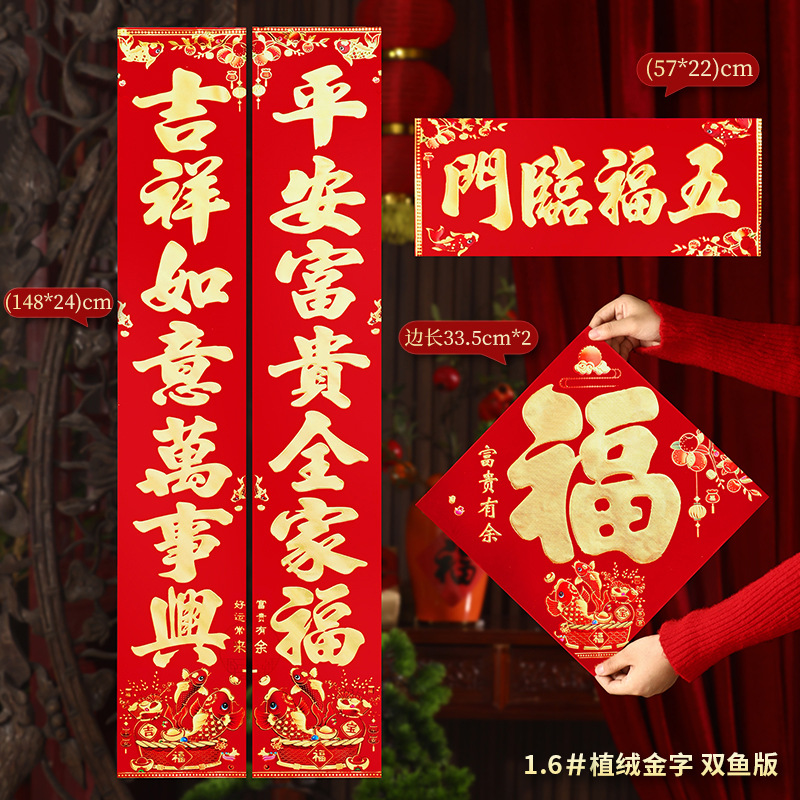 对联2026马年新款春联家用入户门贴春节过年创意装饰品植绒布批货