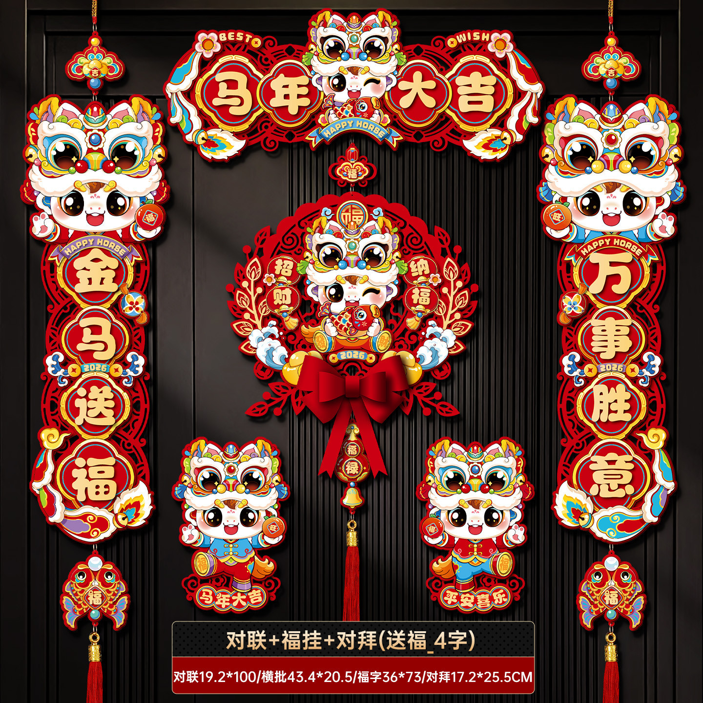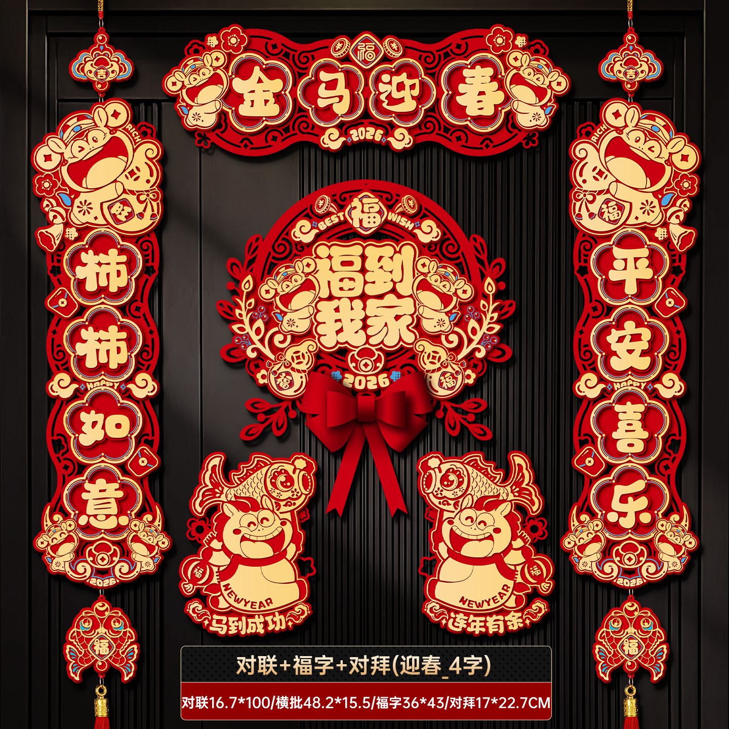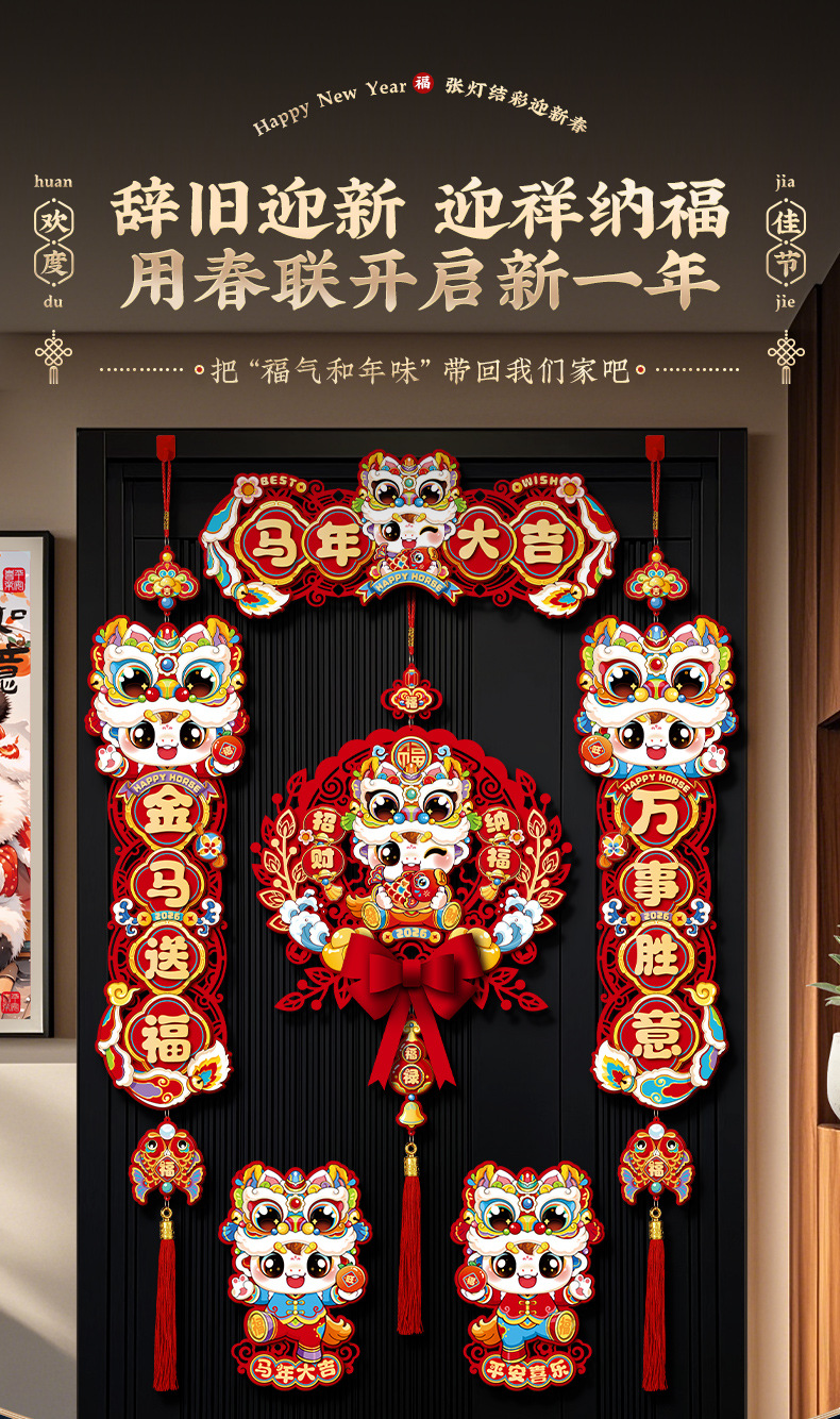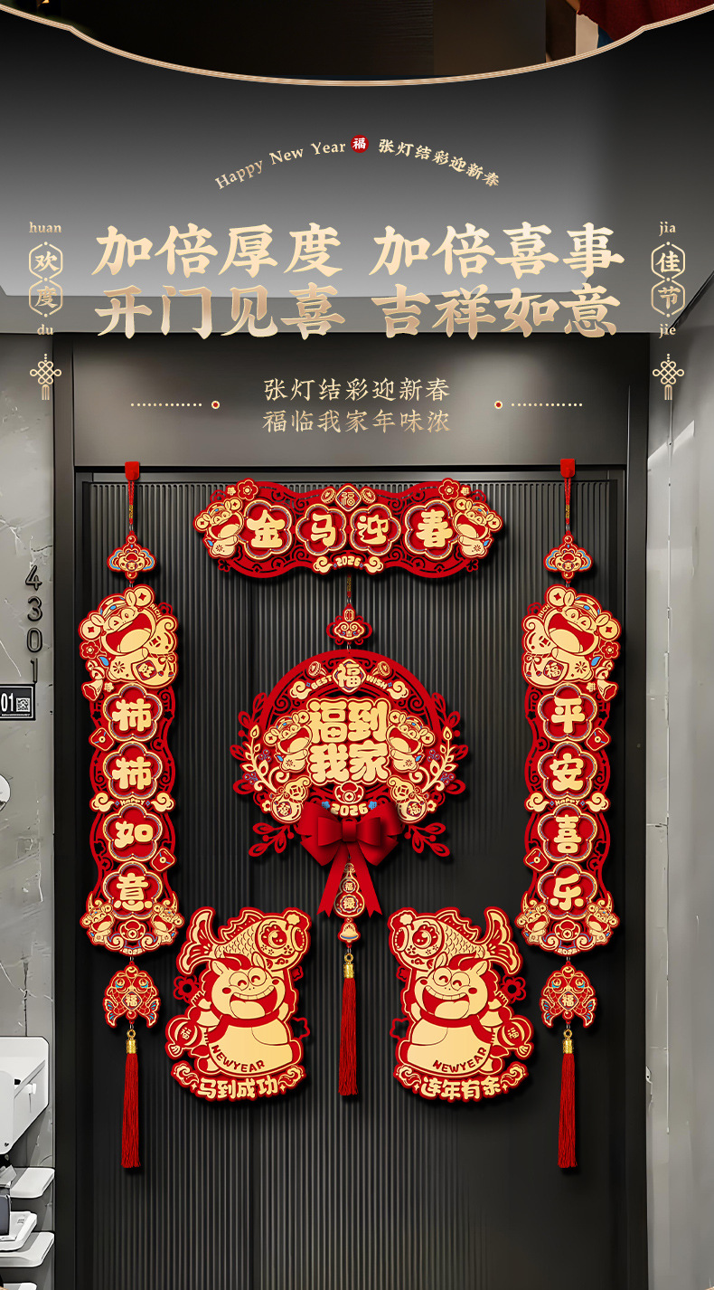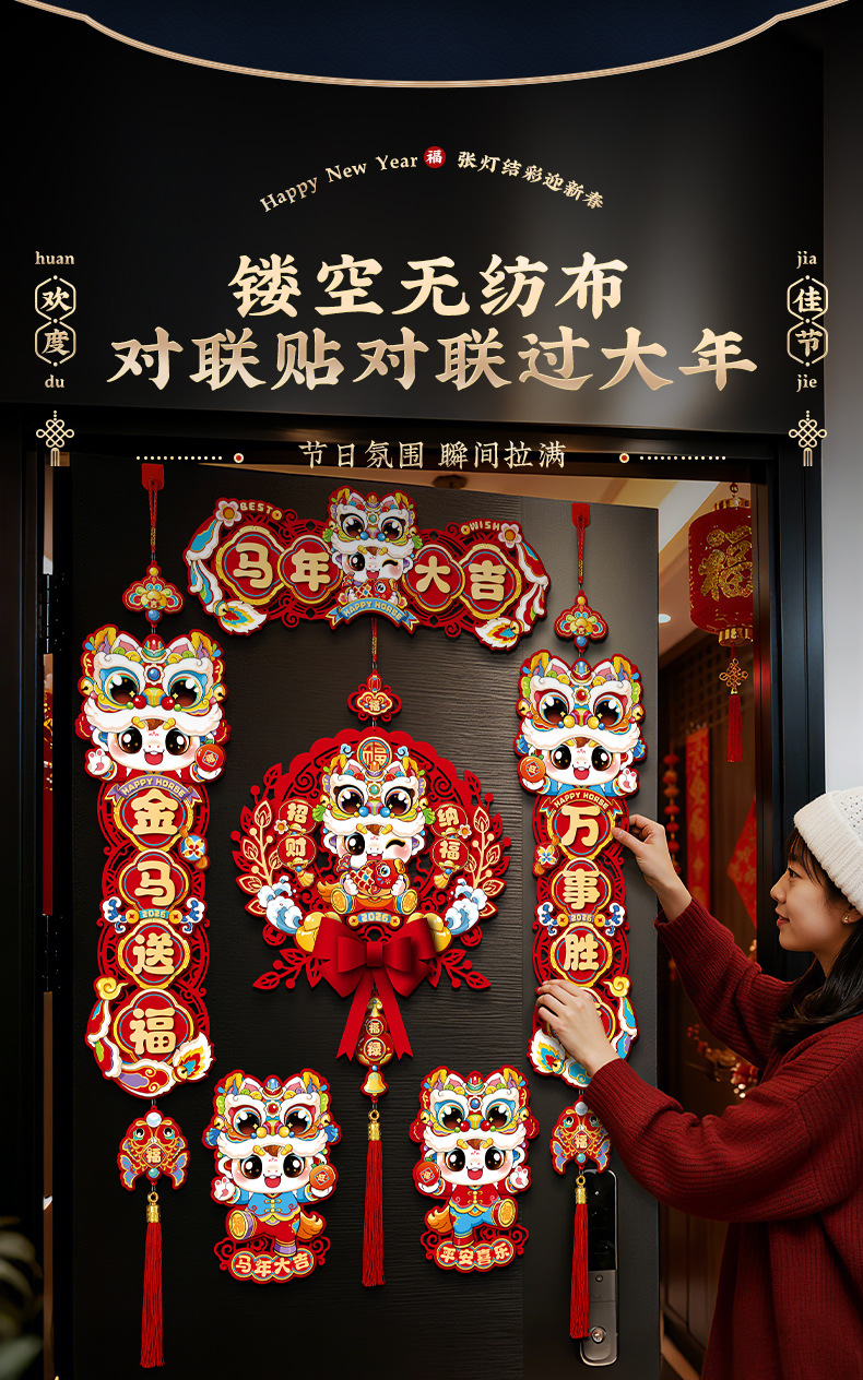 horse year couplet new year couplet batch new arrival chinese new year creative three-dimensional fu character entry door stickers new year decoration