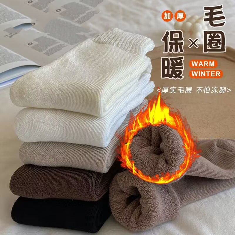 女士保暖袜子超厚冬季新款羊毛袜子女中筒毛圈加厚毛巾袜秋冬加绒