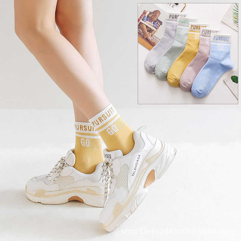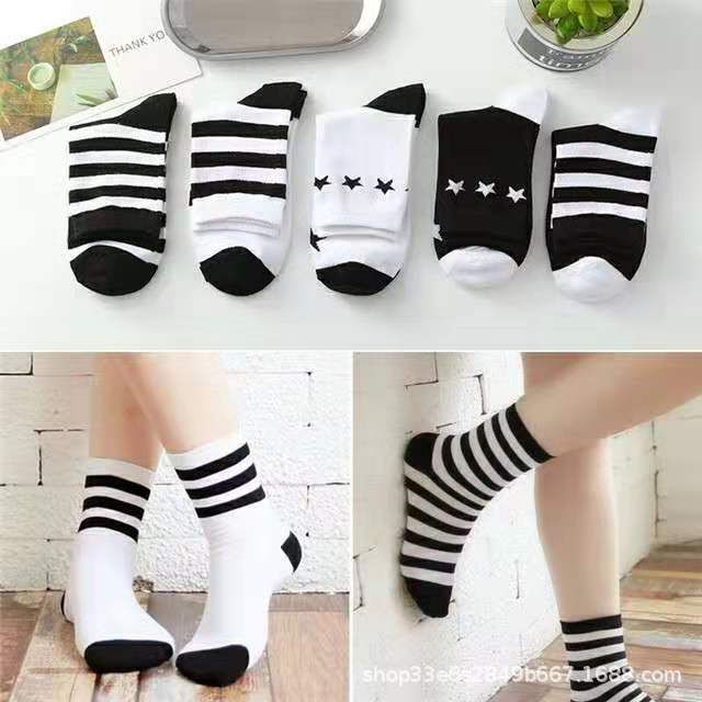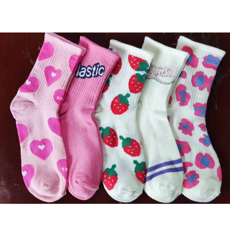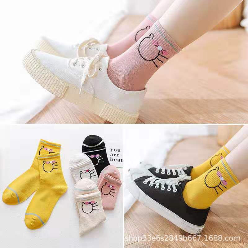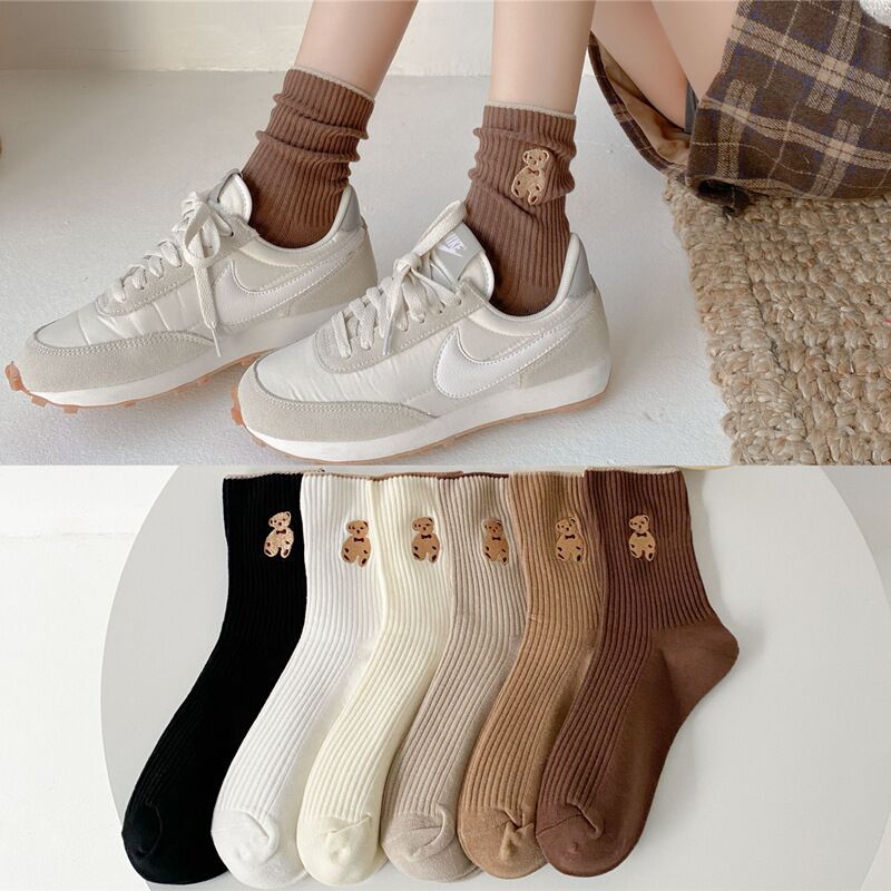 秋冬袜子女ins潮袜海军风咖啡小熊提花中筒袜韩系JK袜批发运动袜